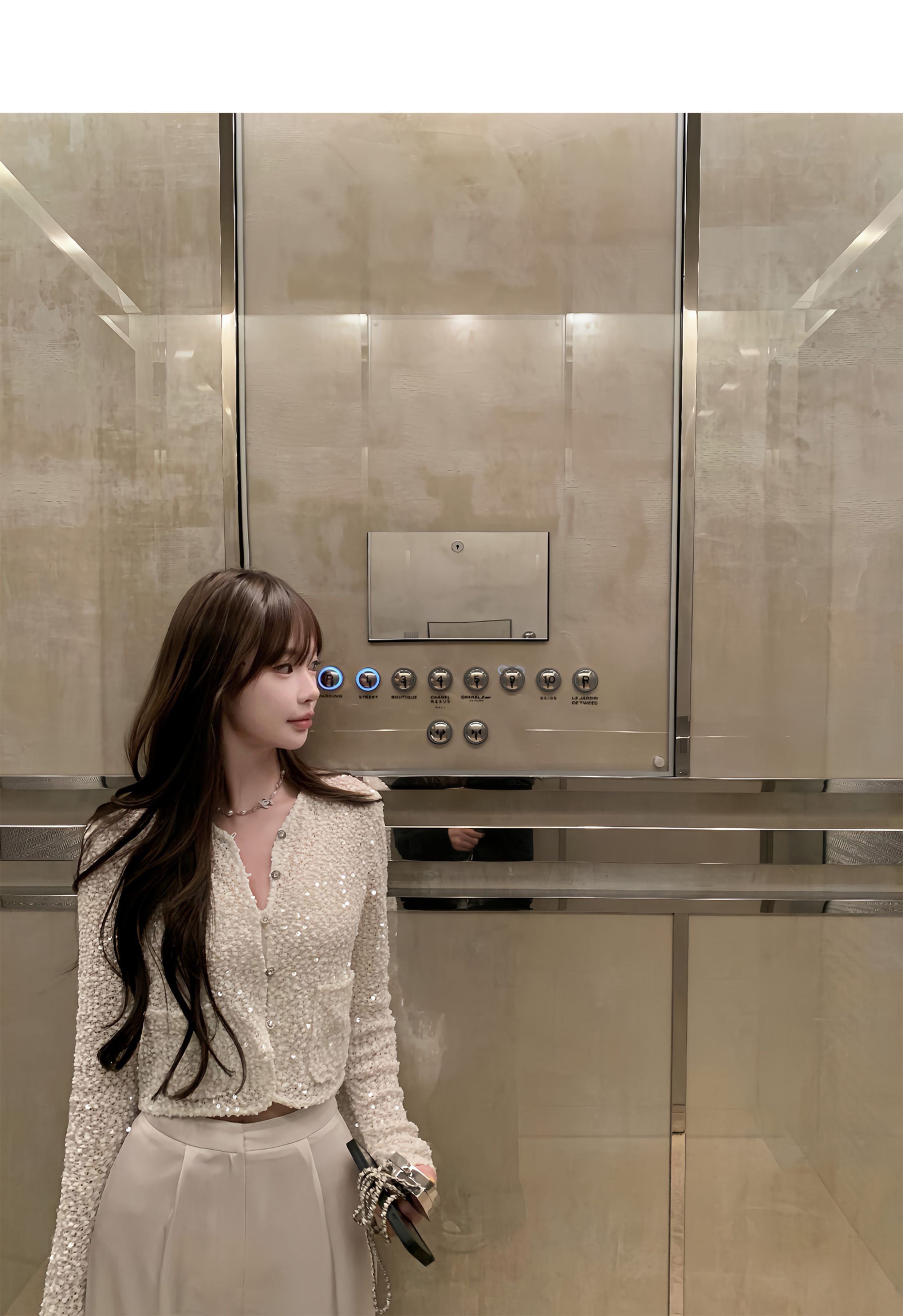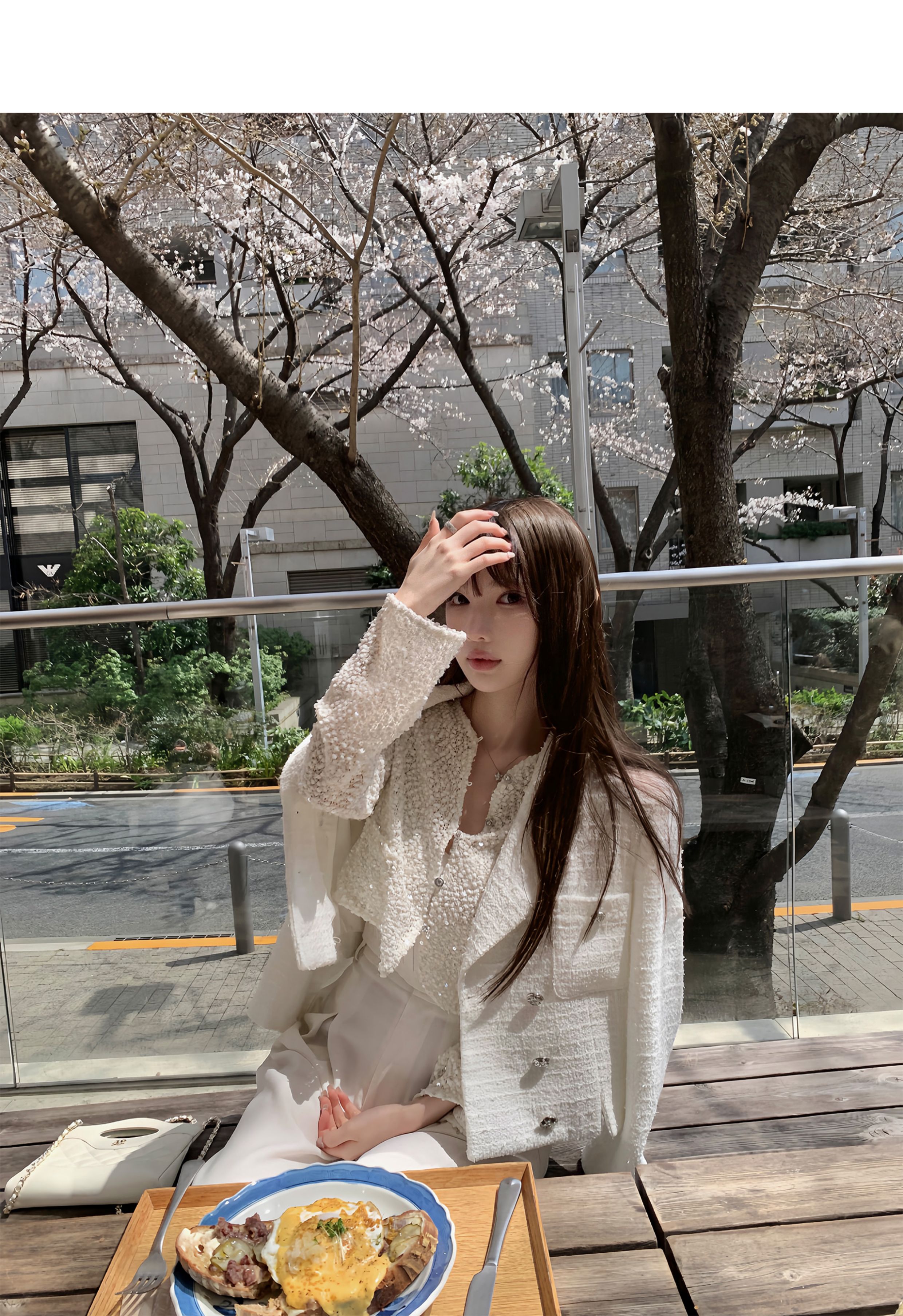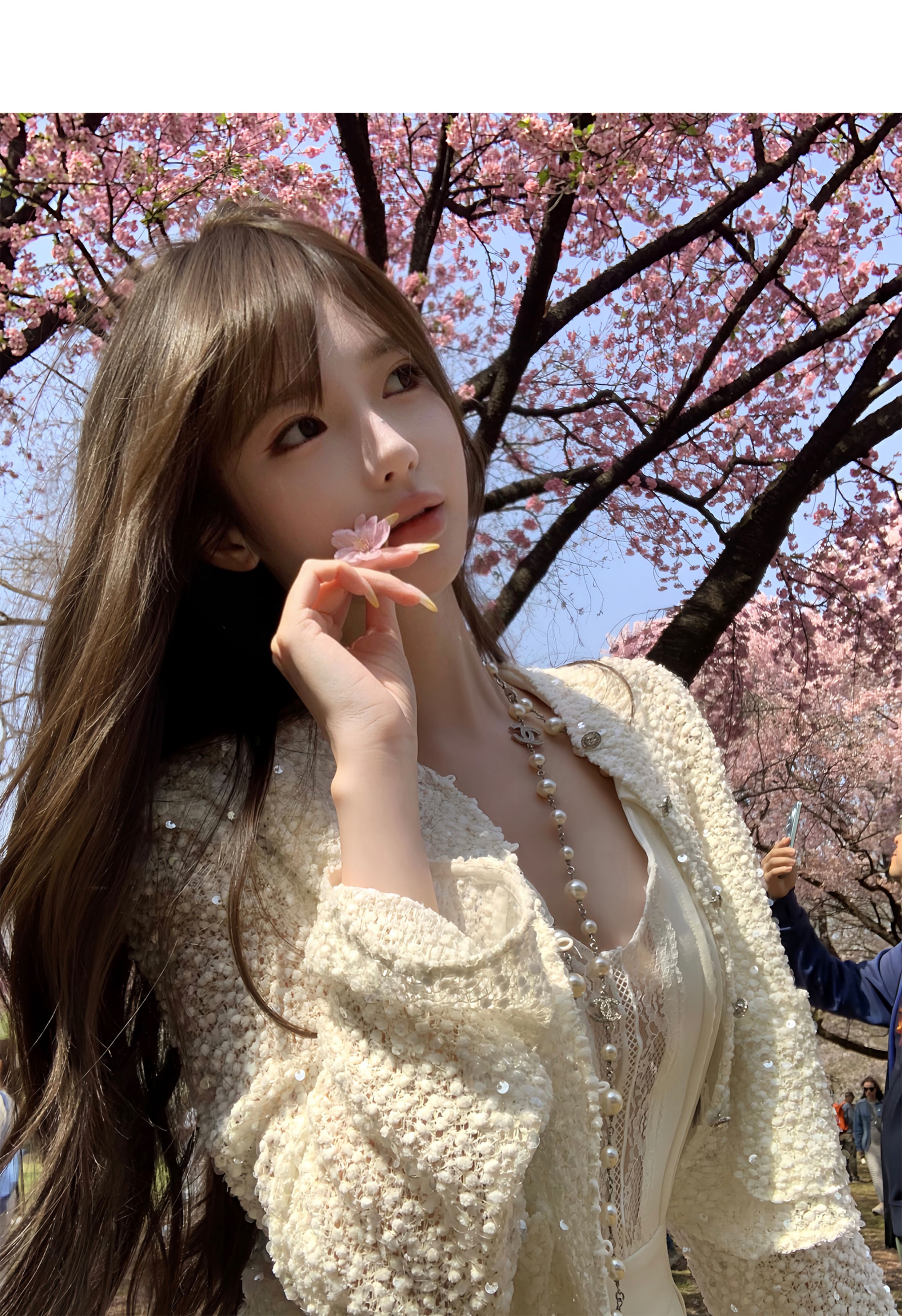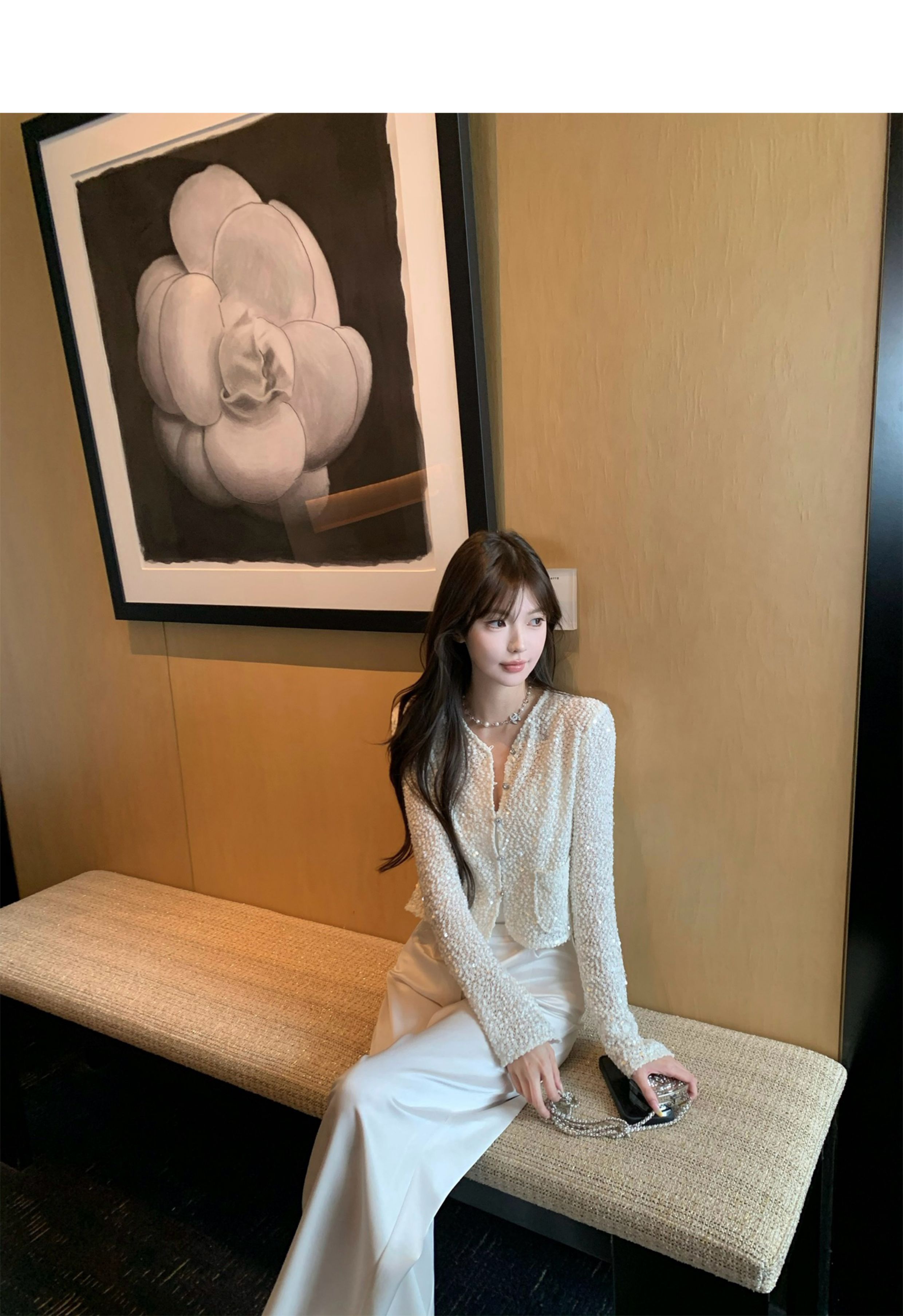 [in Stock] Chicyou White Transparent Sequin Chanel-Style Top, Lightweight, Breathable, Slimming, Short Cardigan