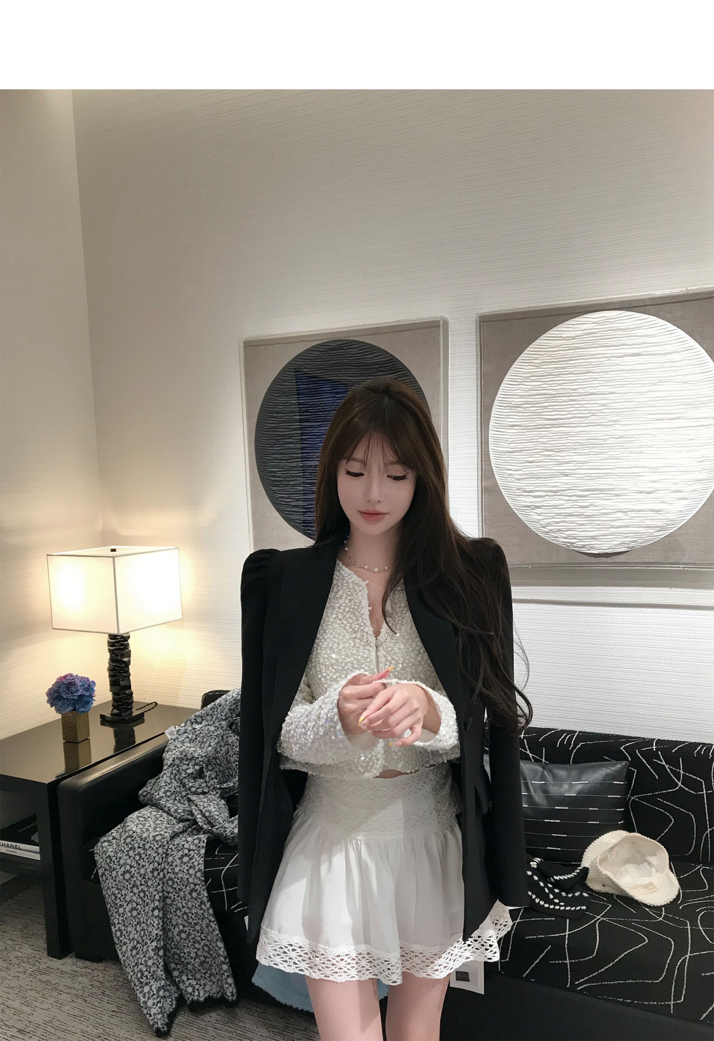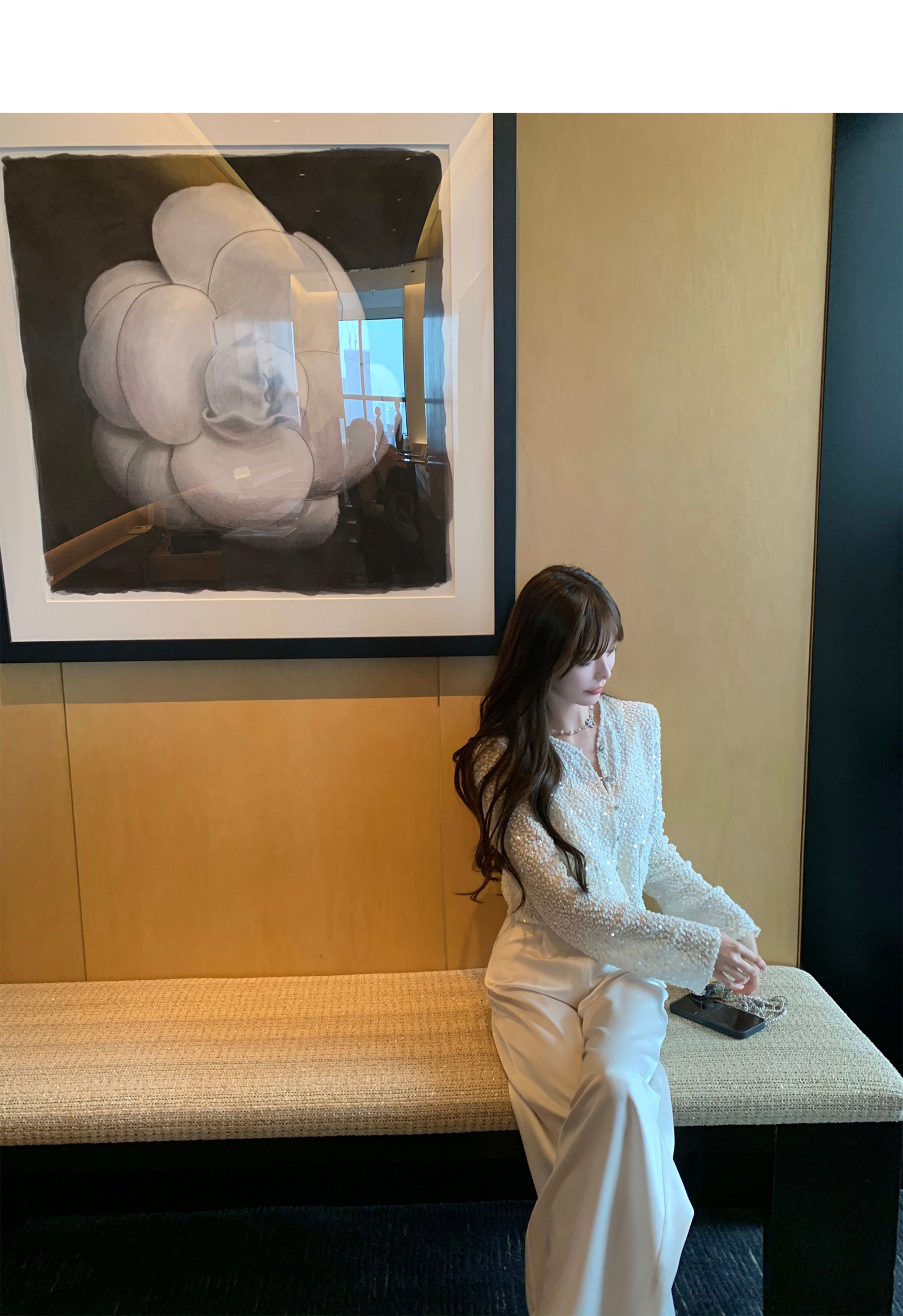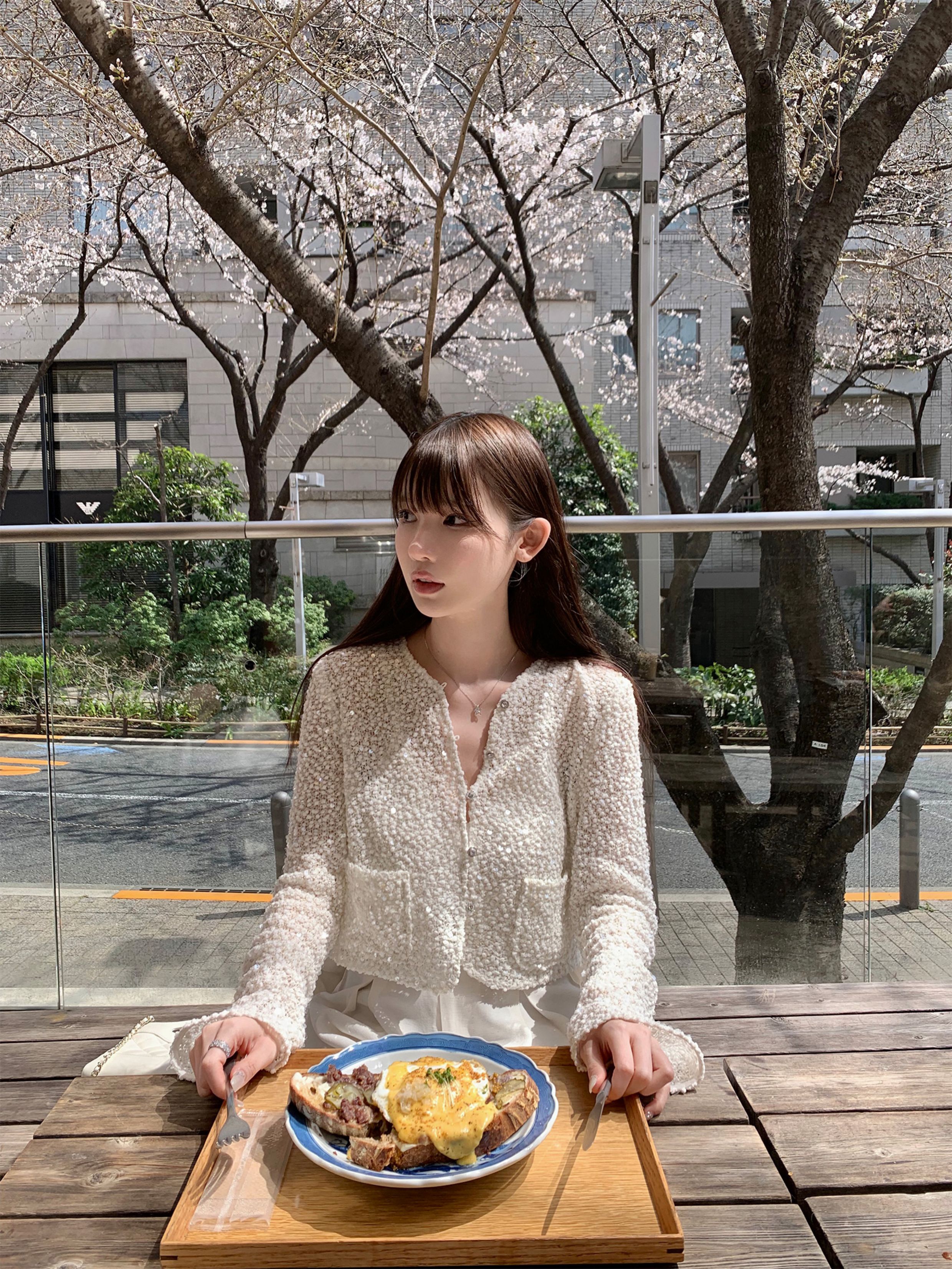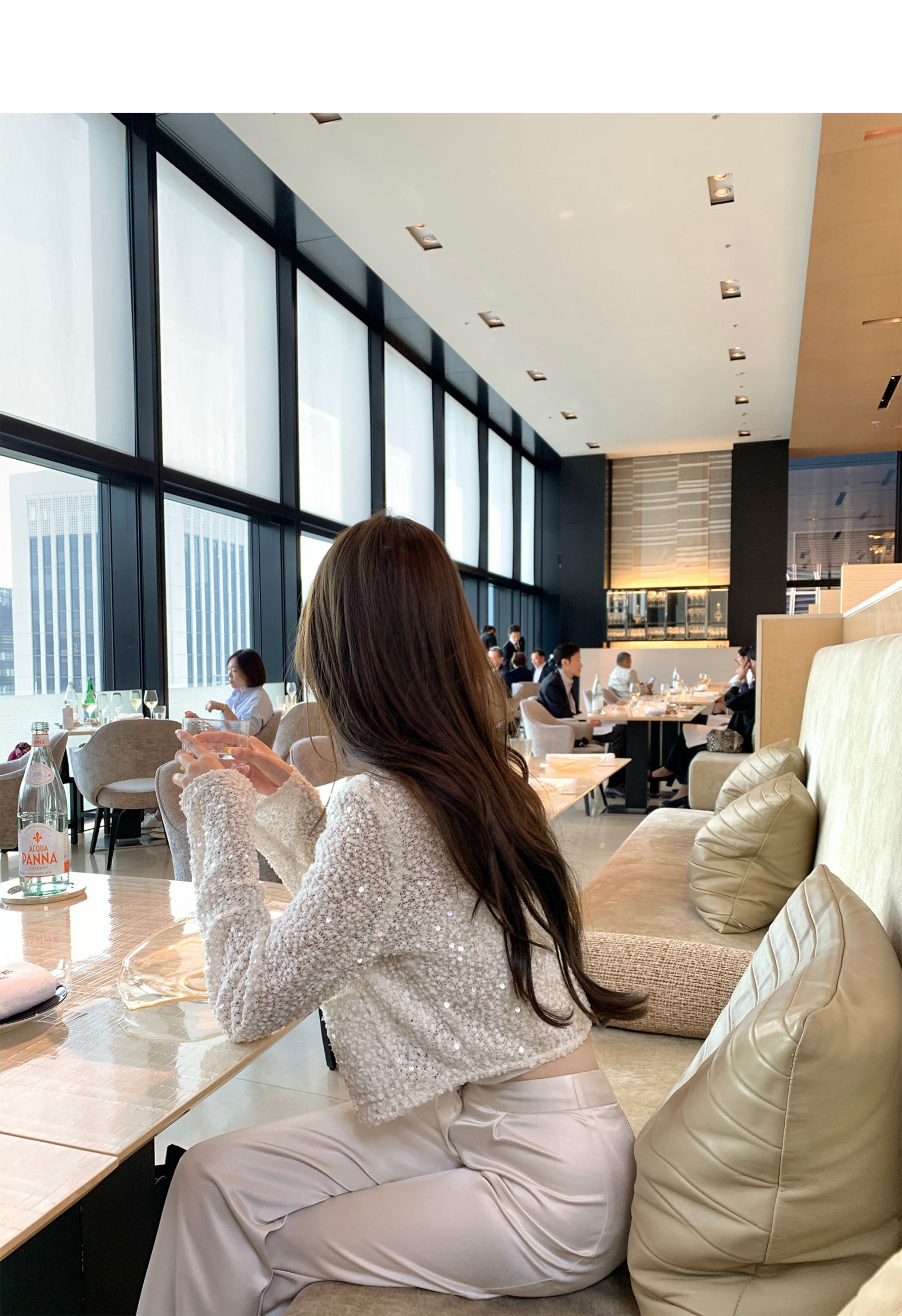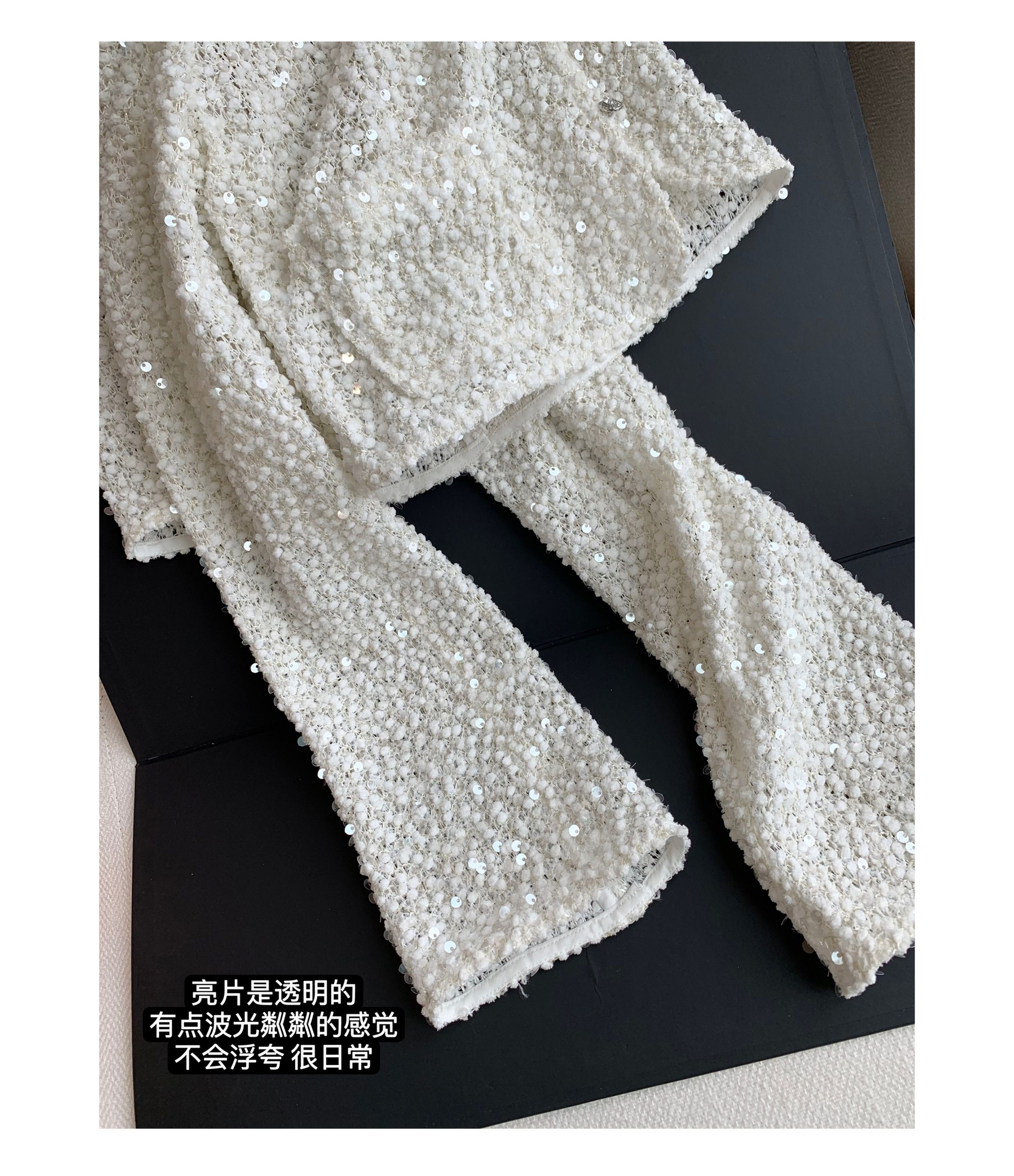 [in Stock] Chicyou White Transparent Sequin Chanel-Style Top, Lightweight, Breathable, Slimming, Short Cardigan