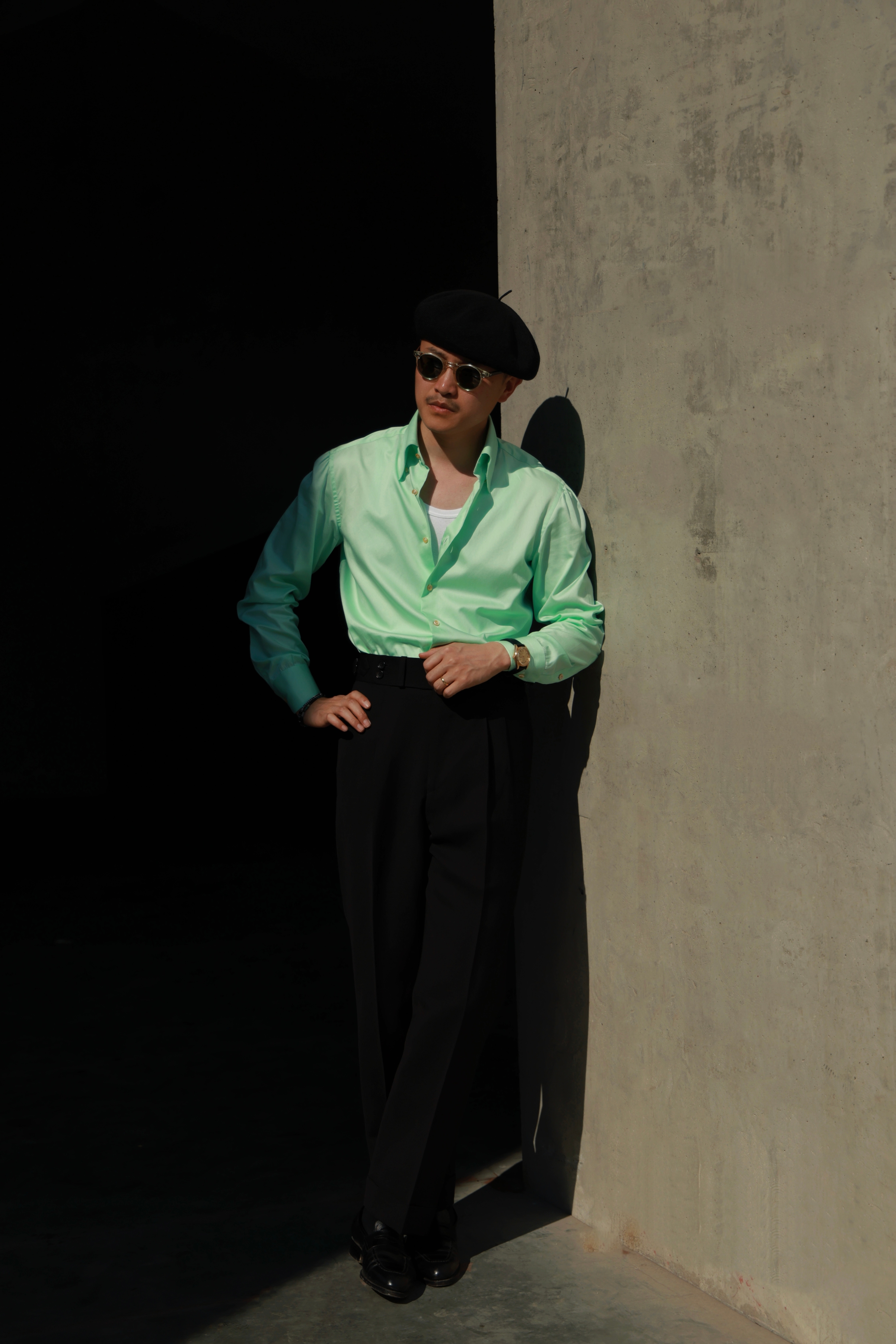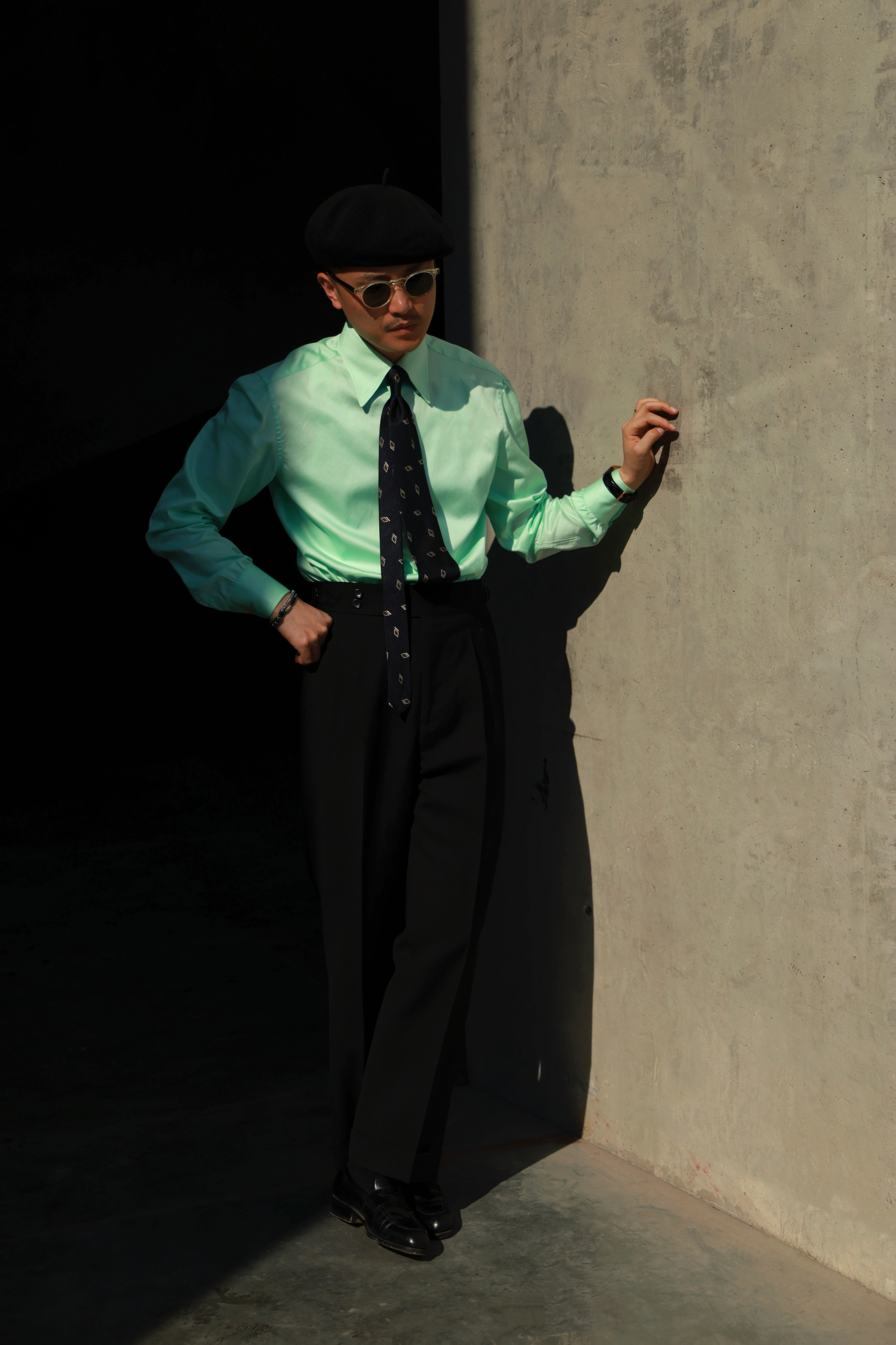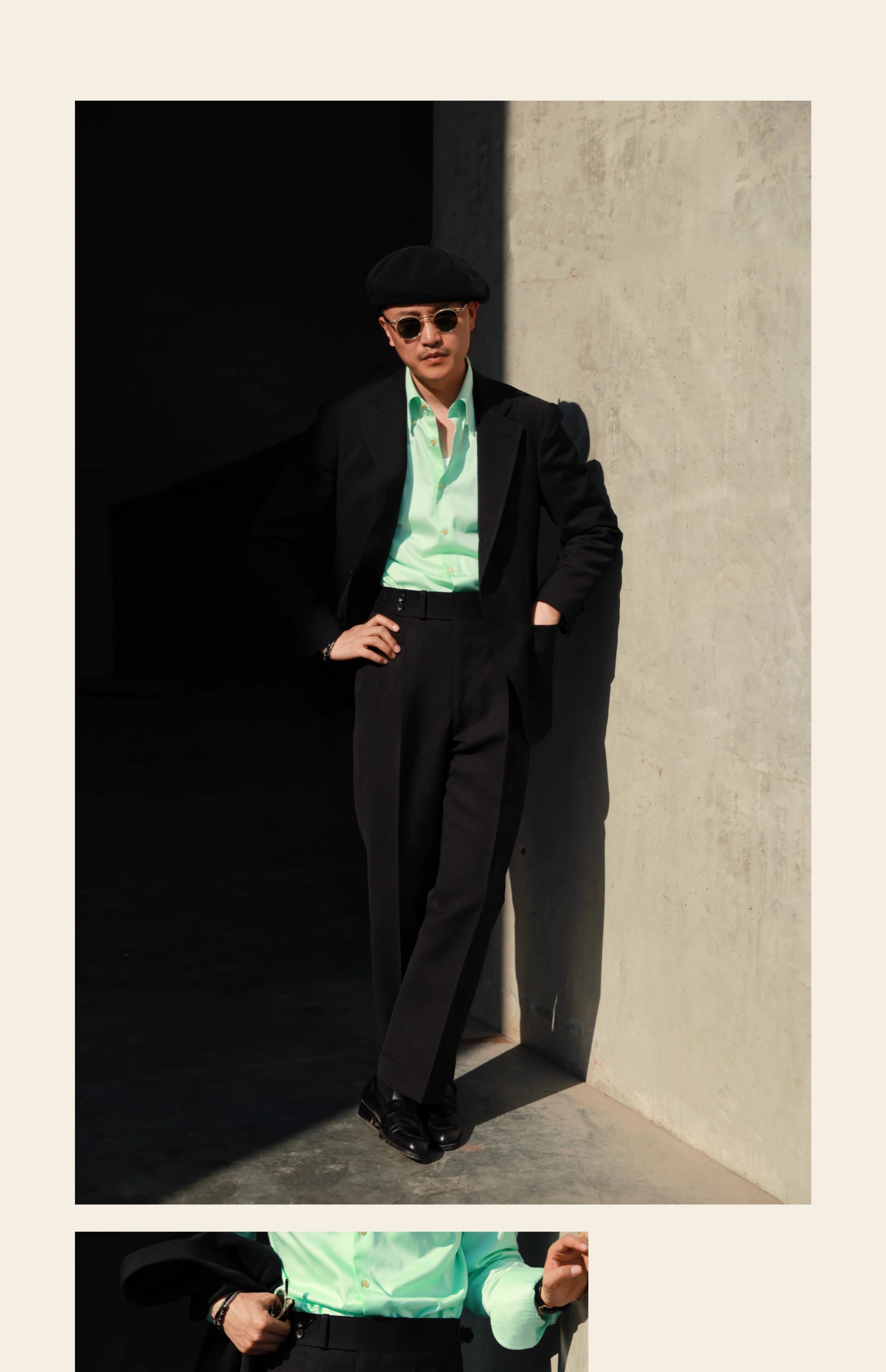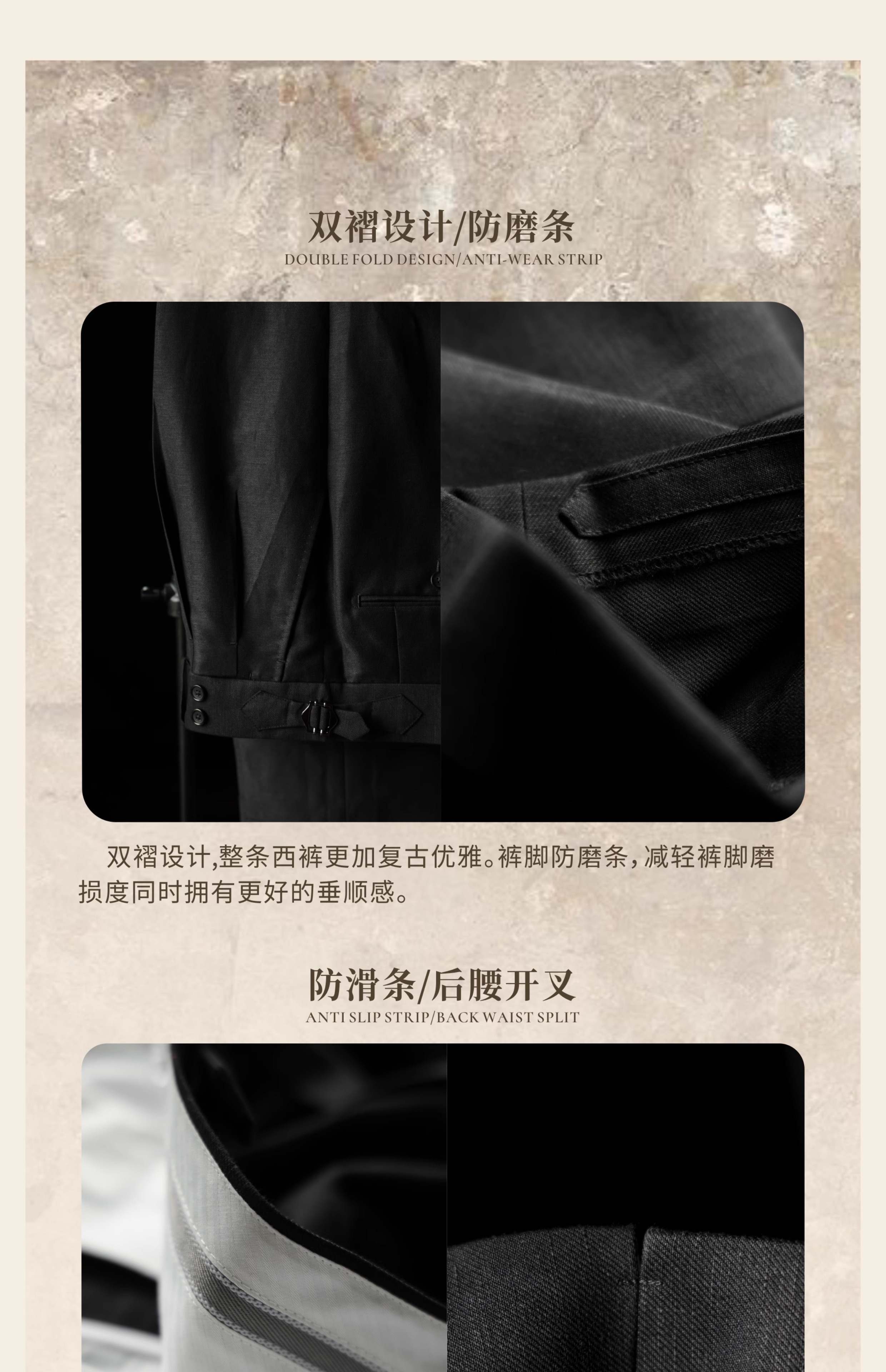 Ugentle Heavy Wool and Linen Blend'Dark Knight' Italian Paris Button High-Waisted Double-Pleated Gentleman's Trousers