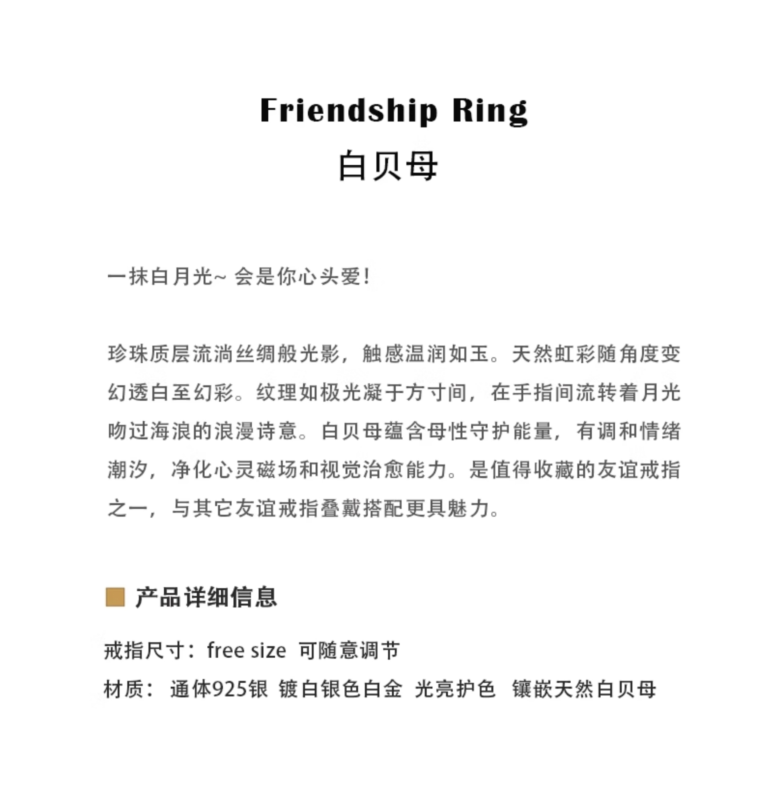 Natalia 925 Silver Friendship Ring: White Mother-Of-Pearl