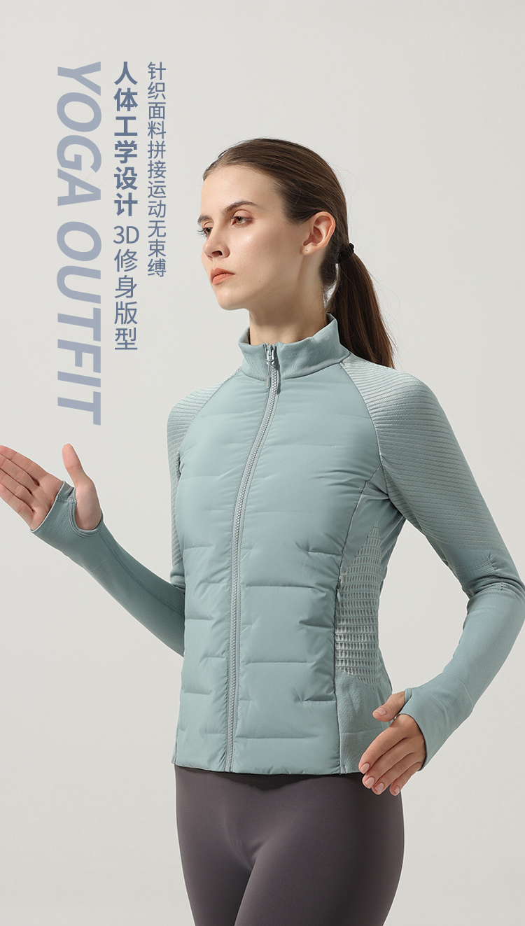 Wkuw Autumn and Winter 90 White Goose down Stand Collar Sports down Jacket for Women, Warm, Slim, Lightweight, Running and Fitness Clothing