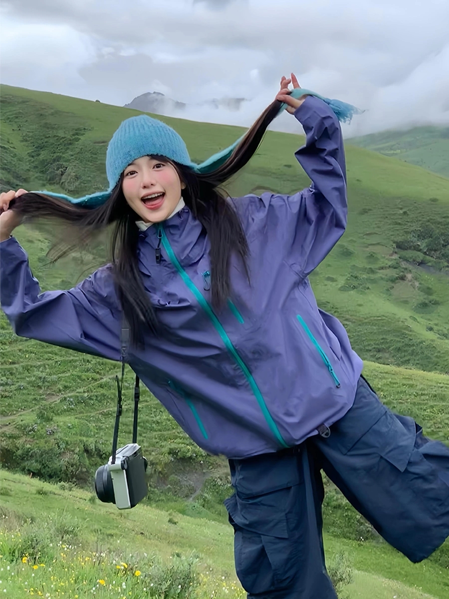 2025 New Spring and Autumn Purple Outdoor Jacket for Women, Petite Size, Super Stylish, Windproof Mountaineering Sportswear