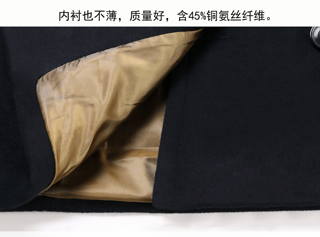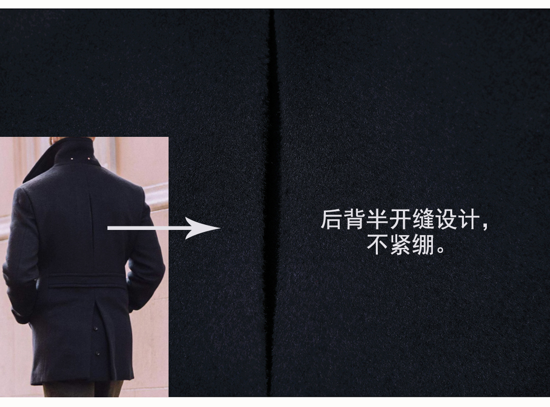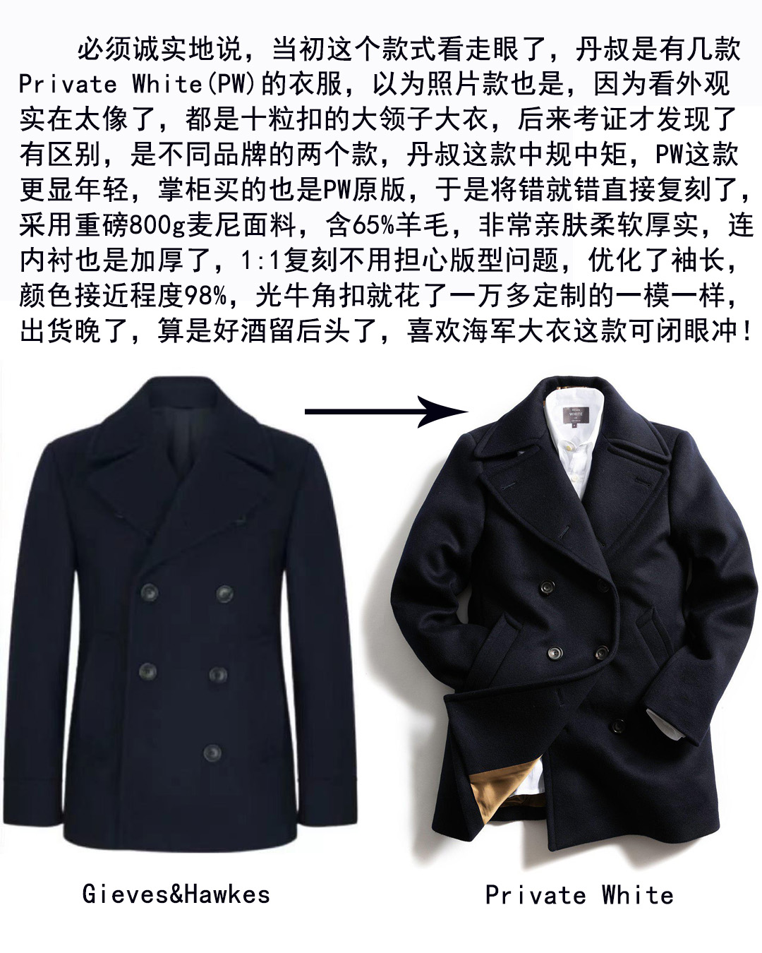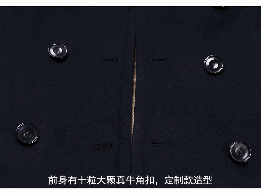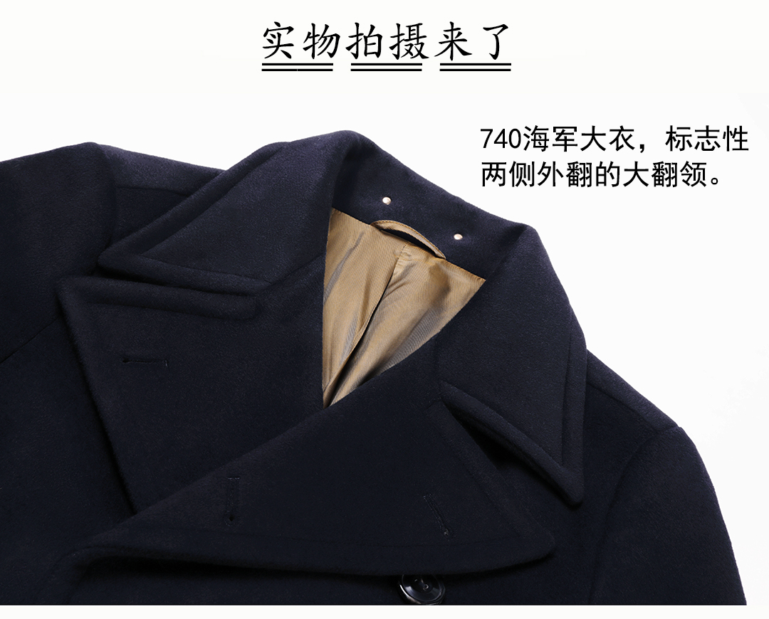 Navy Coat Men's Pea Coat Mai Ni 800g Thick Double-Breasted Mid-Length Skin-Friendly Wool Shoulder Pad Jacket