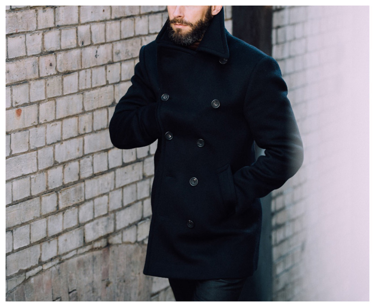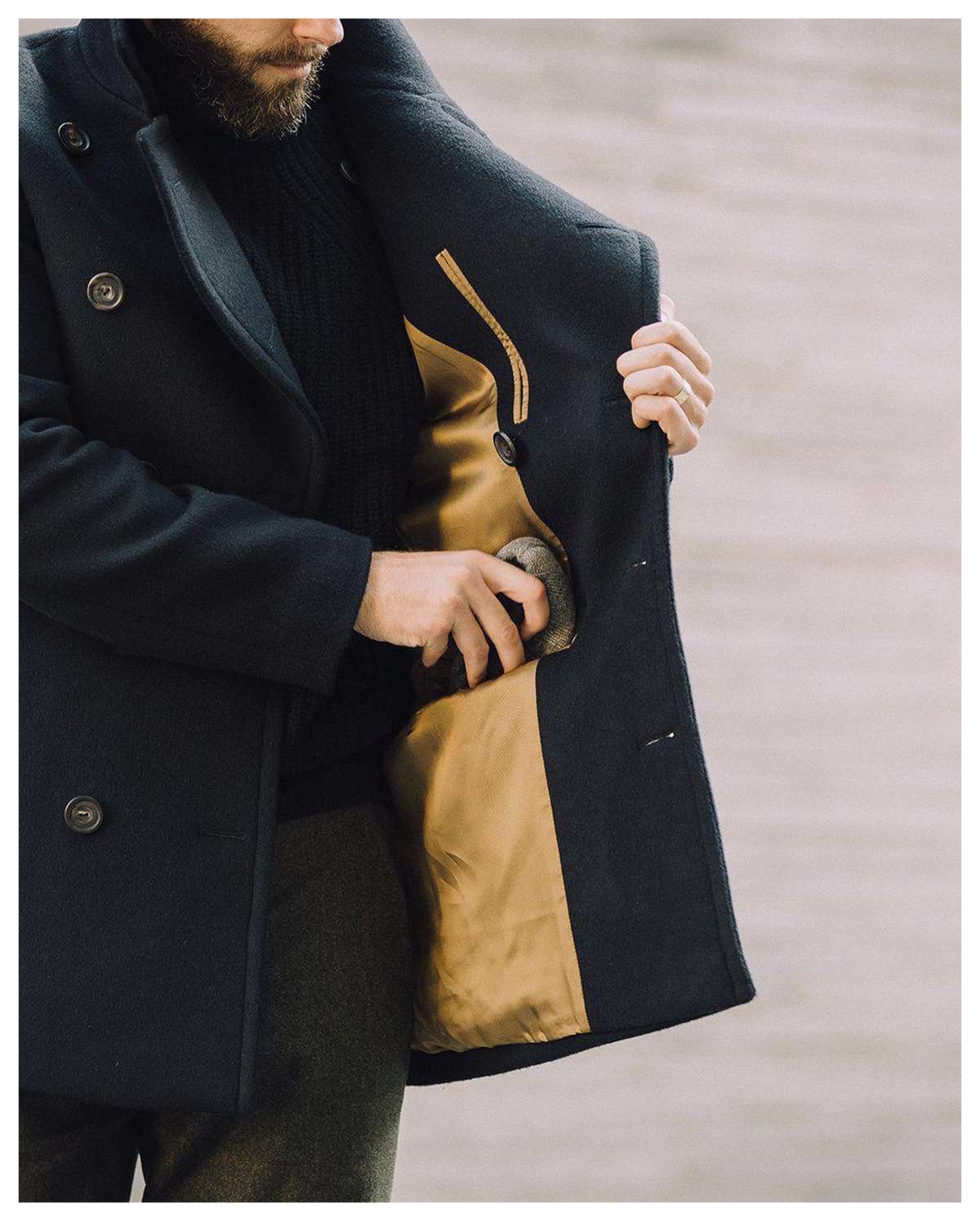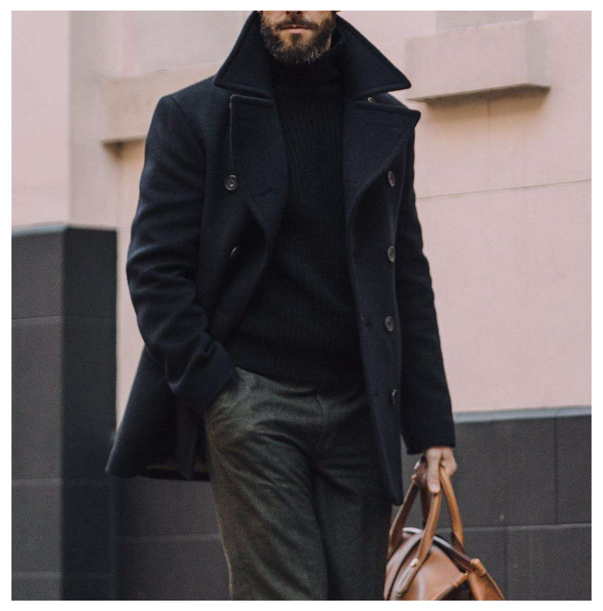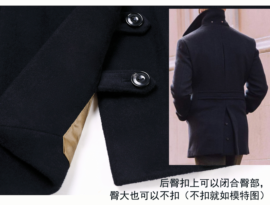 Navy Coat Men's Pea Coat Mai Ni 800g Thick Double-Breasted Mid-Length Skin-Friendly Wool Shoulder Pad Jacket