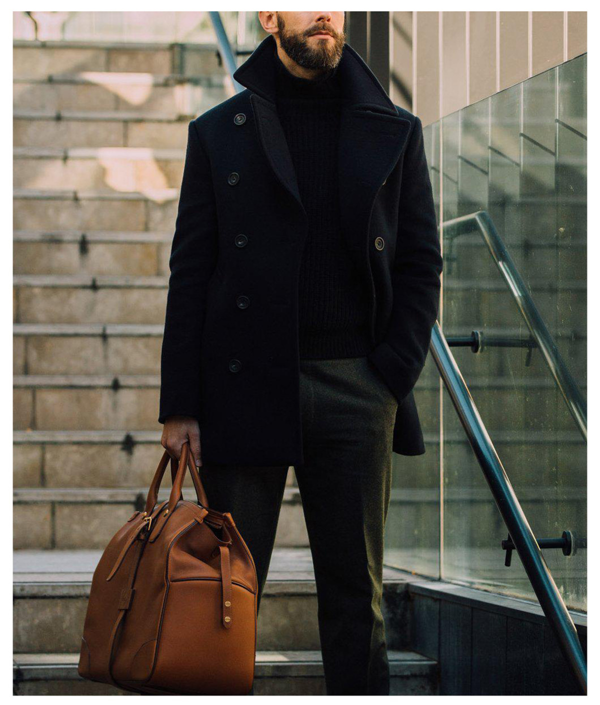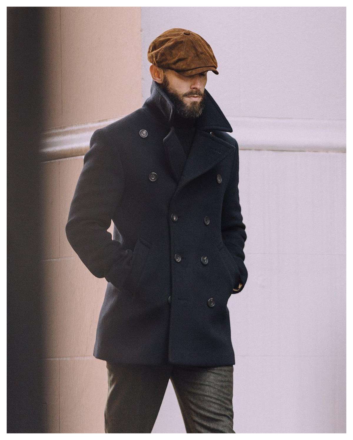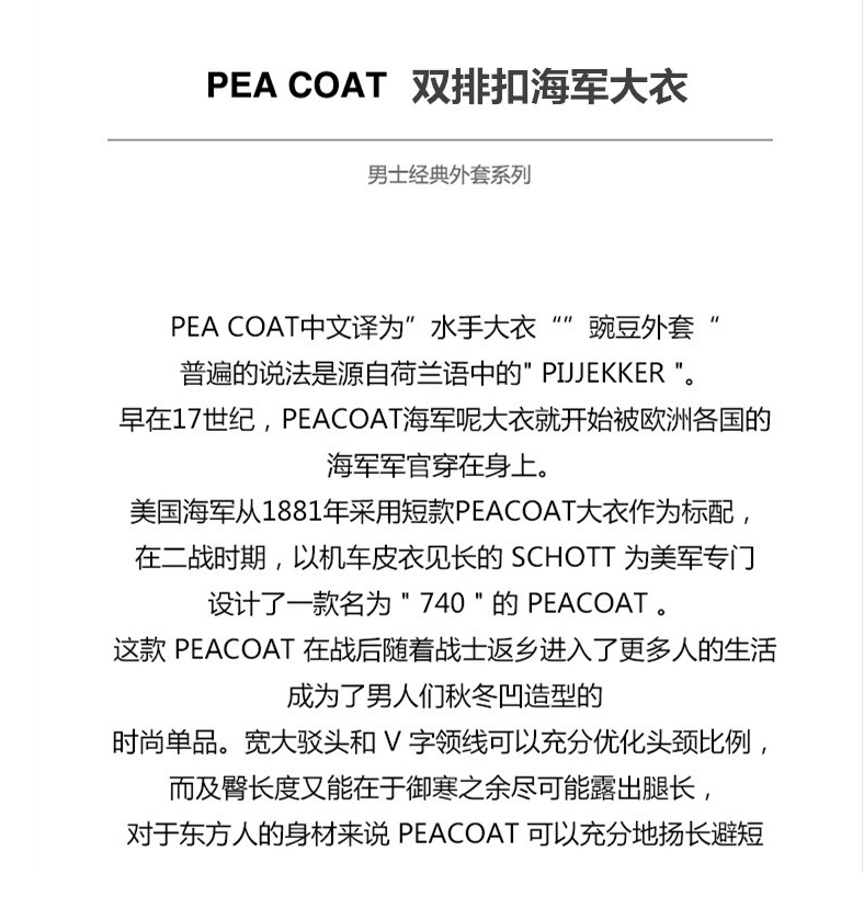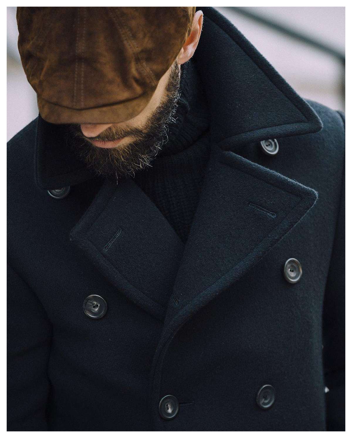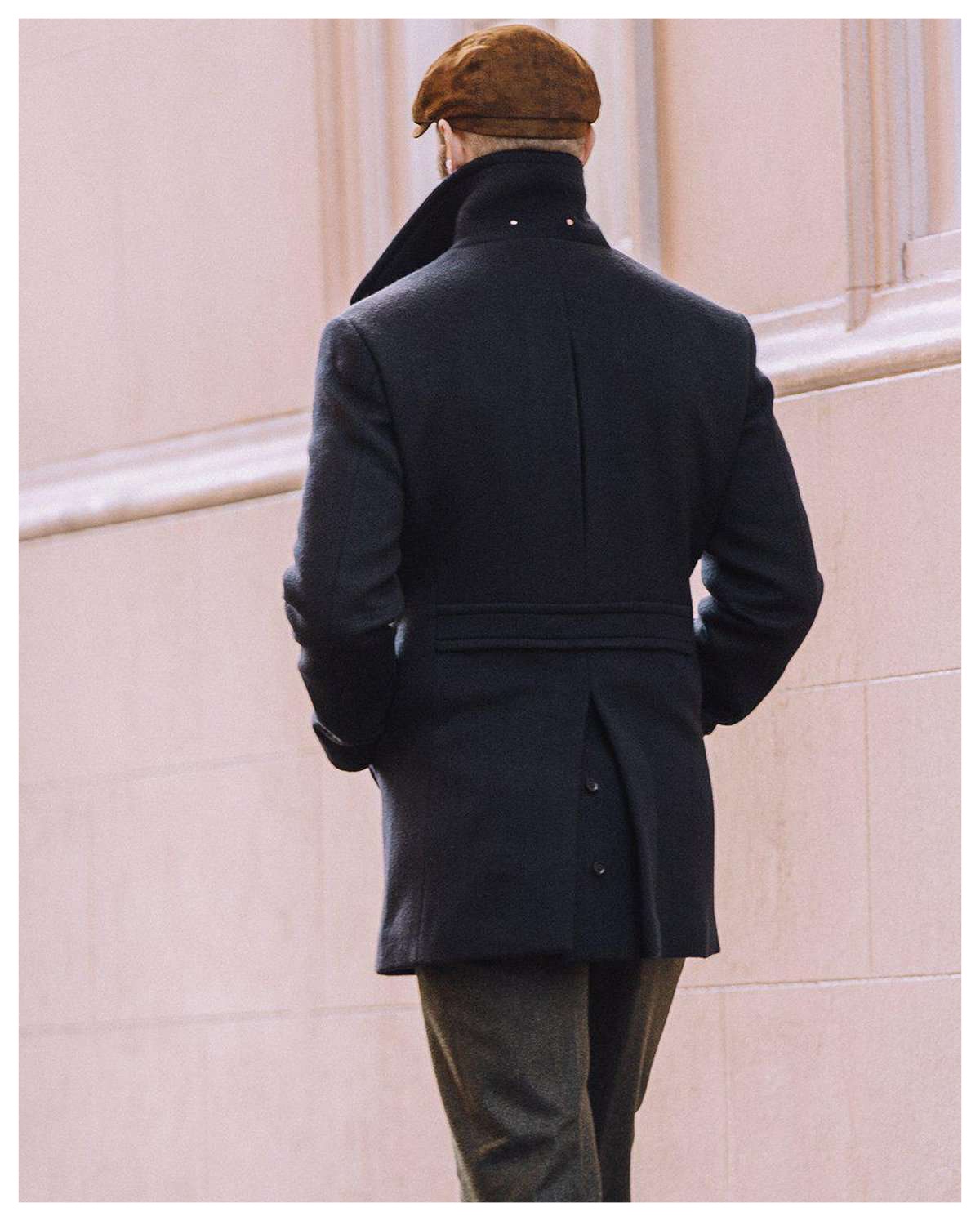 Navy Coat Men's Pea Coat Mai Ni 800g Thick Double-Breasted Mid-Length Skin-Friendly Wool Shoulder Pad Jacket