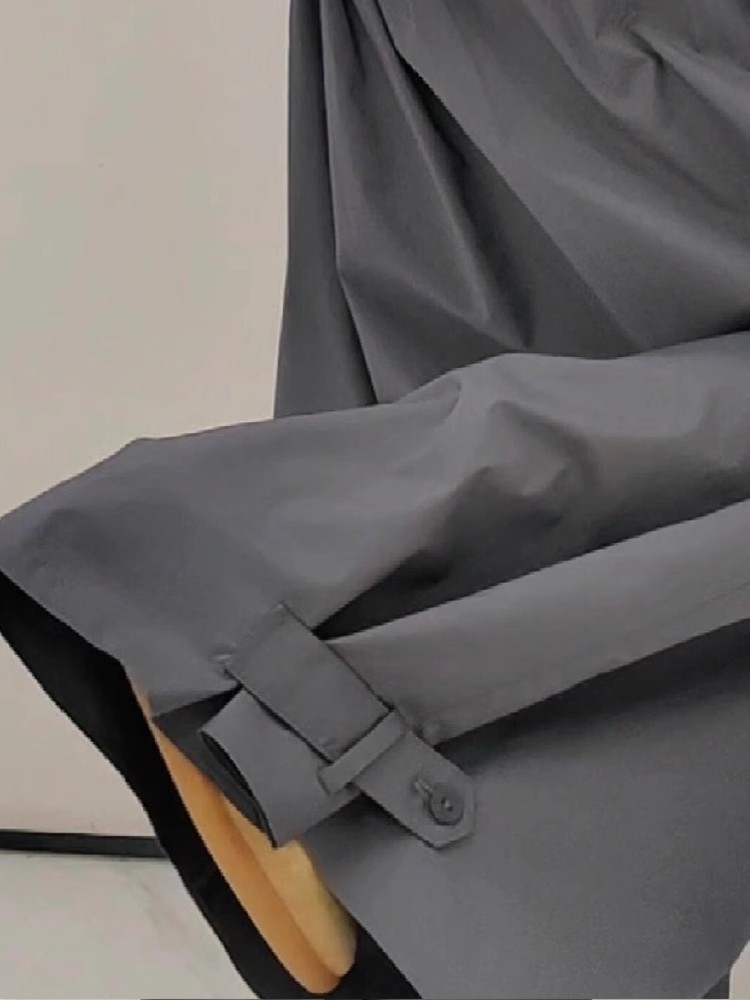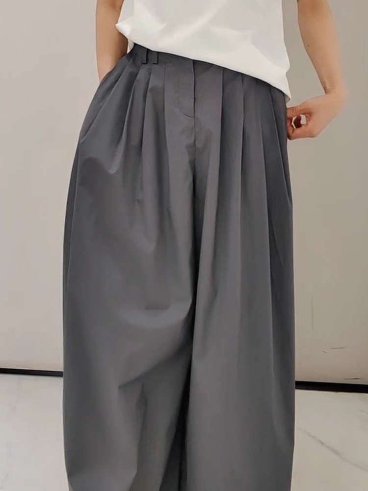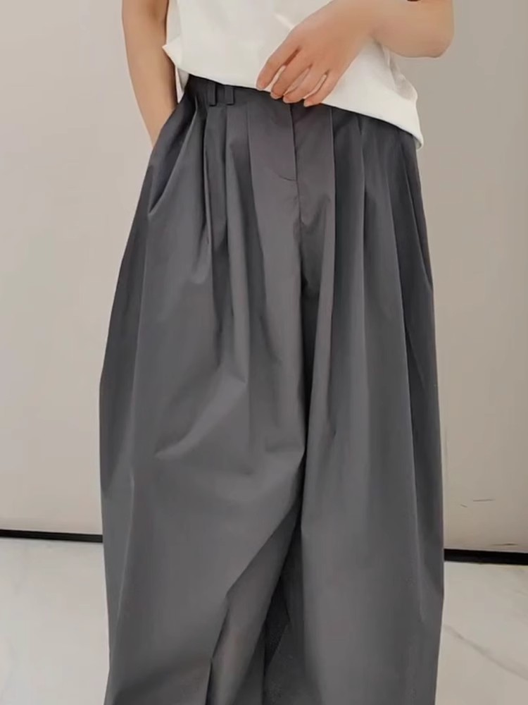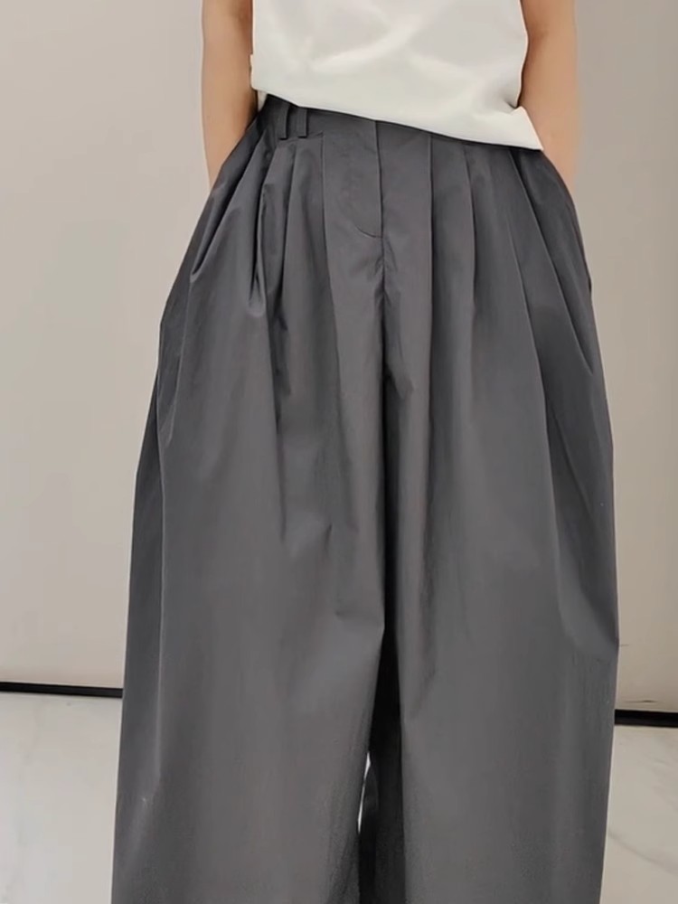 2025 Spring/Summer Lazy Style Wrinkled Quick-Dry Dark Gray Casual Wide-Leg Pants with Adjustable Cuffs, Cool and Trendy Trousers