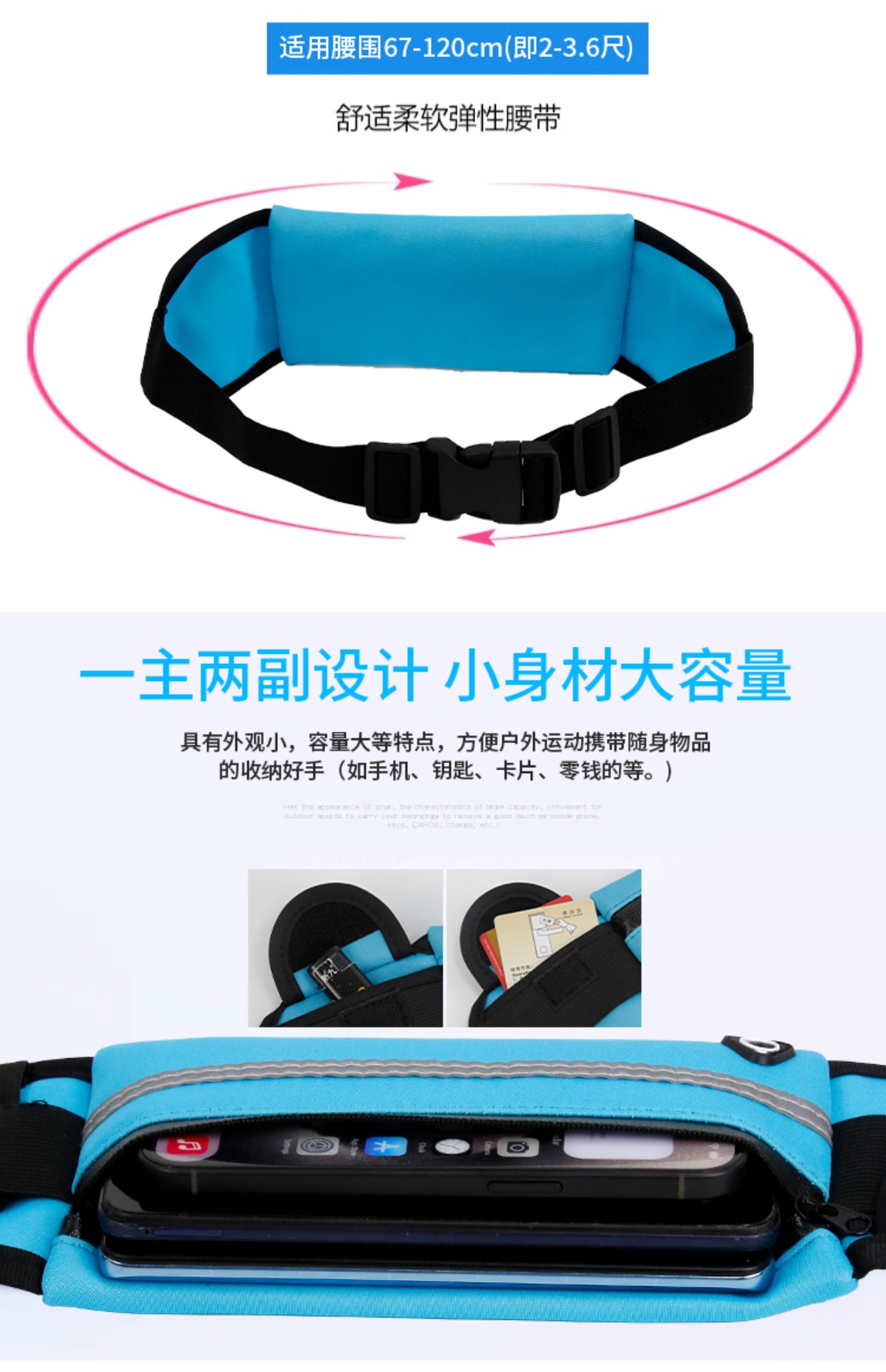 New Running Phone Waist Bag for Men and Women, Fitness Waterproof Sports Outdoor Coin Purse Belt, Multi-Functional Portable for Morning Running
