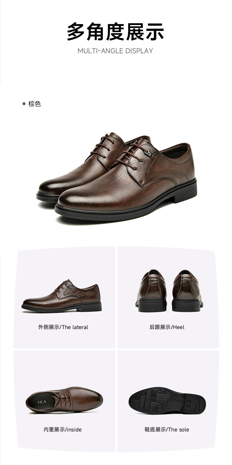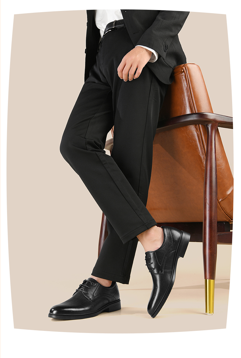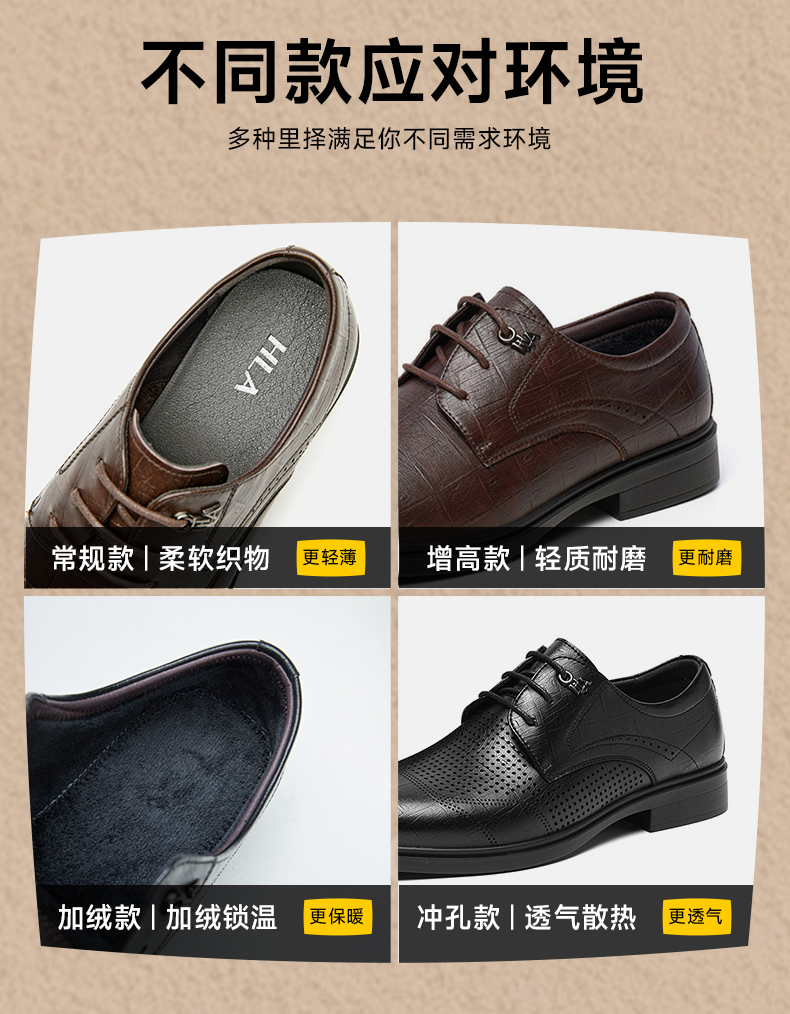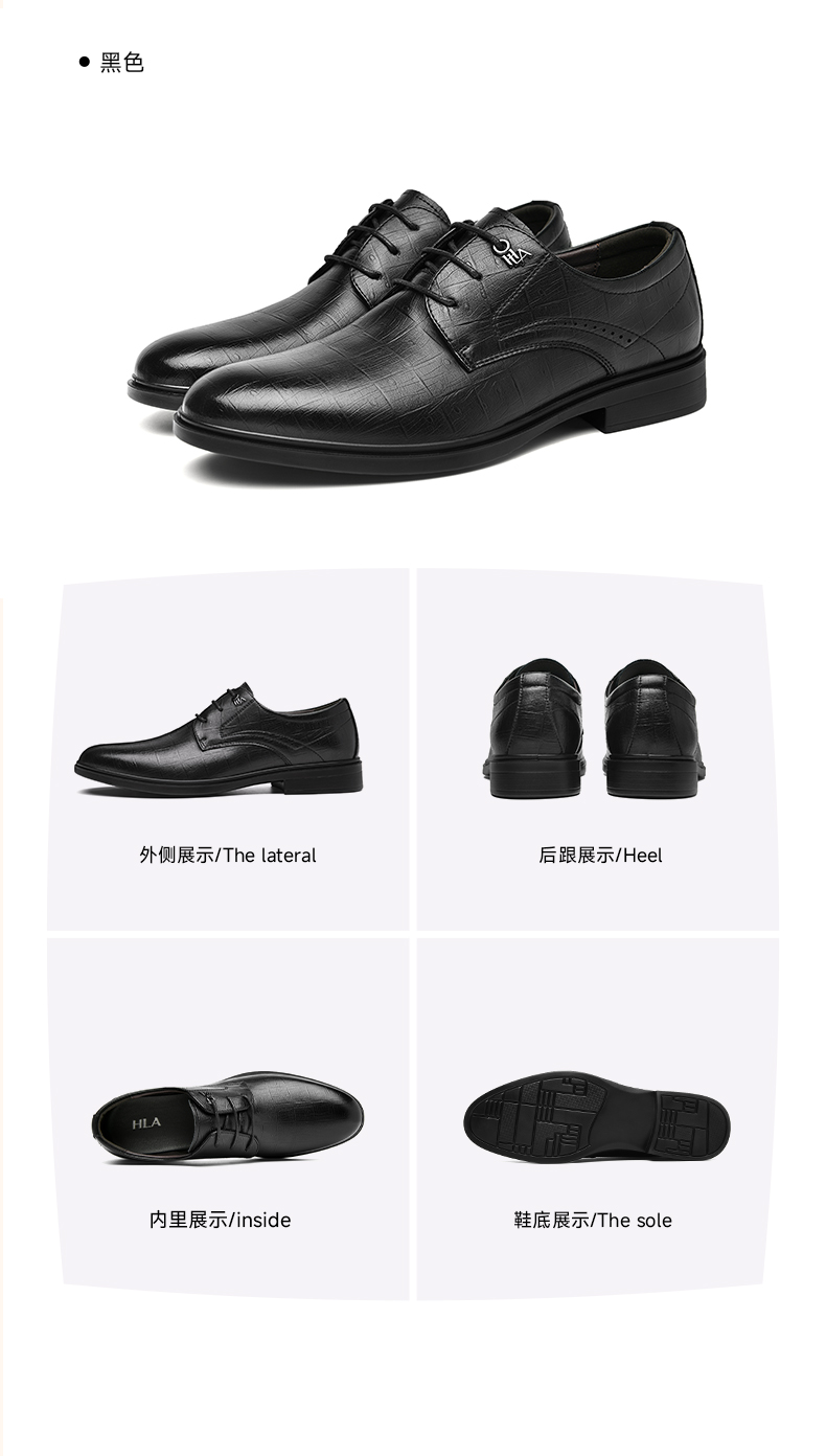 Heilan House Men's Leather Shoes, New Autumn and Winter Business Formal Wear, Soft-Soled British Style Fleece-Lined Derby Shoes, Height-Increasing Wedding Shoes