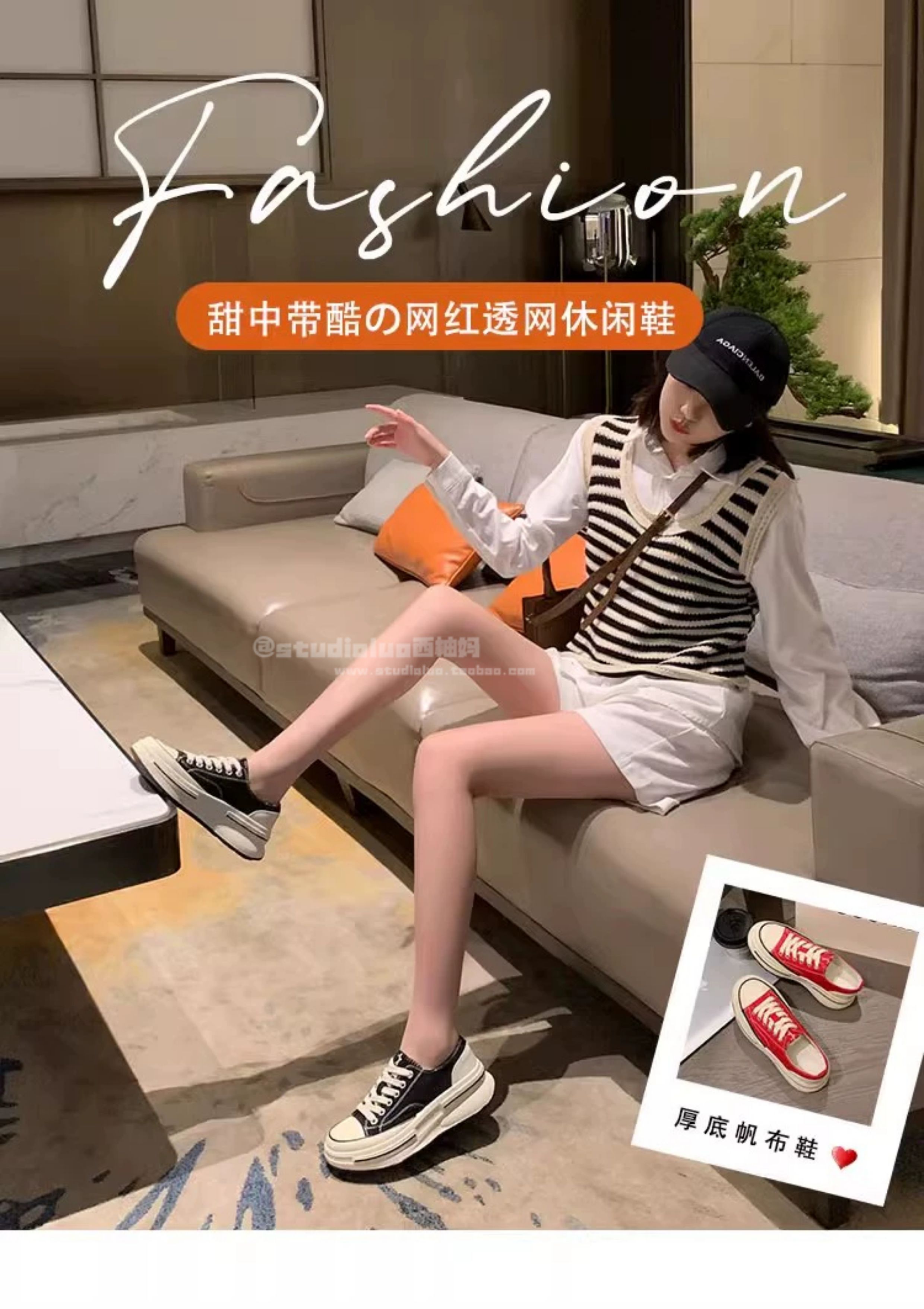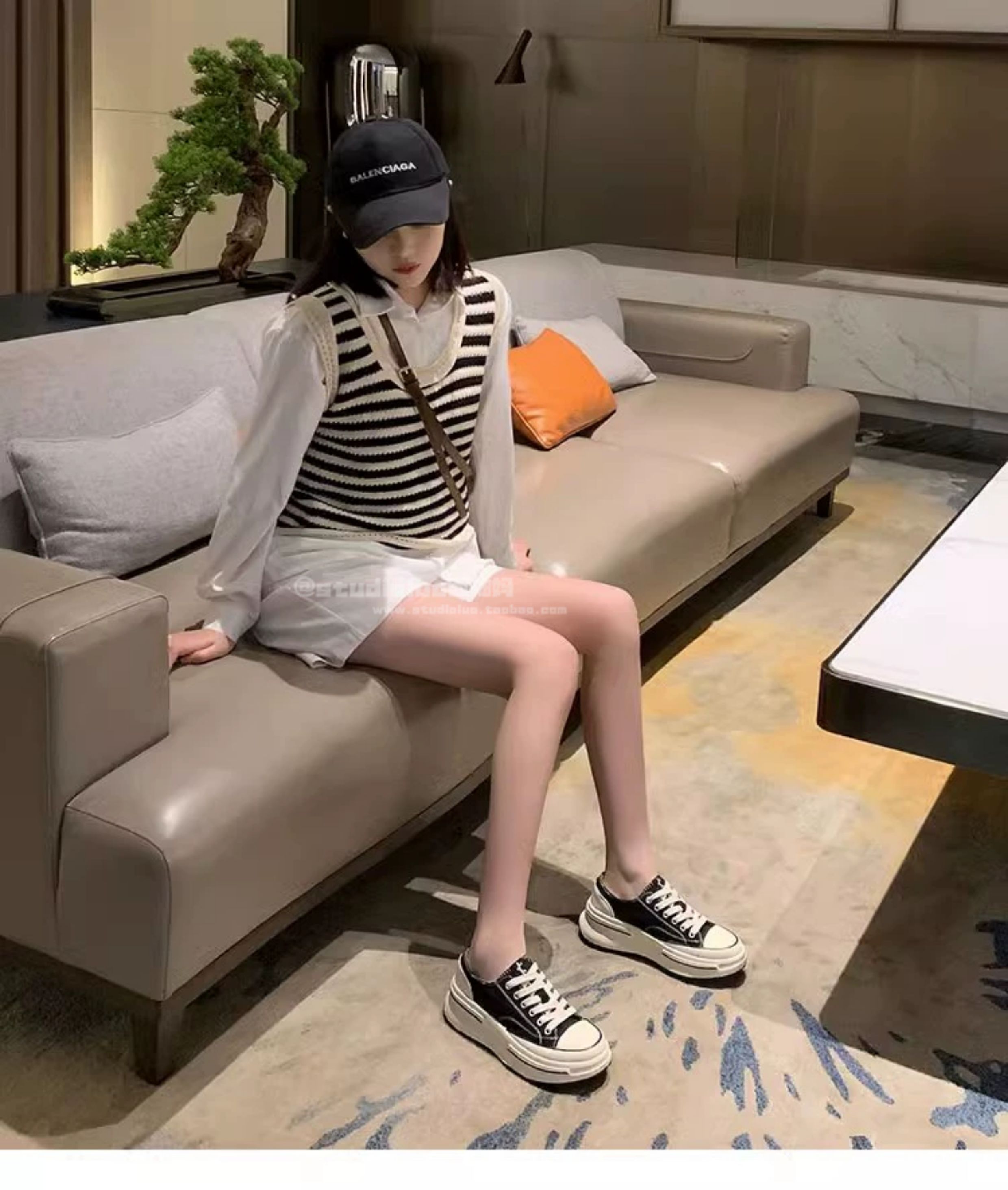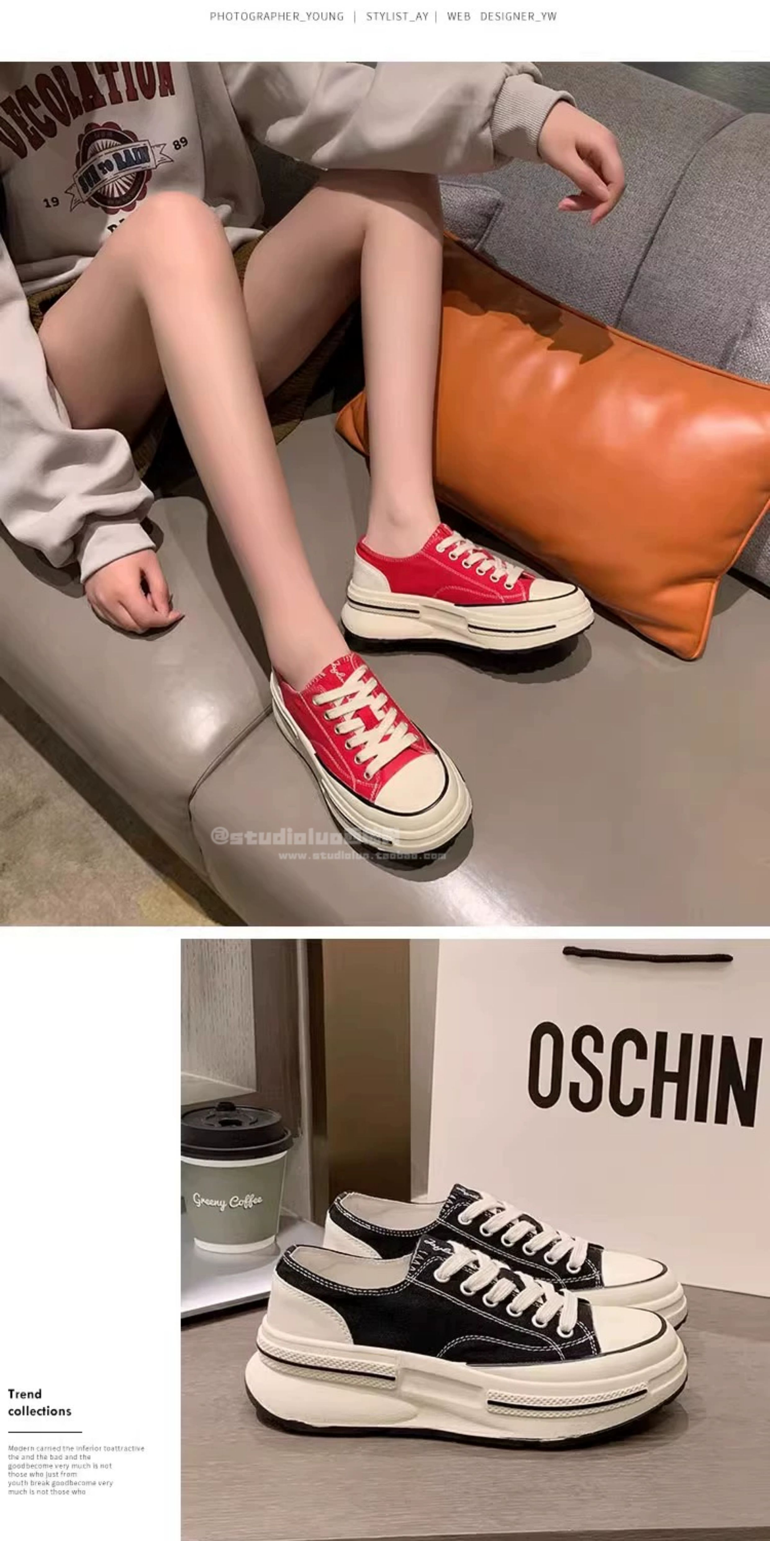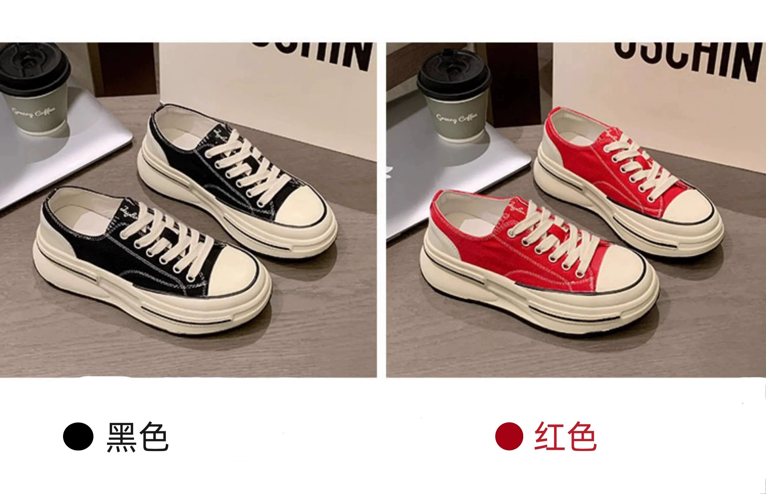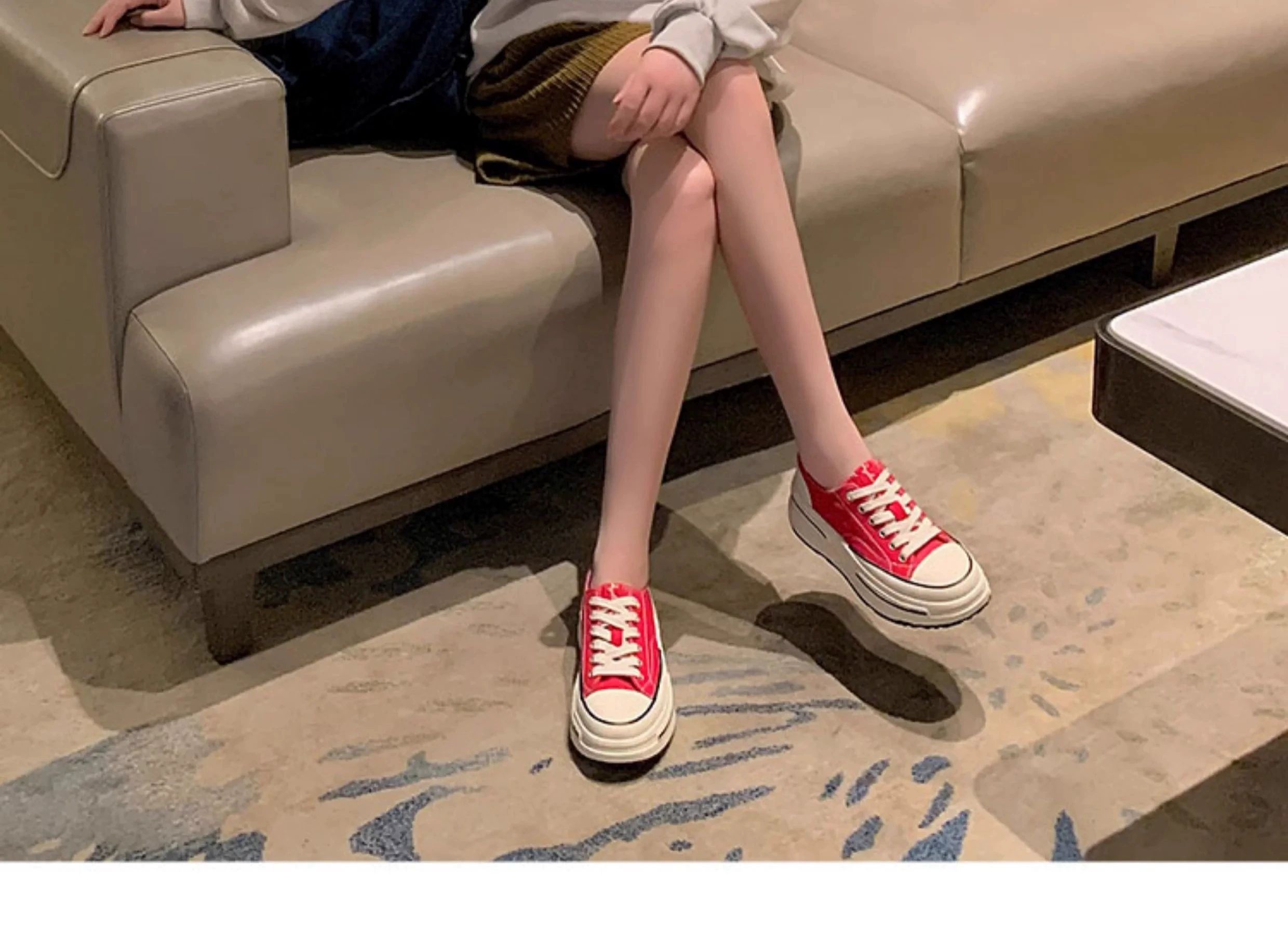 Hong Kong Ankora Red Thick-Soled Canvas Shoes for Women 2025 Spring and Autumn New Breathable Versatile Comfortable Height-Increasing Casual Sneakers