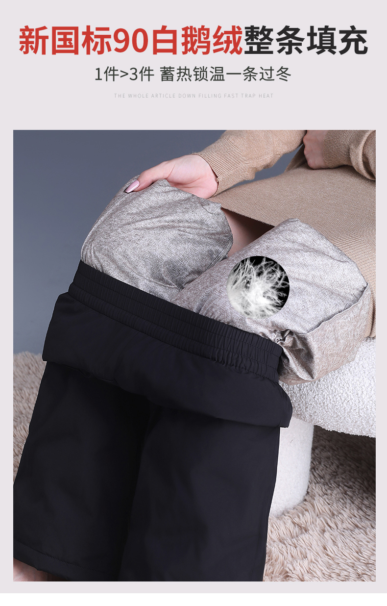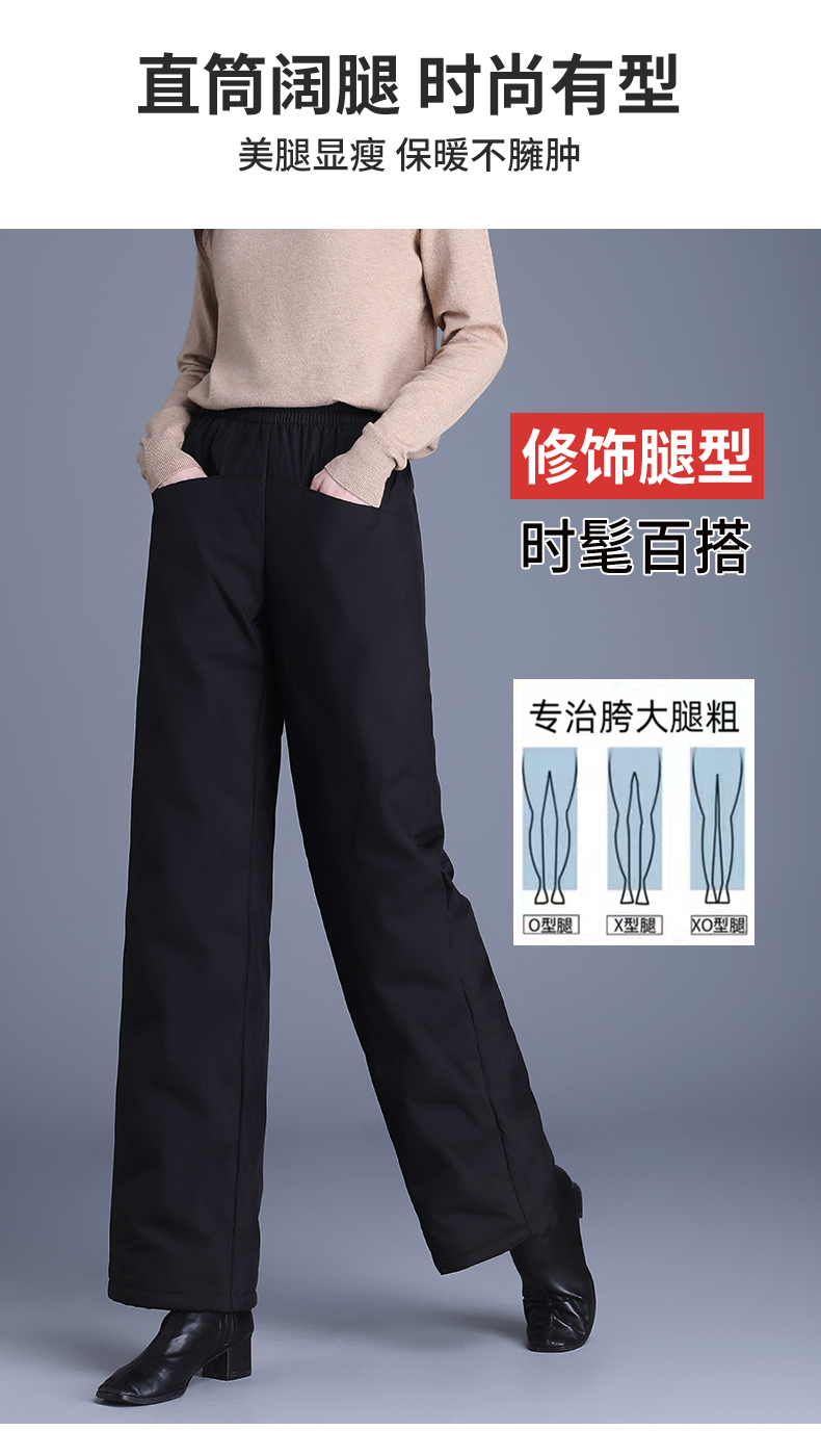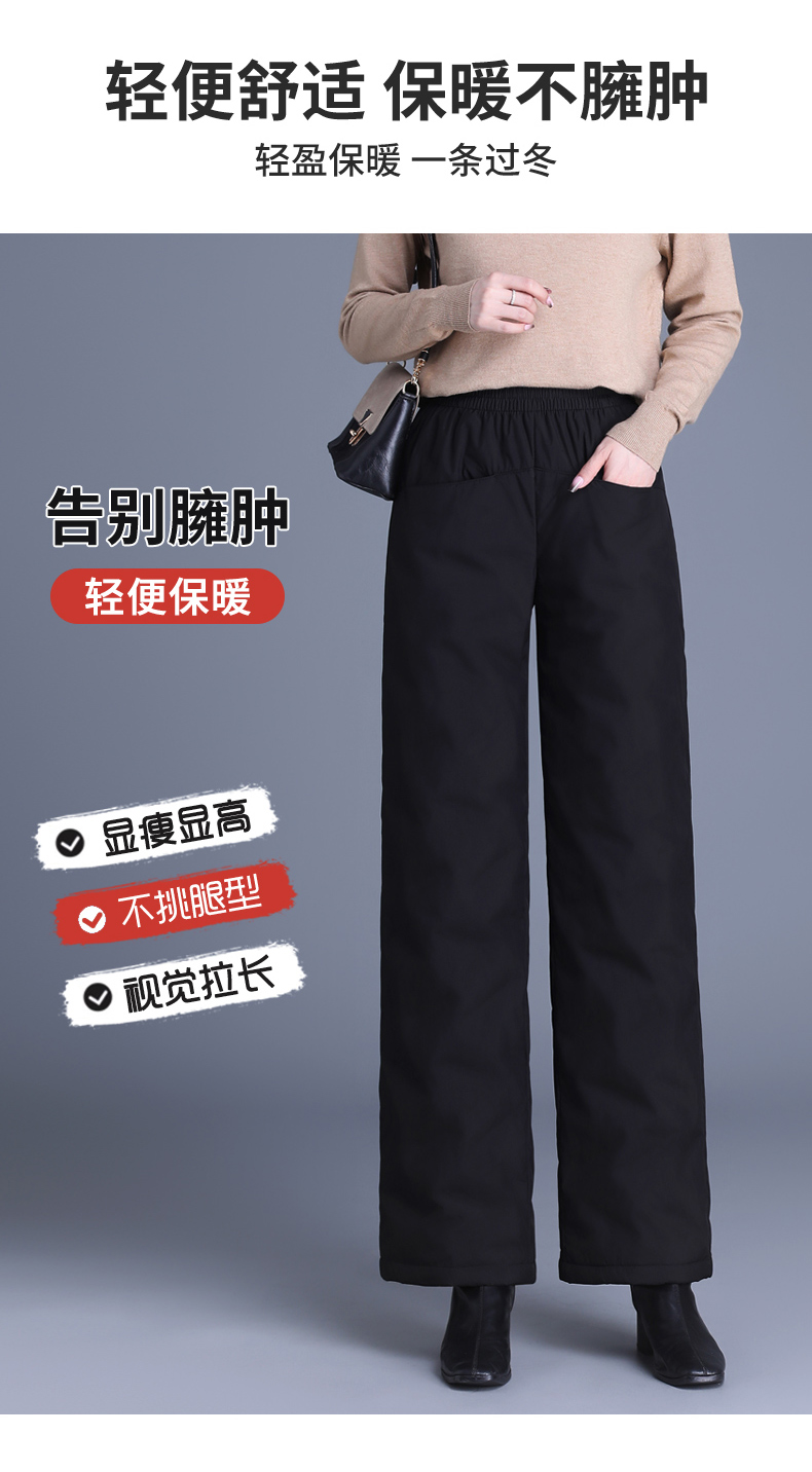 Women's down Pants for Outdoor Wear in Winter, Straight-Leg, Thickened, Loose-Fitting, High-Waisted, Warm, Suitable for Middle-Aged and Elderly, Goose down Cotton Pants