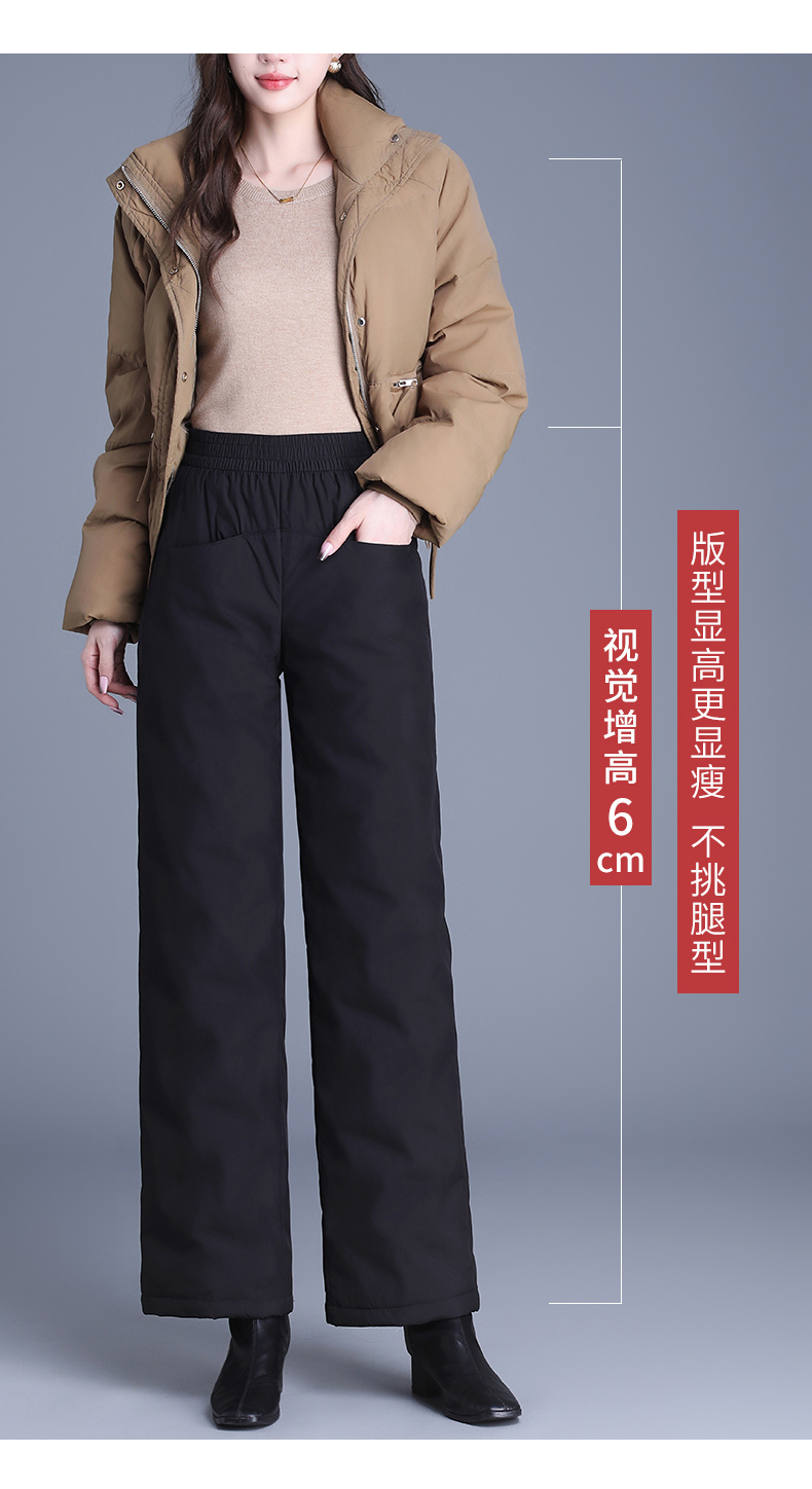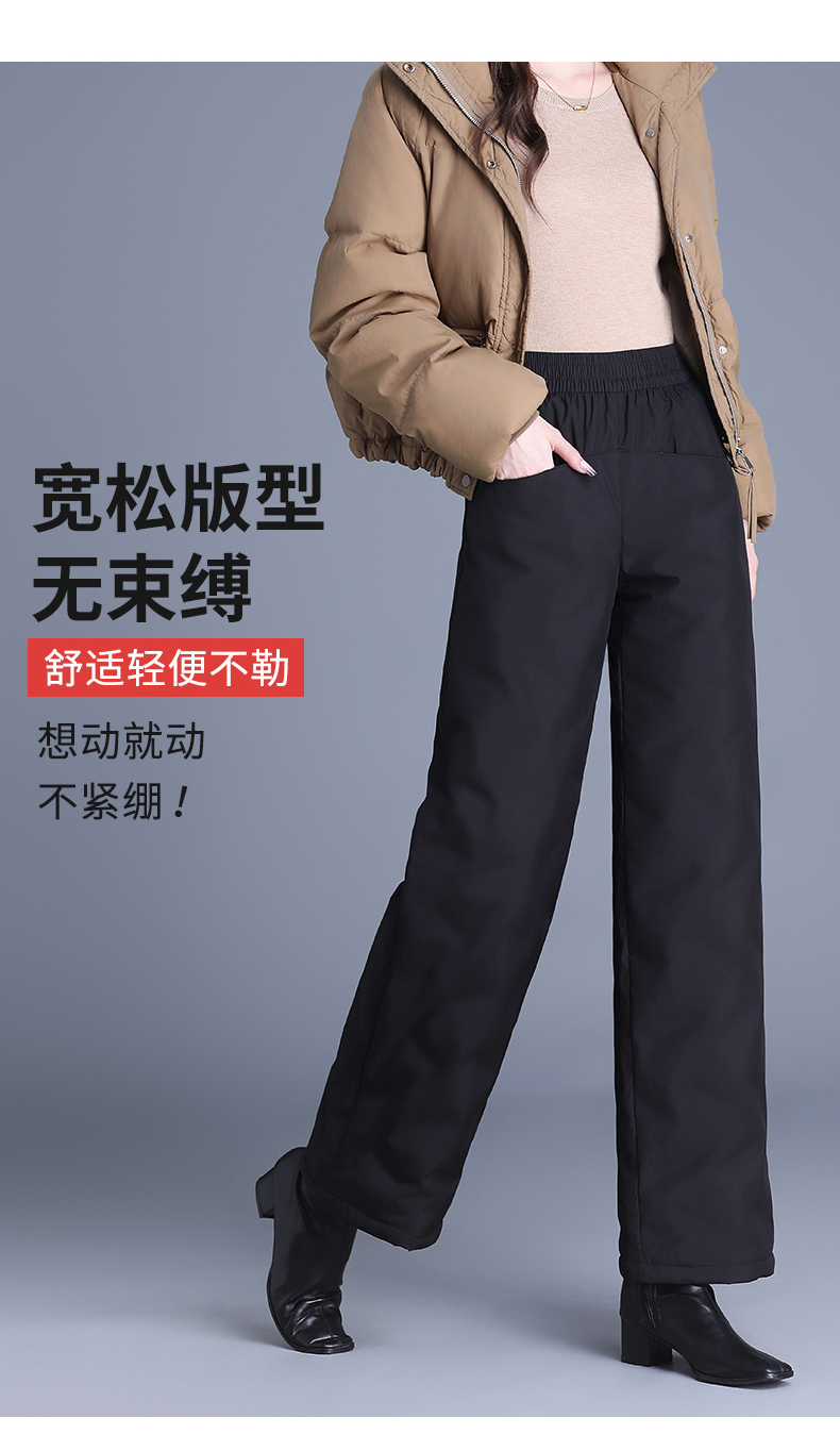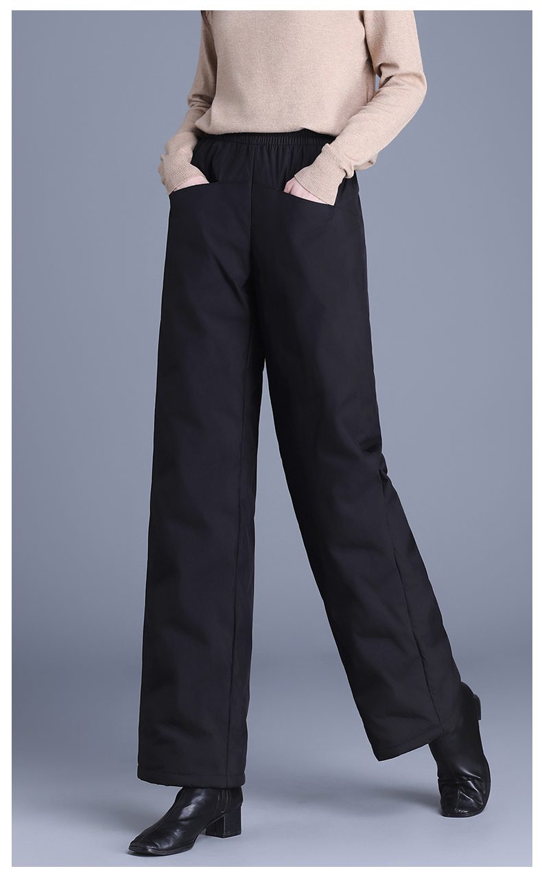 Women's down Pants for Outdoor Wear in Winter, Straight-Leg, Thickened, Loose-Fitting, High-Waisted, Warm, Suitable for Middle-Aged and Elderly, Goose down Cotton Pants