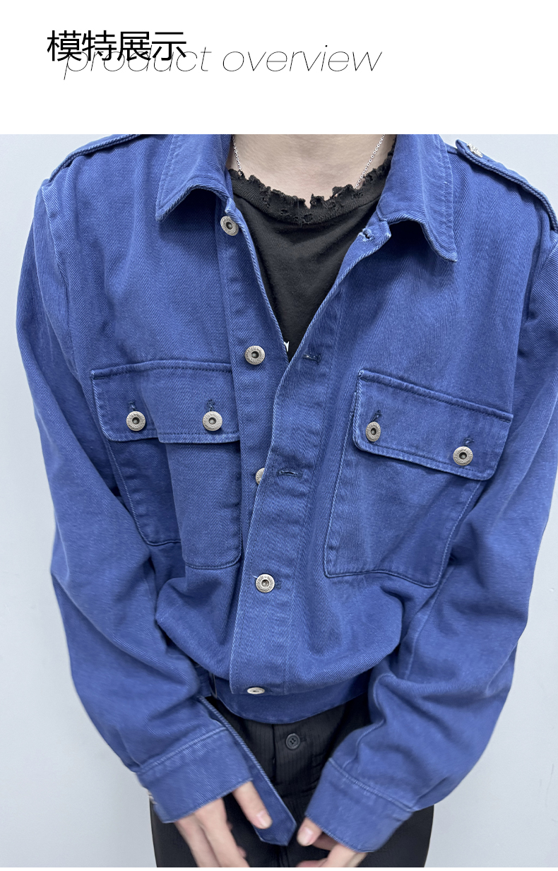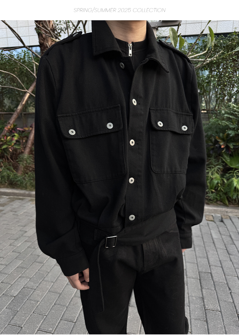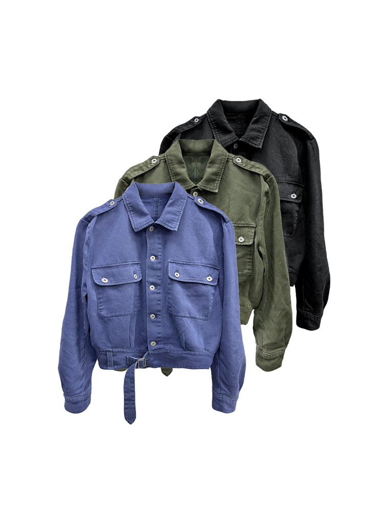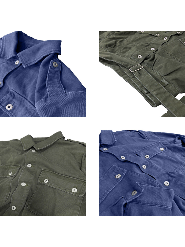 Wanna Lab 25Ss Military Denim Jacket with Adjustable Belt, Dutch Royal Army Jacket with Ykk Wheat Spike Buckle