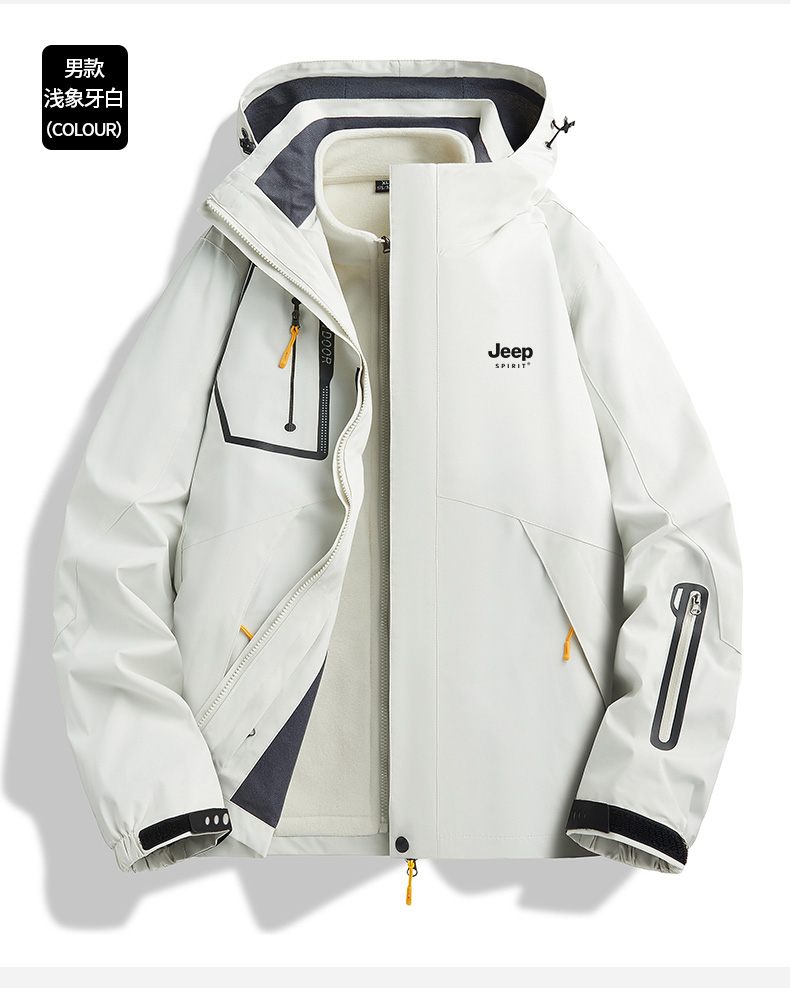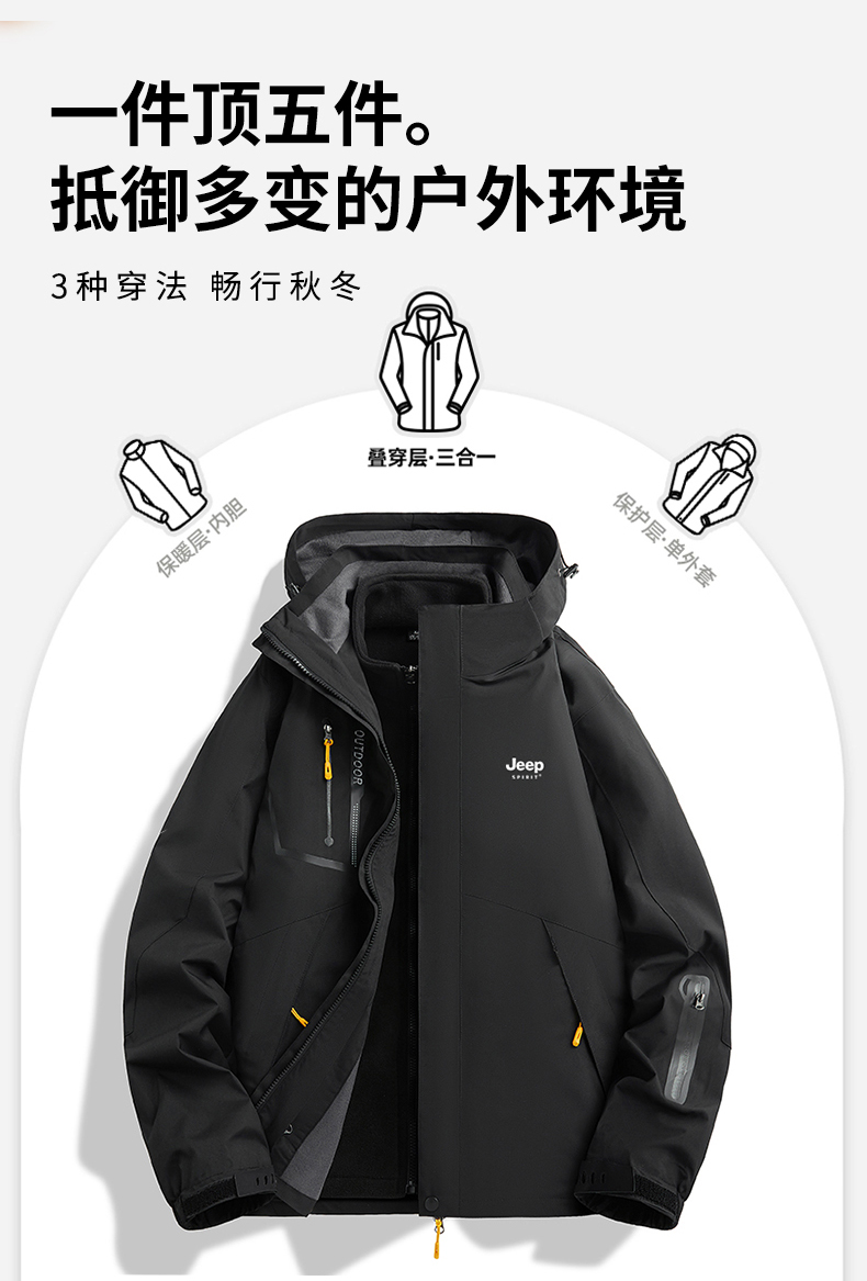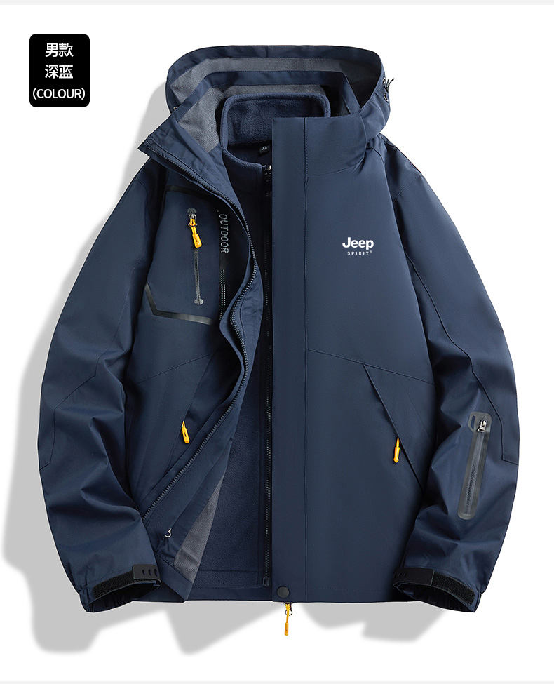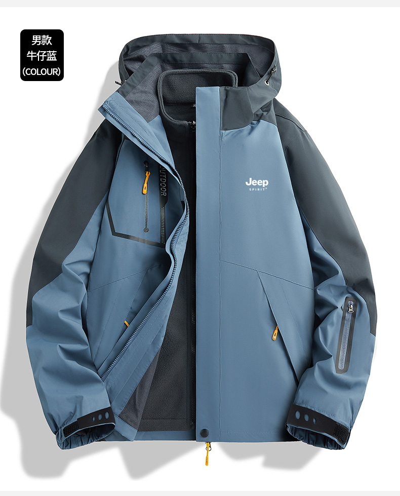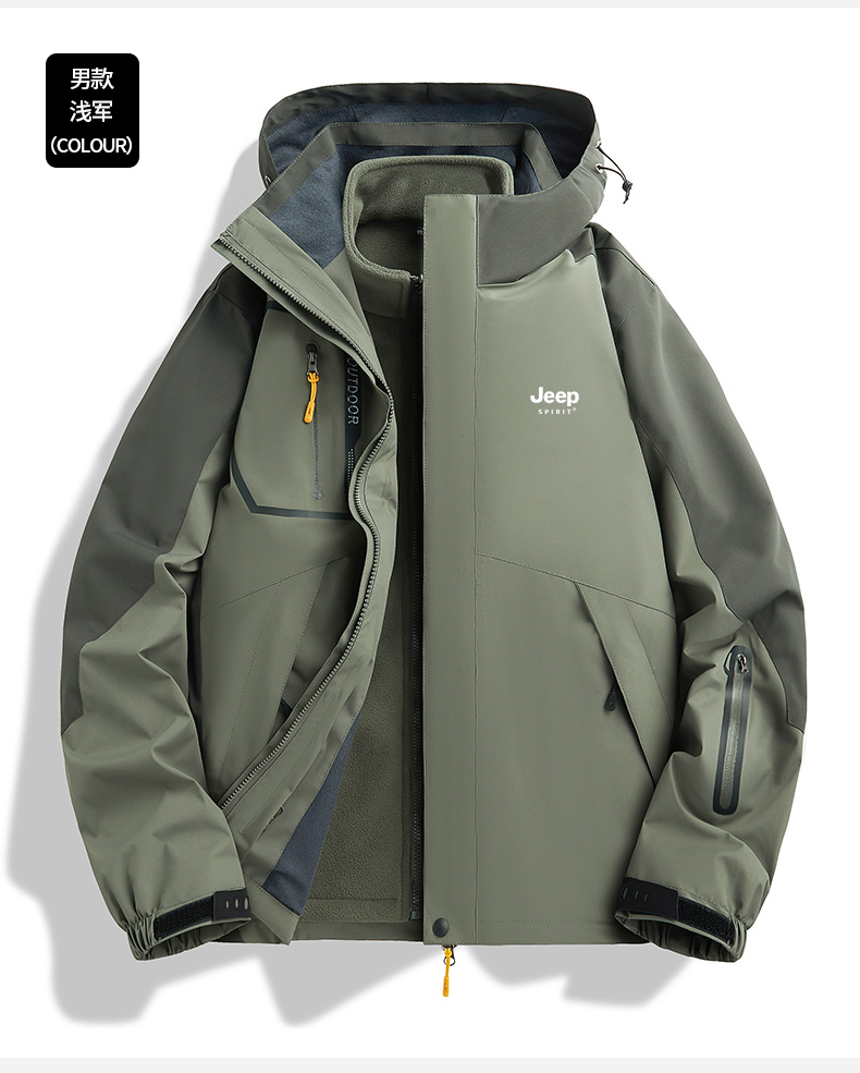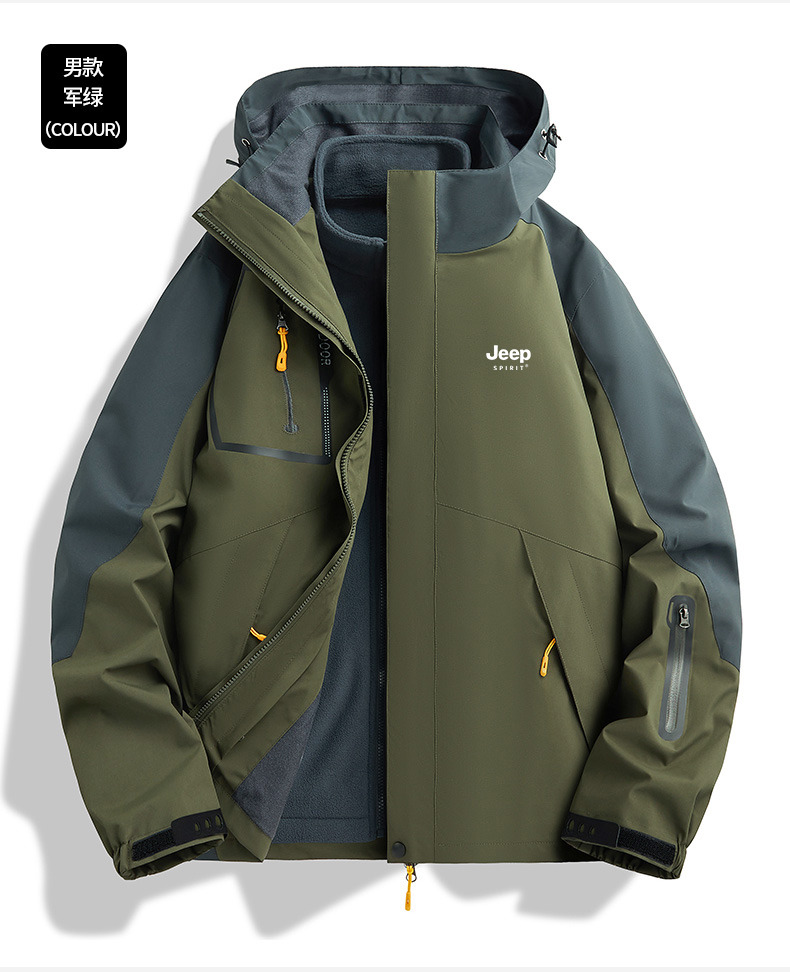 Jeep Men's Jacket, Cotton Coat, 2024 New Autumn and Winter Model, Outdoor Three-In-One Liner for Middle-Aged and Elderly Men