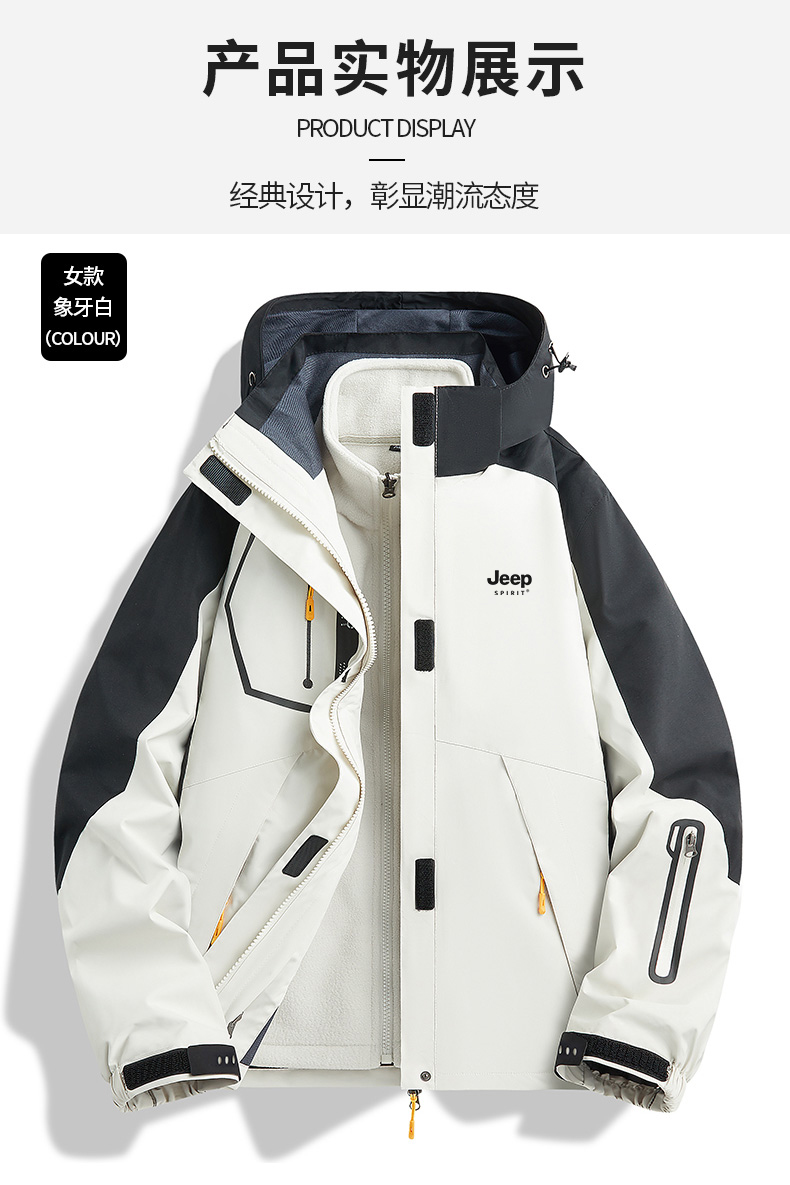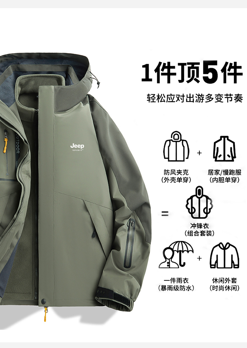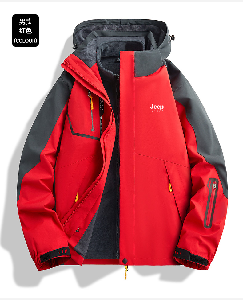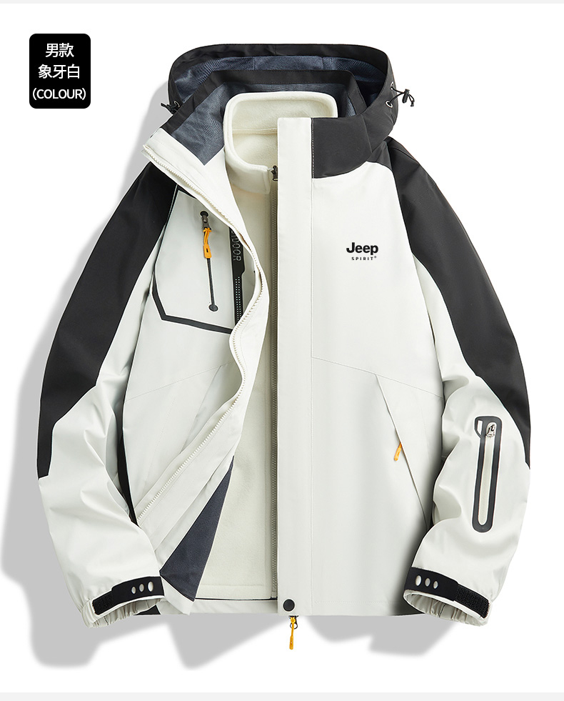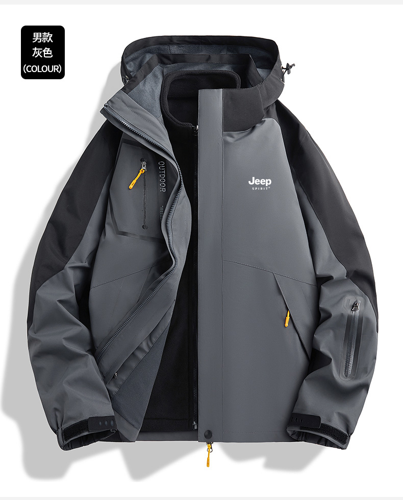 Jeep Men's Jacket, Cotton Coat, 2024 New Autumn and Winter Model, Outdoor Three-In-One Liner for Middle-Aged and Elderly Men