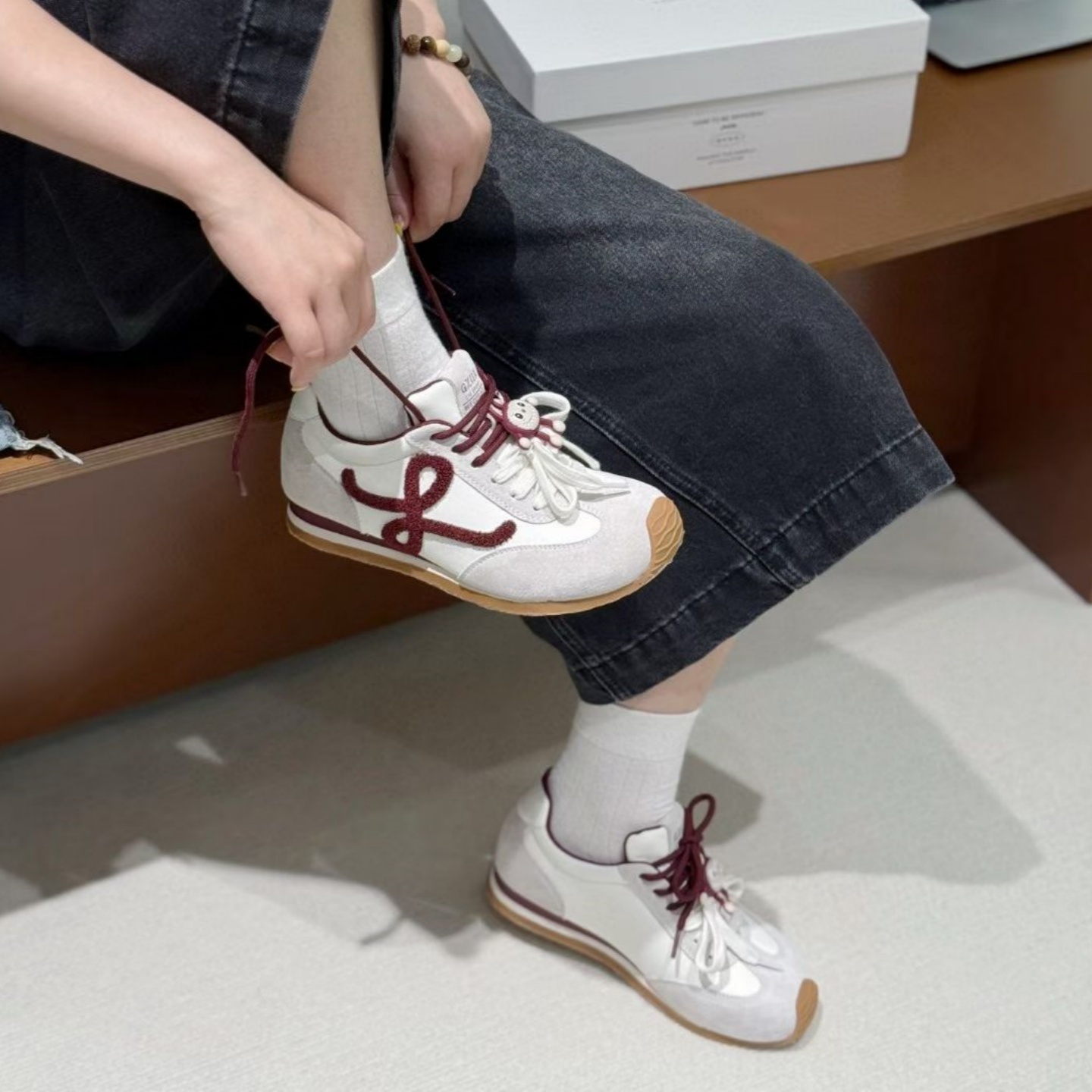 Genuine Leather Training Shoes 2025 Retro Color-Blocked Suede Flat Shoes with Double Shoelaces and Fabric Buckle Women's Casual Sneakers