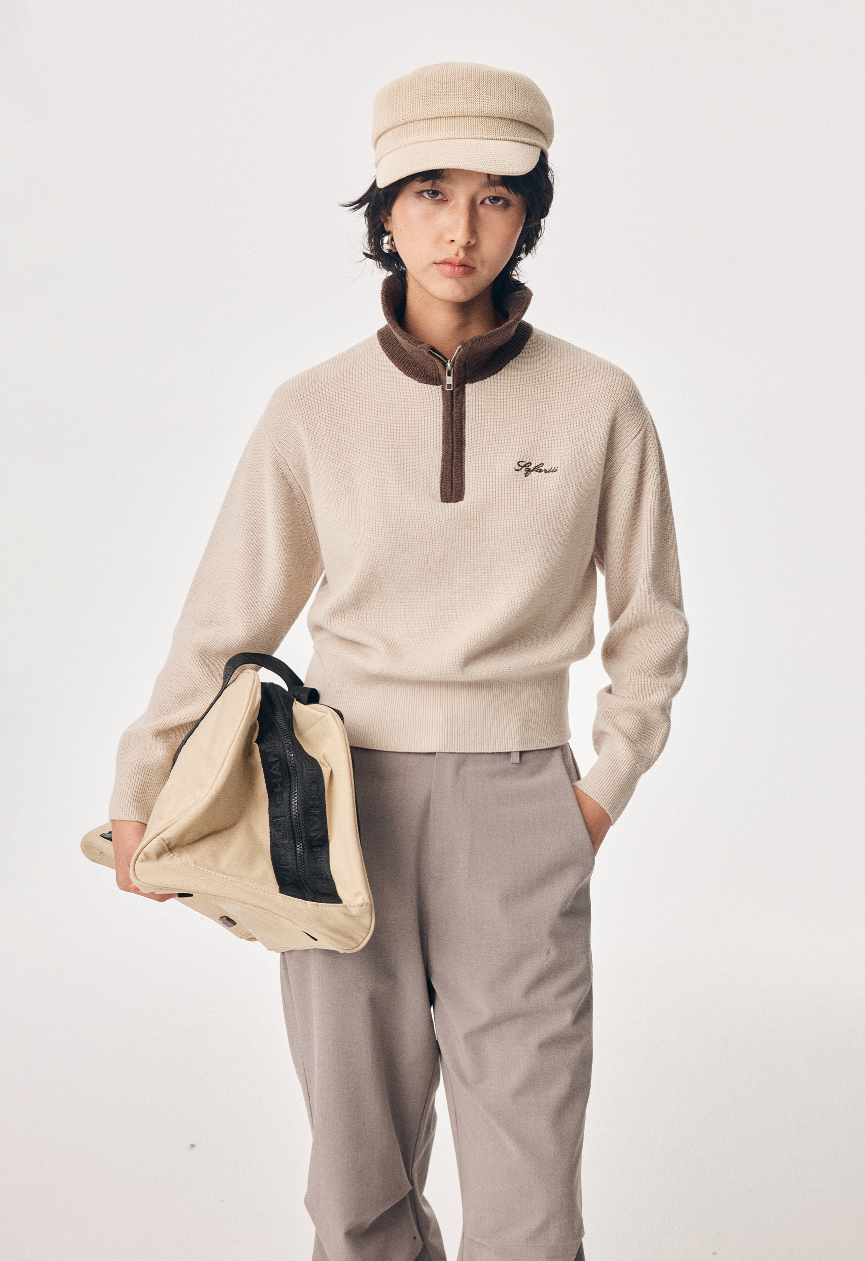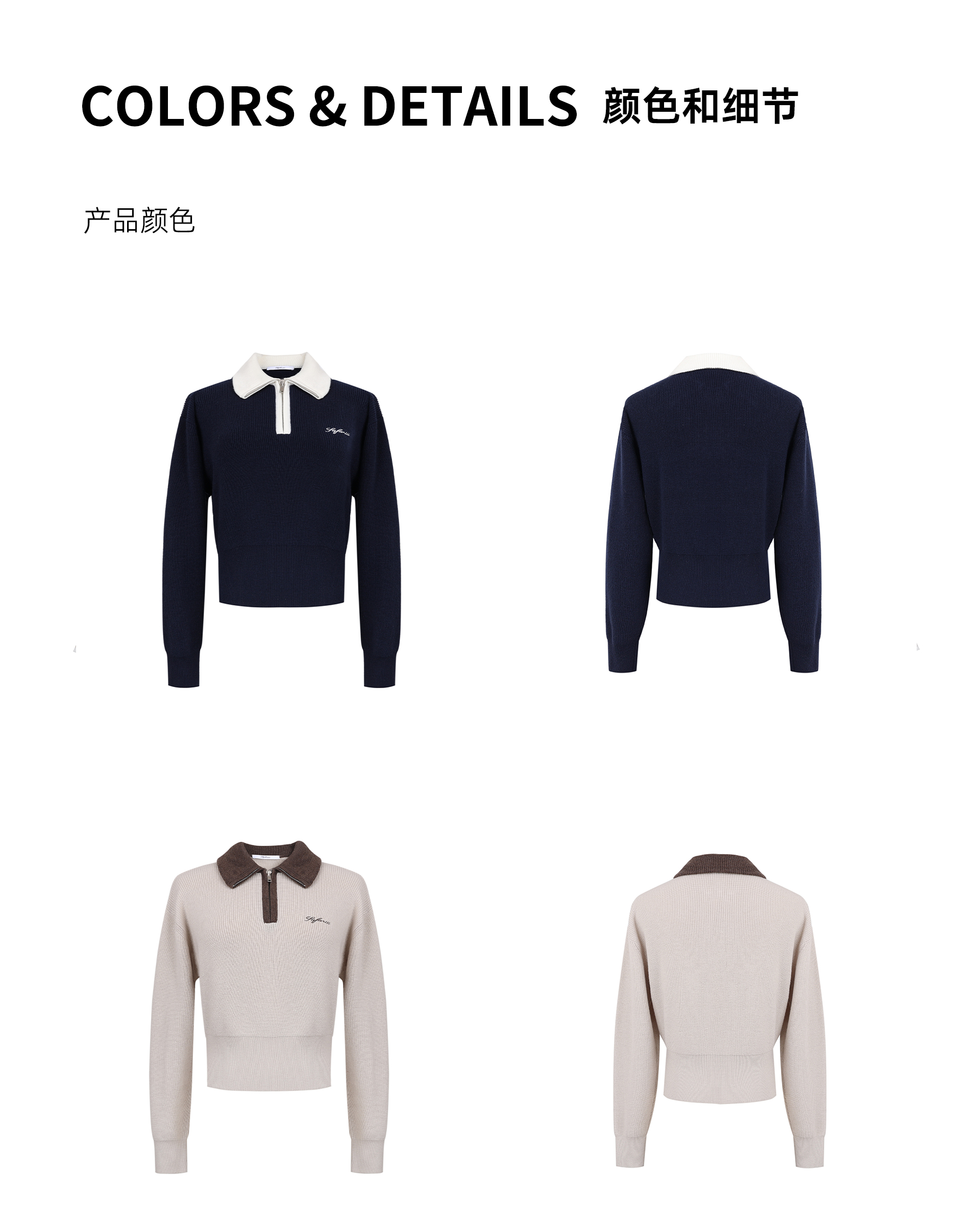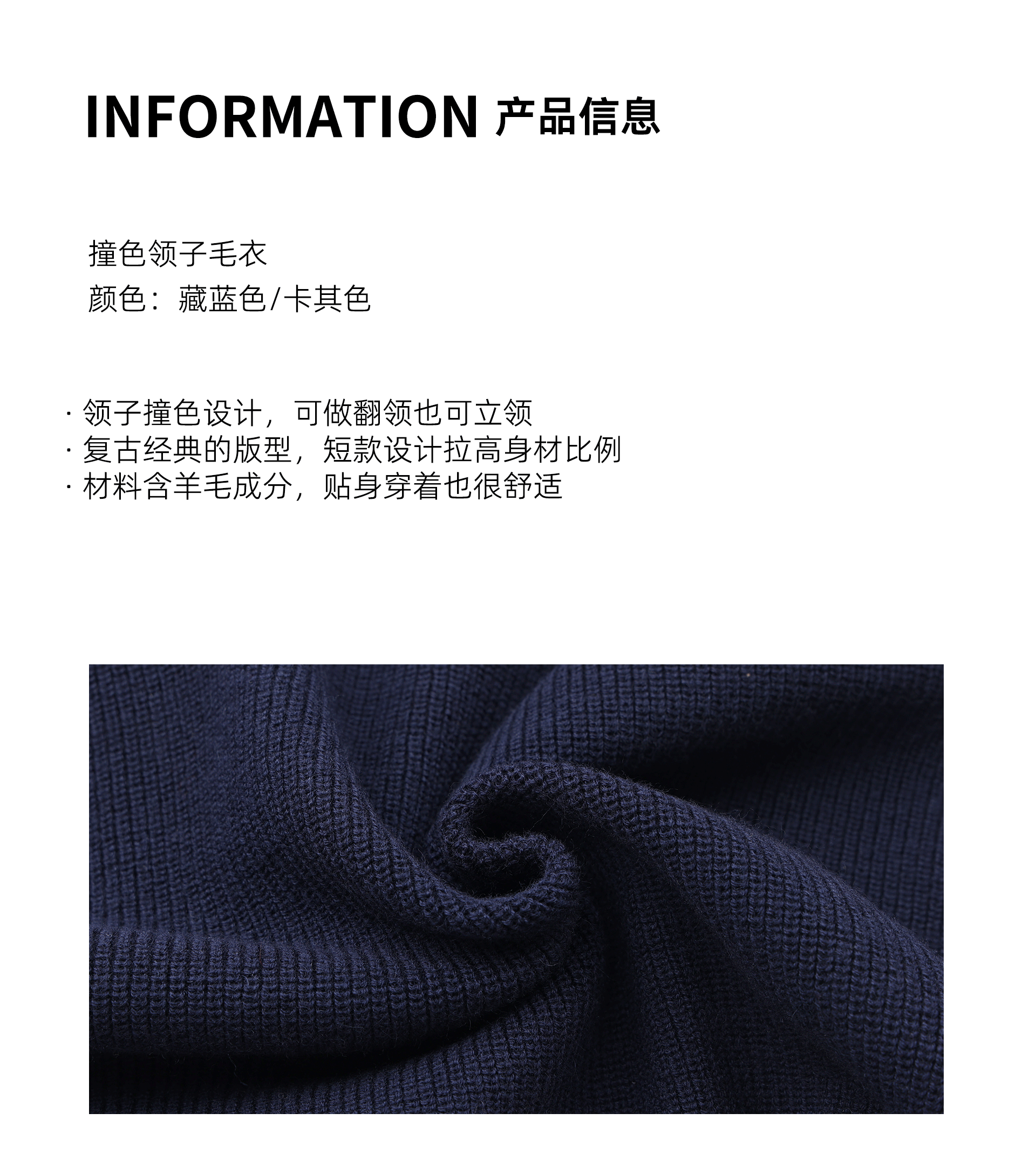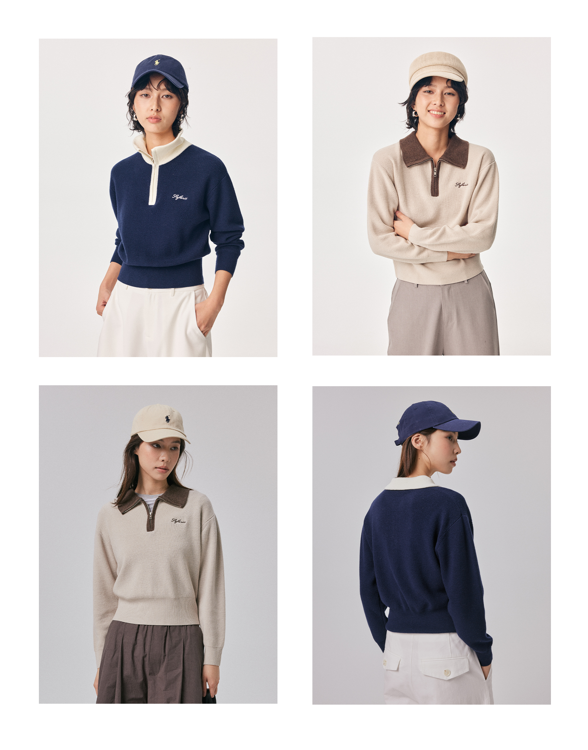 Safariii2025 Autumn New Old Money Style Retro Color-Block Sweater with Turn-Down Collar and Zipper Knitted Long-Sleeve Sweater for Women