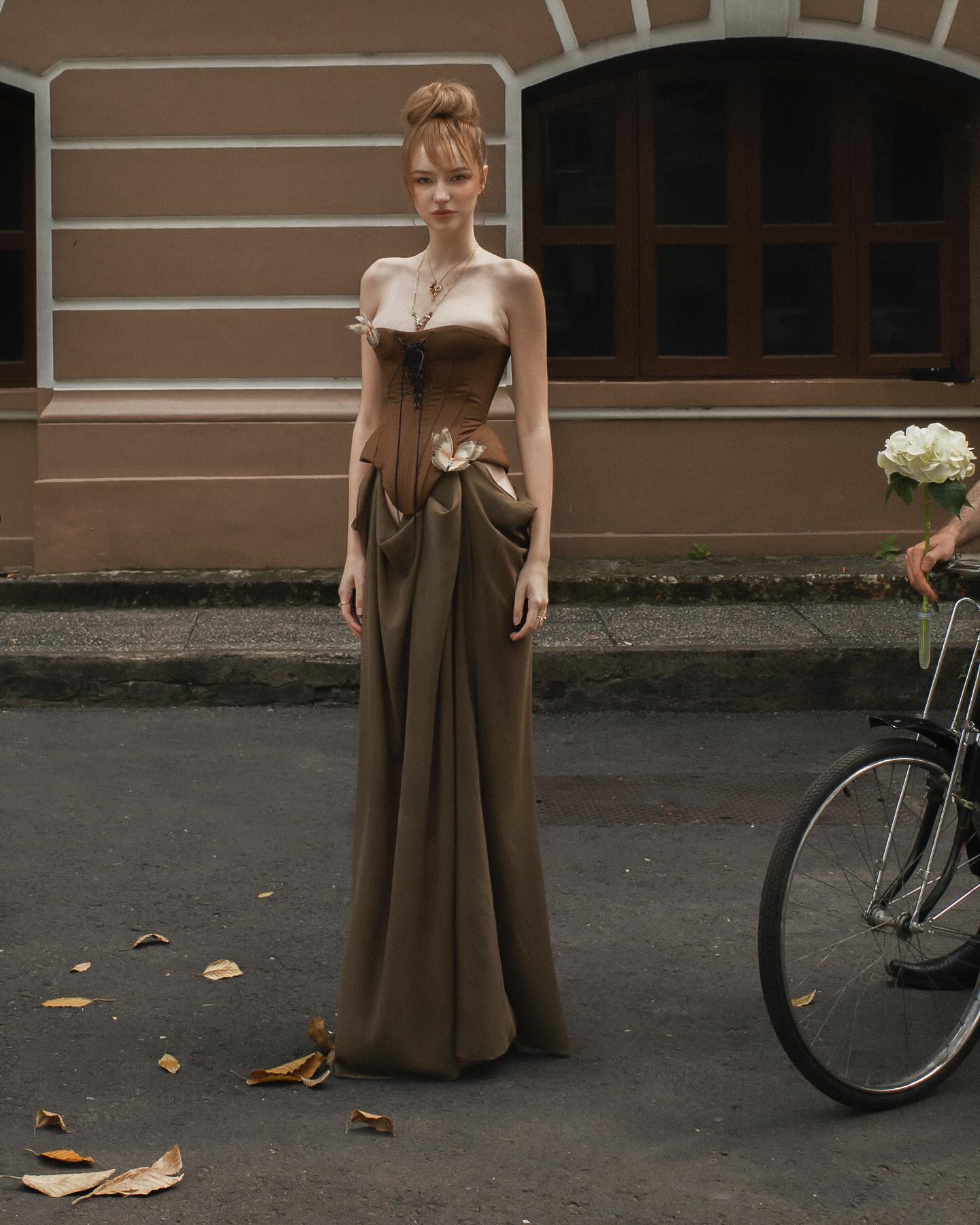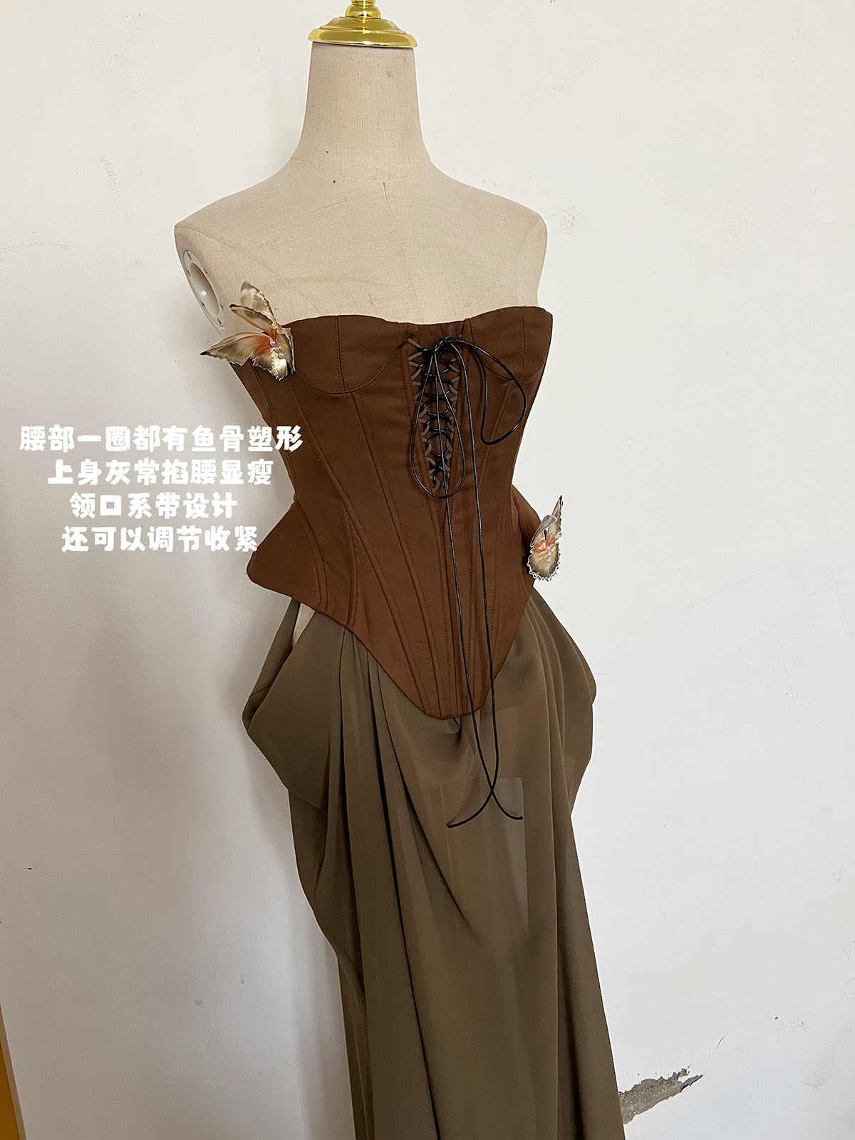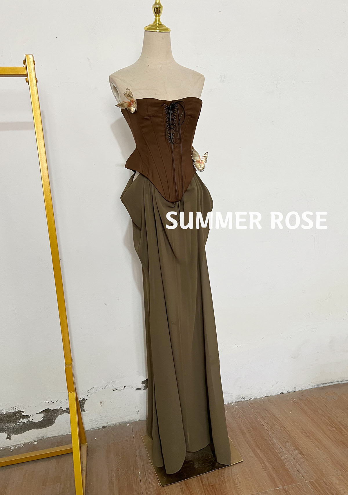 Summer Rose Vietnamese Niche Sexy Strapless Fishbone Dress with a Slimming and Elegant Design, Long Dress