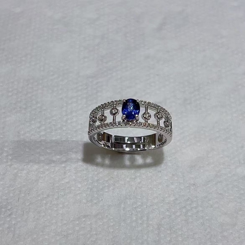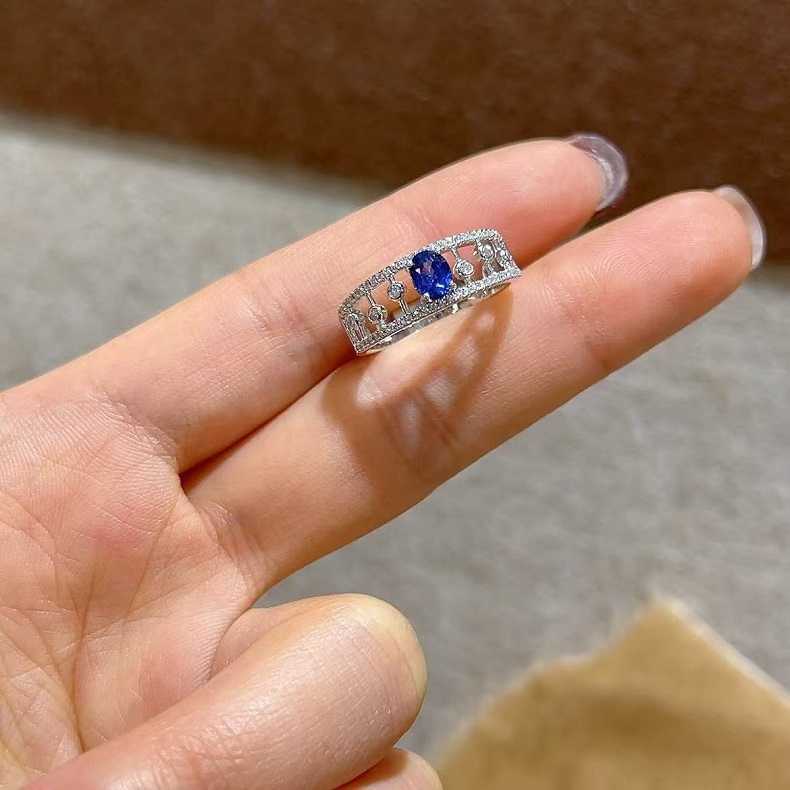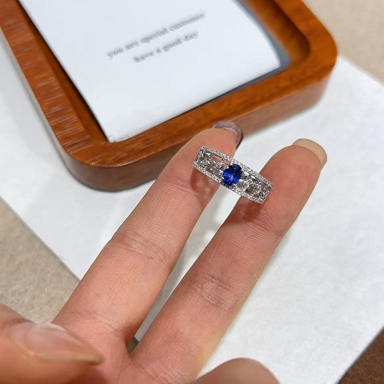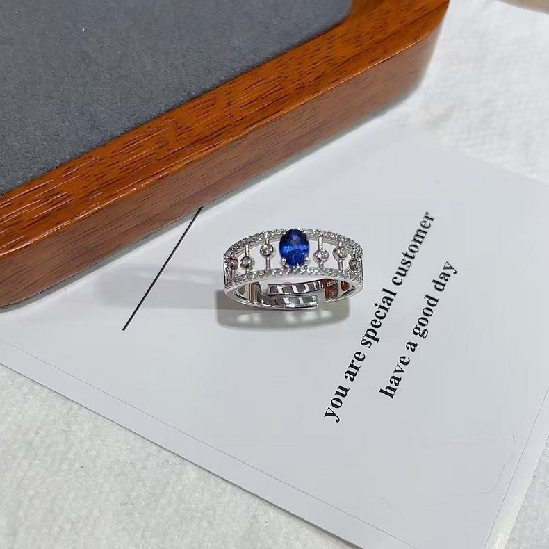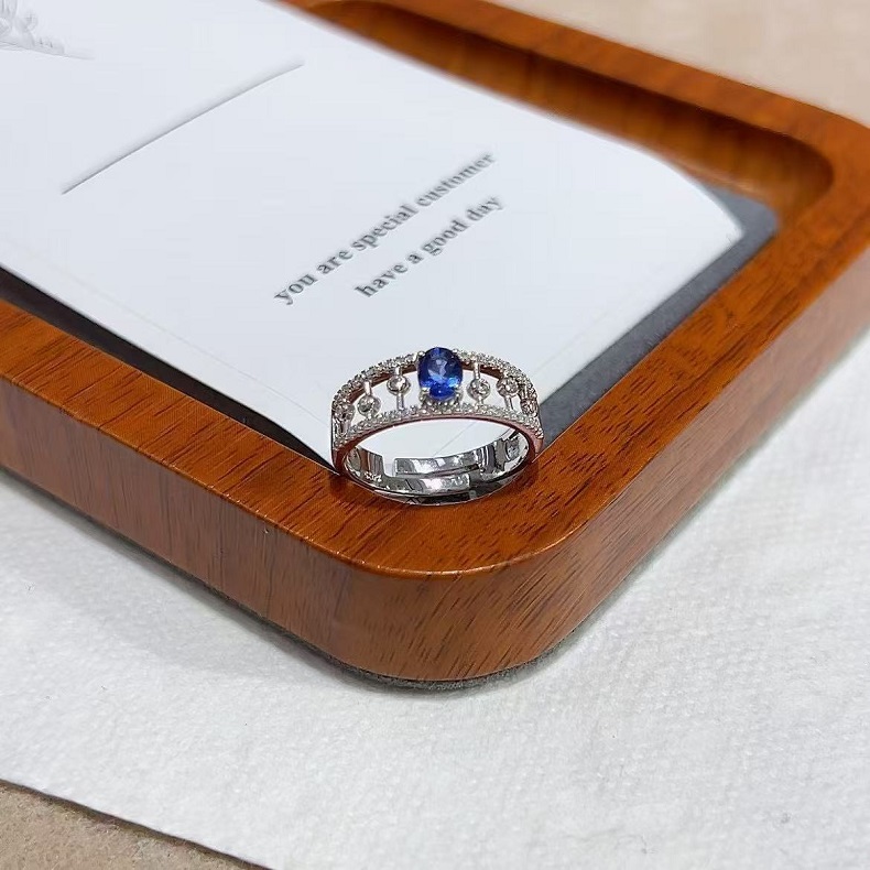 Natural Sapphire Ring for Women, S925 Sterling Silver Inlaid with Gemstones, 4*5mm, Fashionable, Light Luxury, High-End Feel, Open Ring