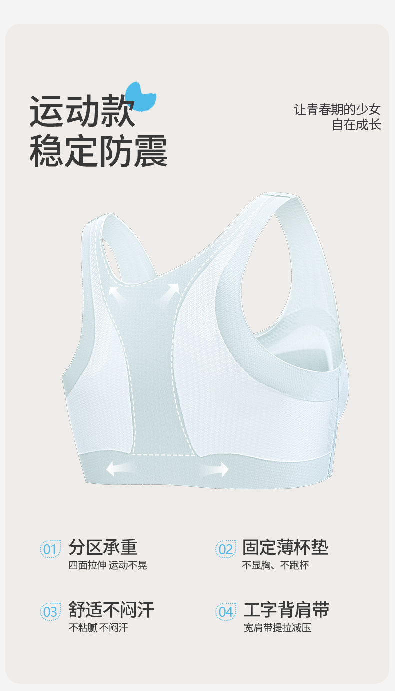 Sports Bra Vest for Teenage Girls, Summer Thin Style, for Development Period, Older Children, High School Girls' Bra