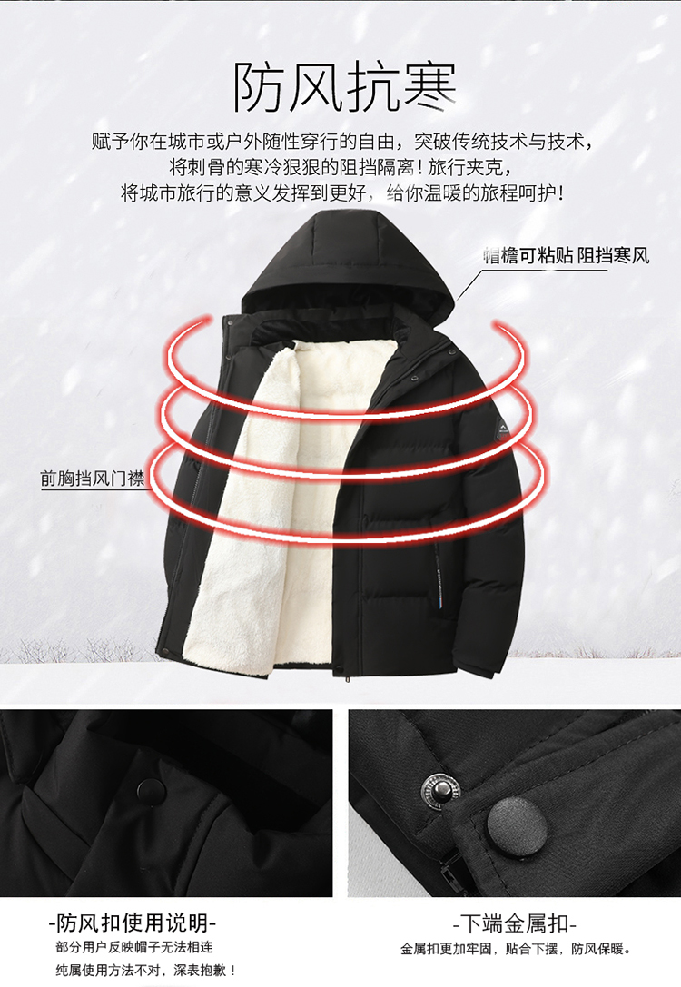 Playboy Men's Cotton Jacket Winter Fleece-Lined Thickened Loose Casual Lamb Wool Cotton Coat Men's down Cotton Jacket
