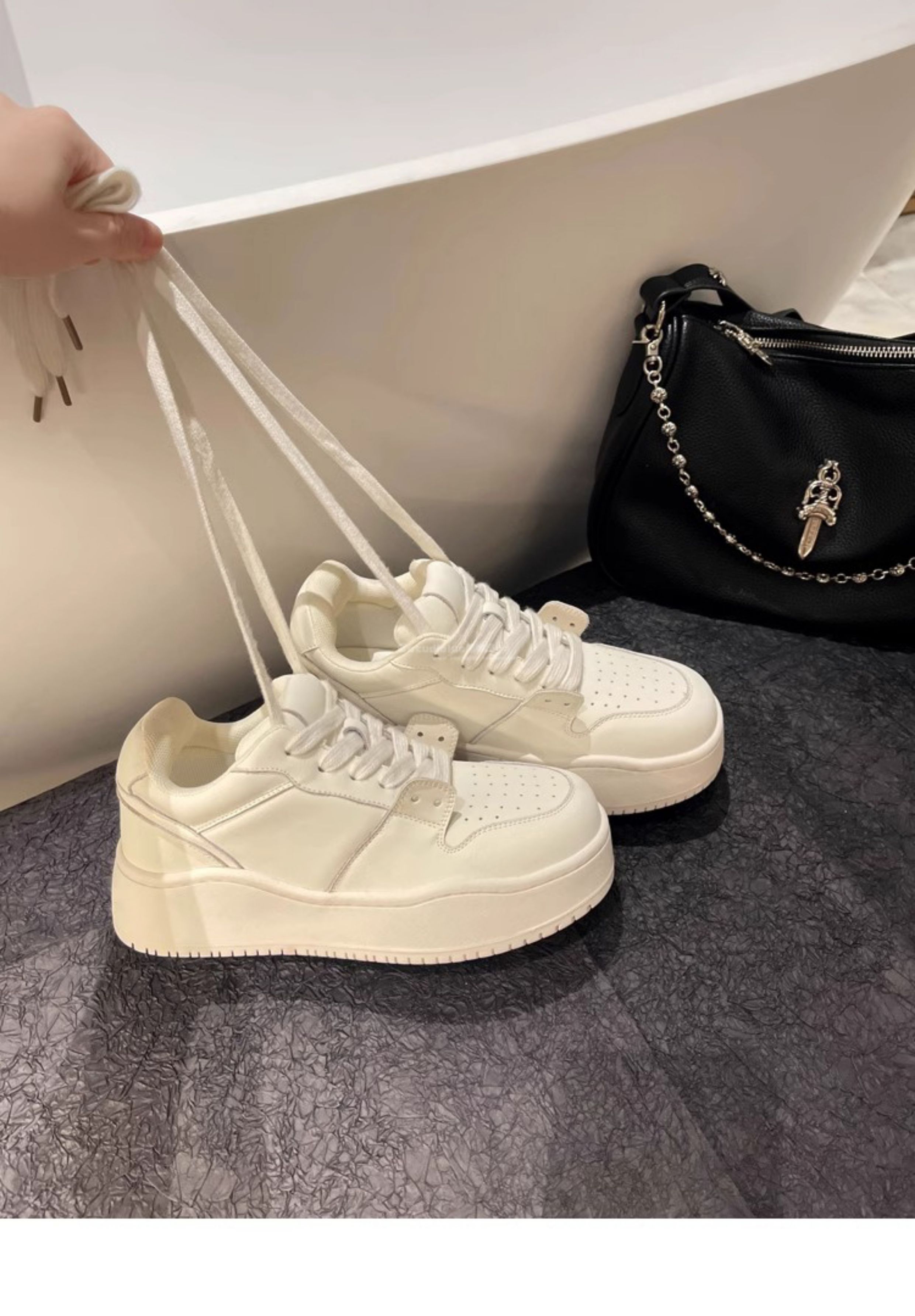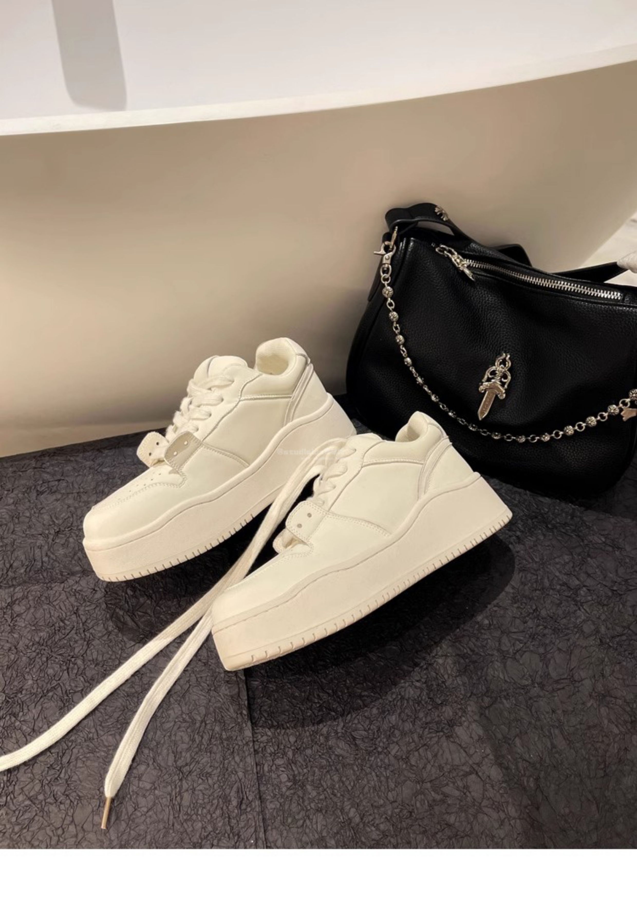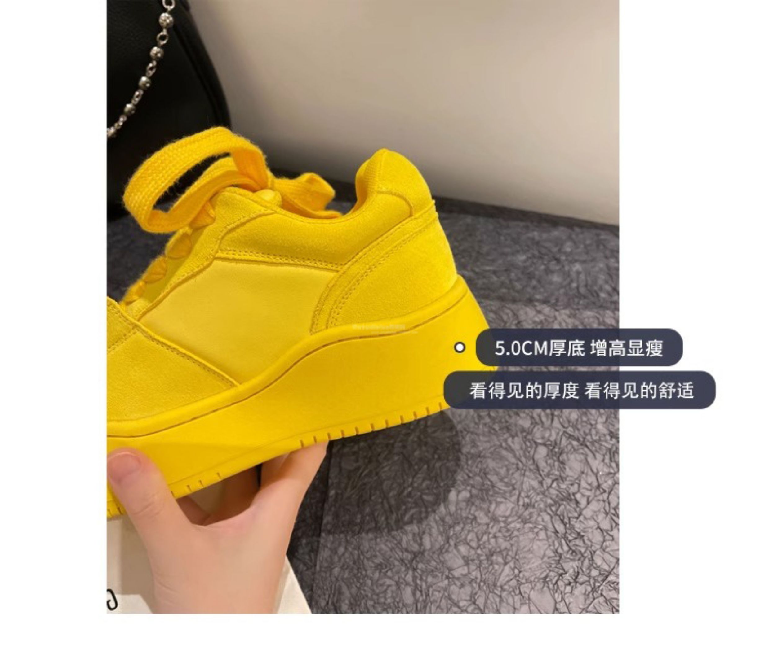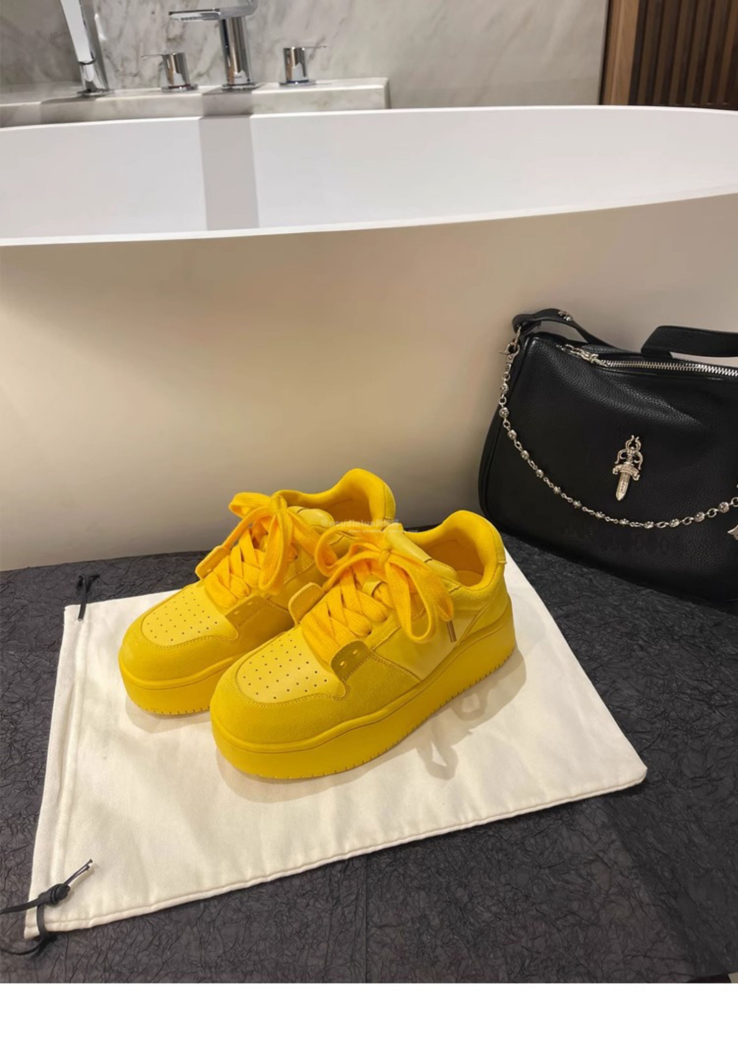 Hong Kong Genuine Leather Yellow Height-Increasing Sneakers for Women 2025 Spring and Summer New Thick-Soled Platform Loafers Casual White Shoes