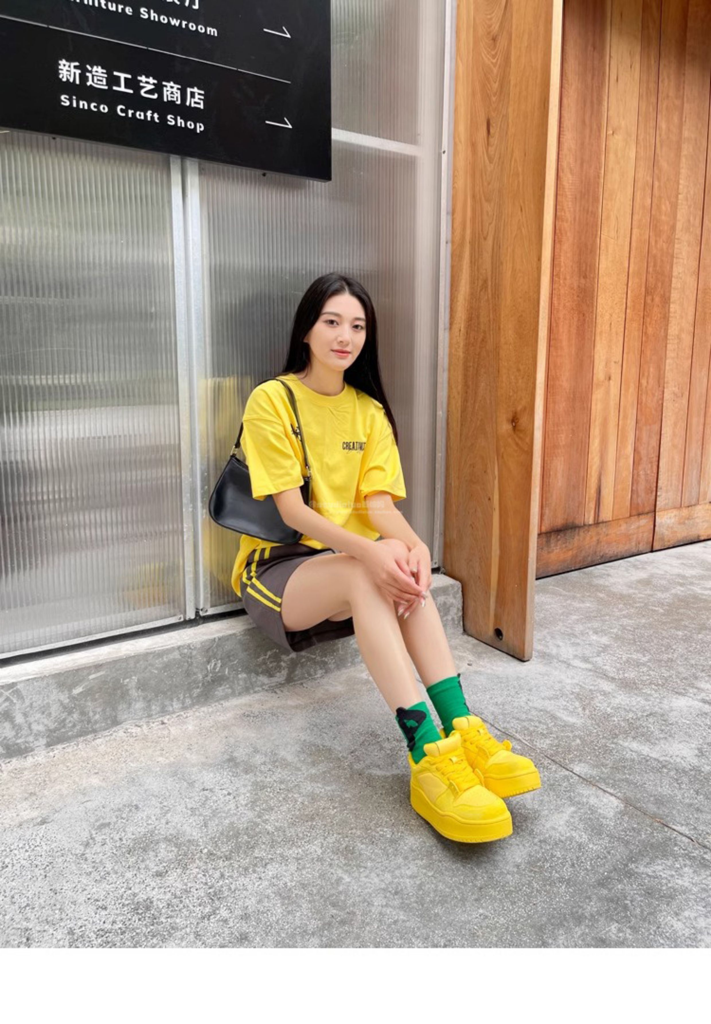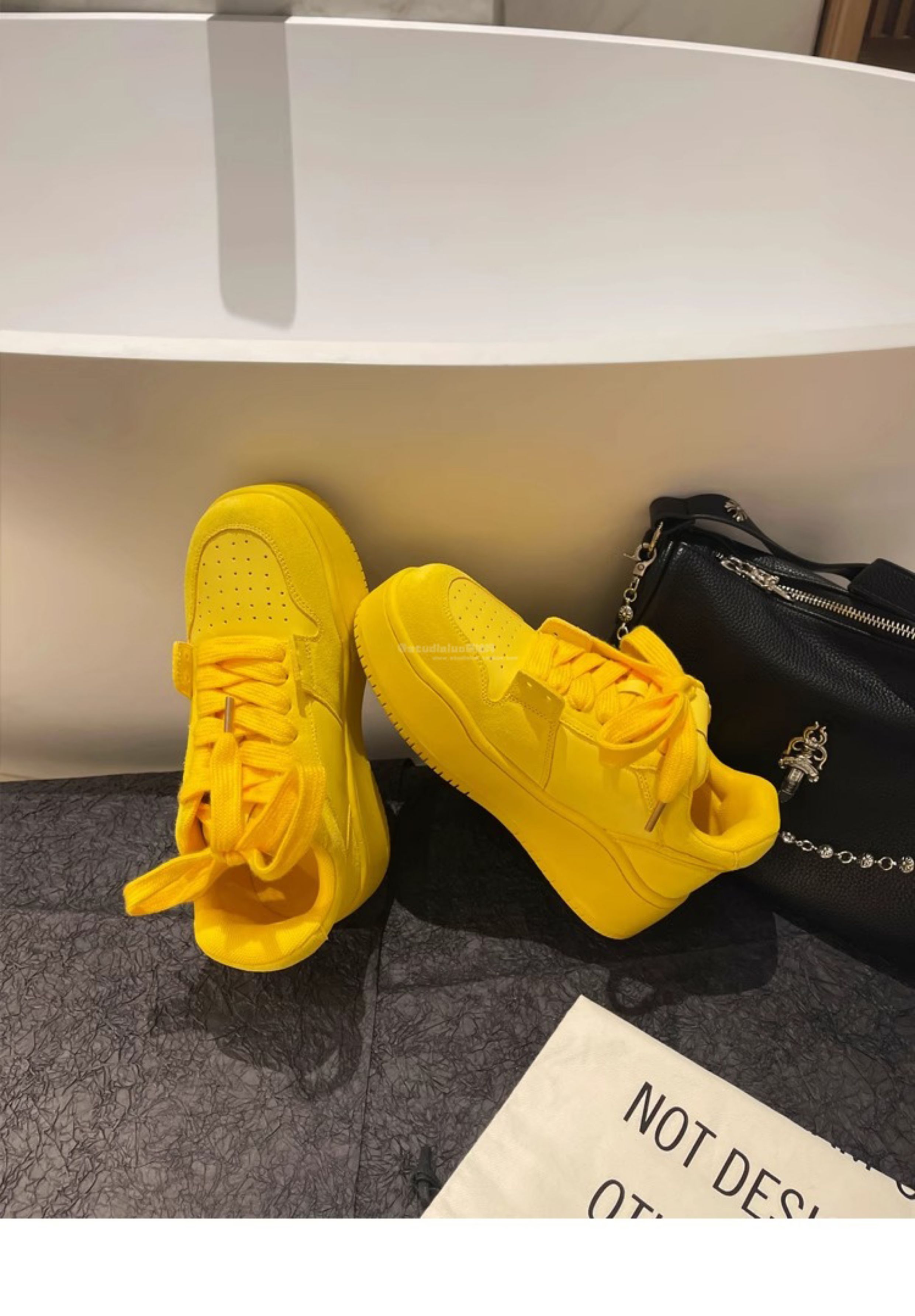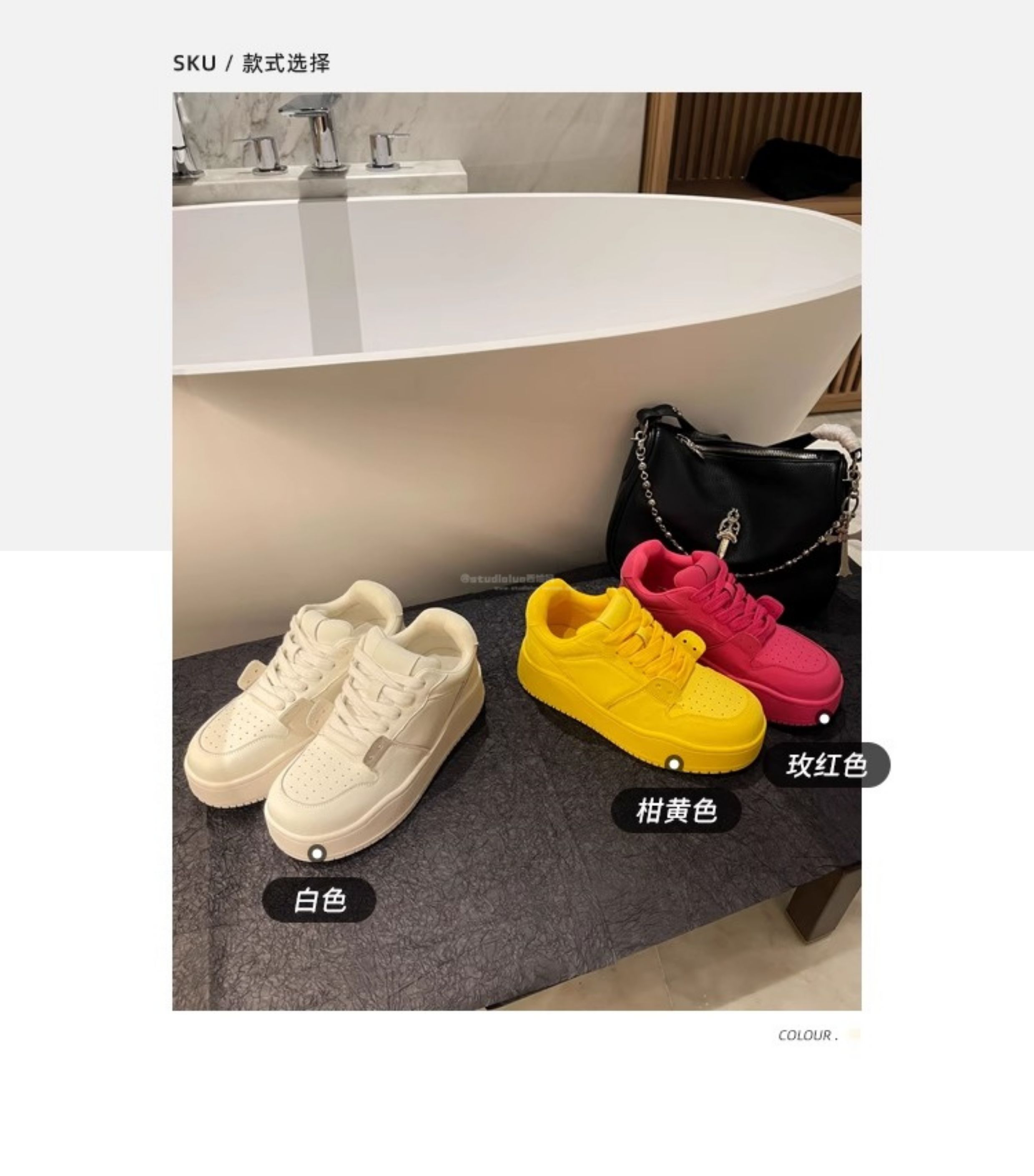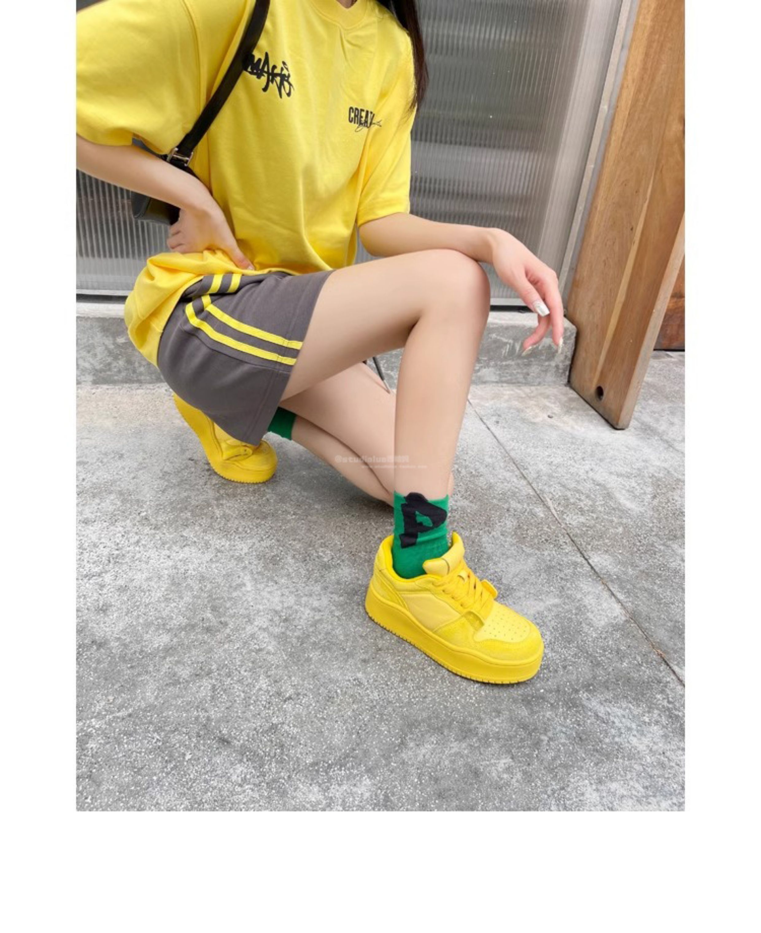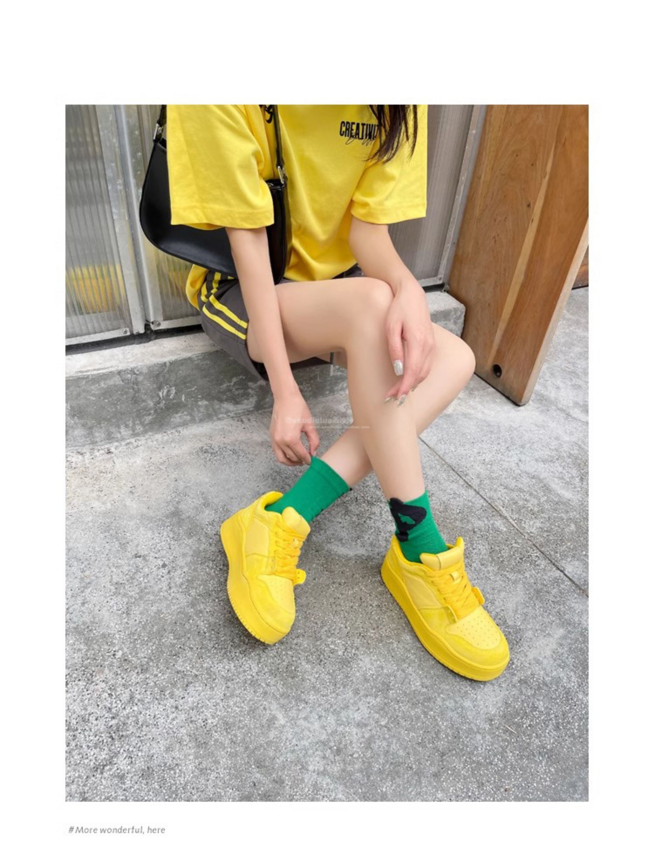 Hong Kong Genuine Leather Yellow Height-Increasing Sneakers for Women 2025 Spring and Summer New Thick-Soled Platform Loafers Casual White Shoes