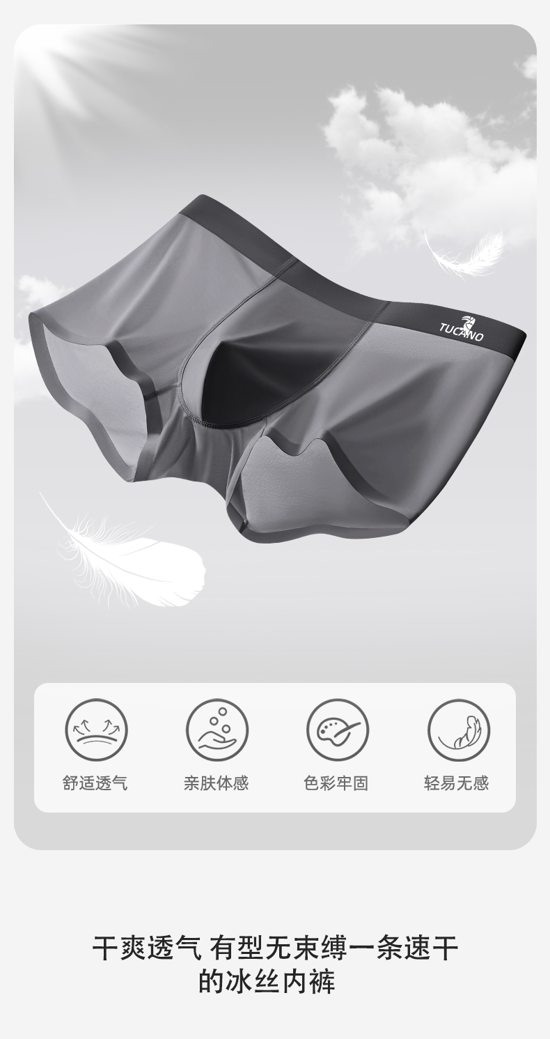 Men's Ice Silk Underwear Boys' 2025 Autumn Antibacterial Casual Boxer Briefs Sports Seamless Men's Boxer Shorts