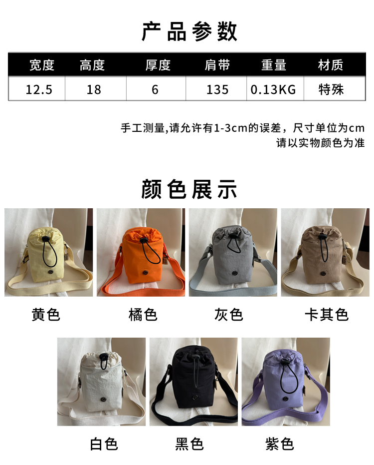 Summer Simple and Lightweight Nylon Bucket Small Bag for Women 2025 New Crossbody Bag Water Bottle Cup Phone Bag