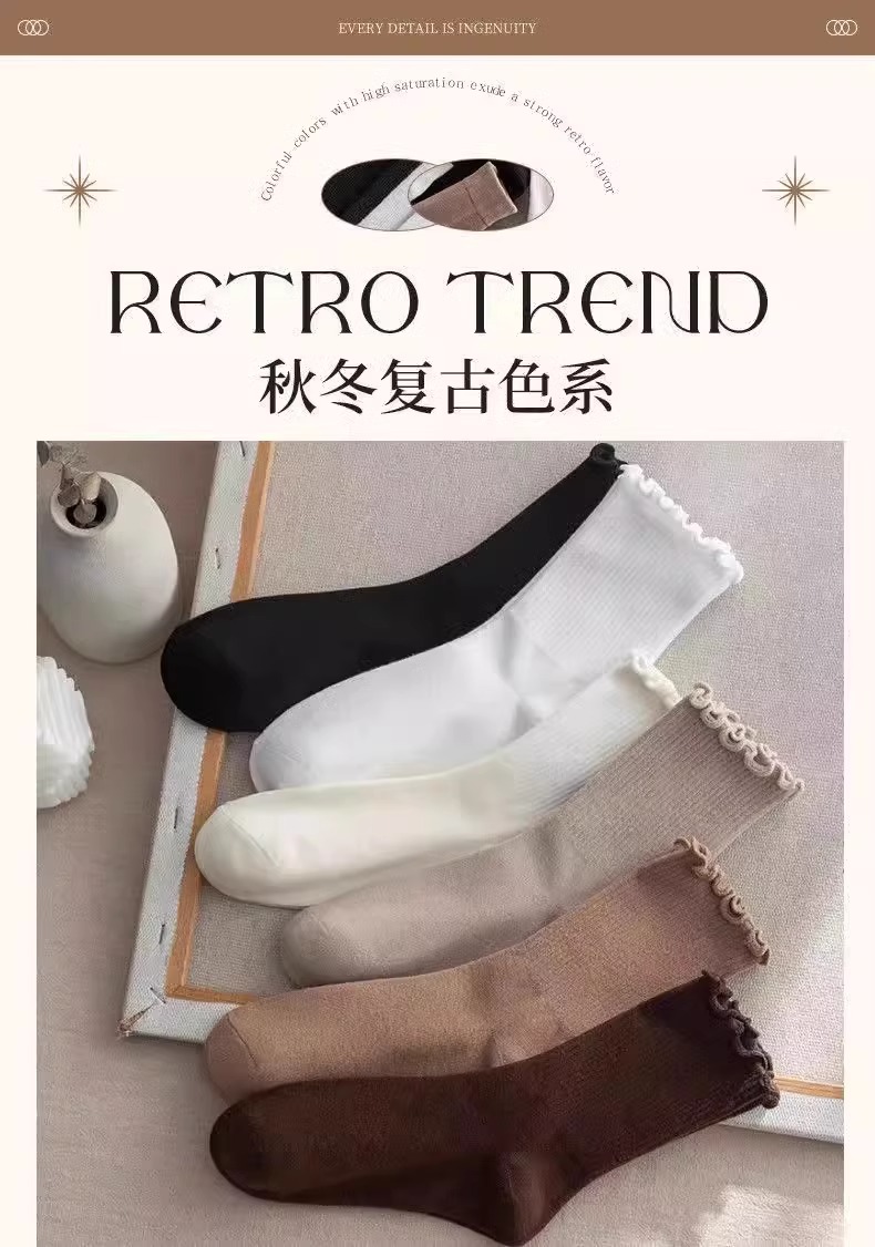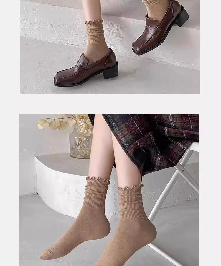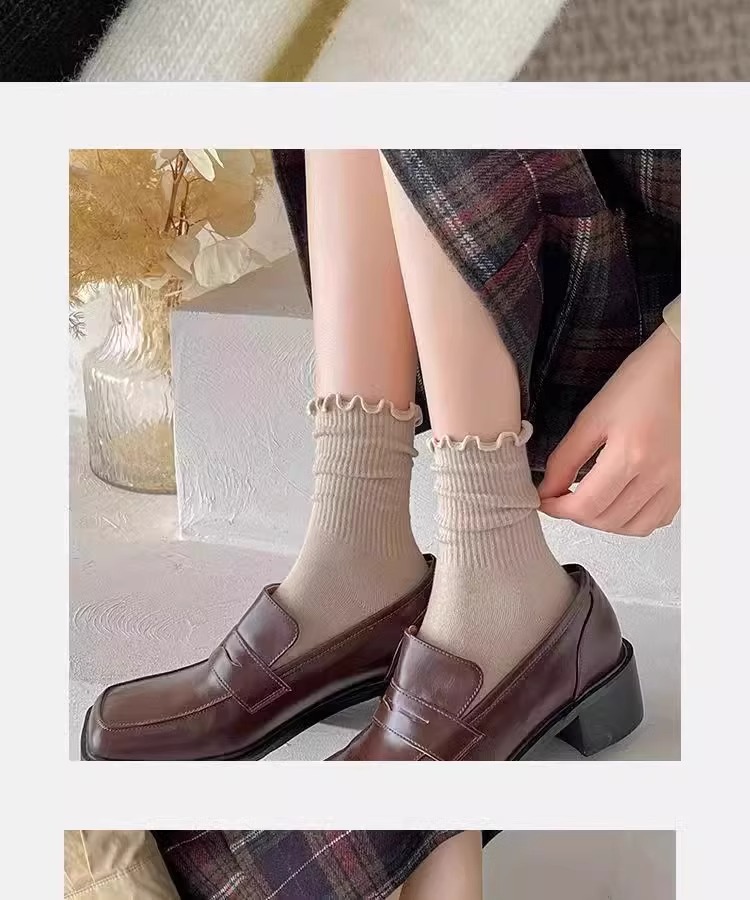 Spring and Autumn Lace Ruffle Jk Socks for Women, Mid-Calf, Spring and Autumn Loli White Style, Atmospheric Japanese Style Slouch Socks for Girls