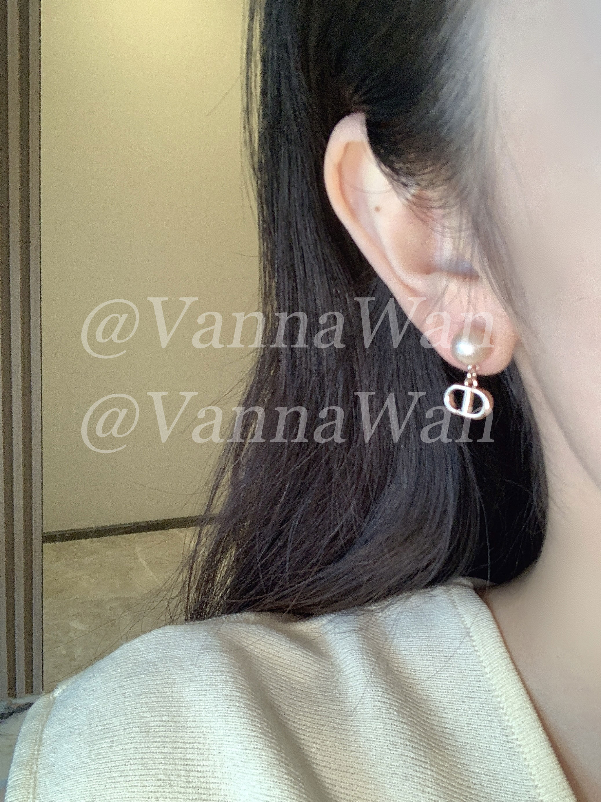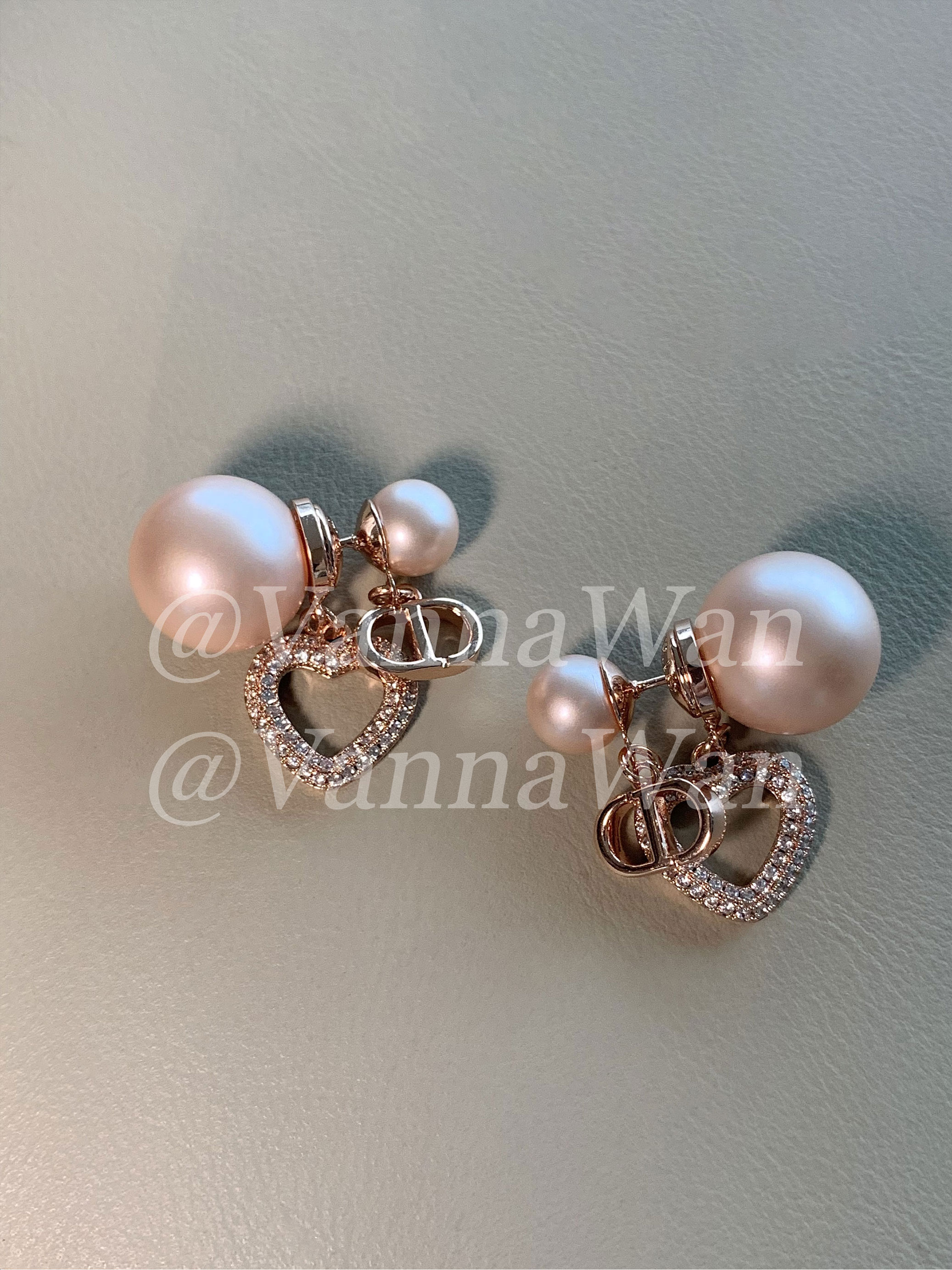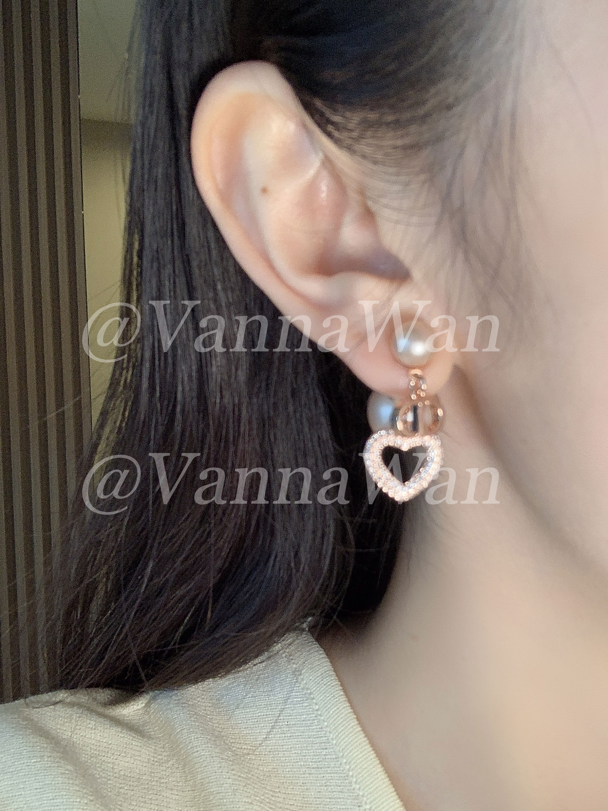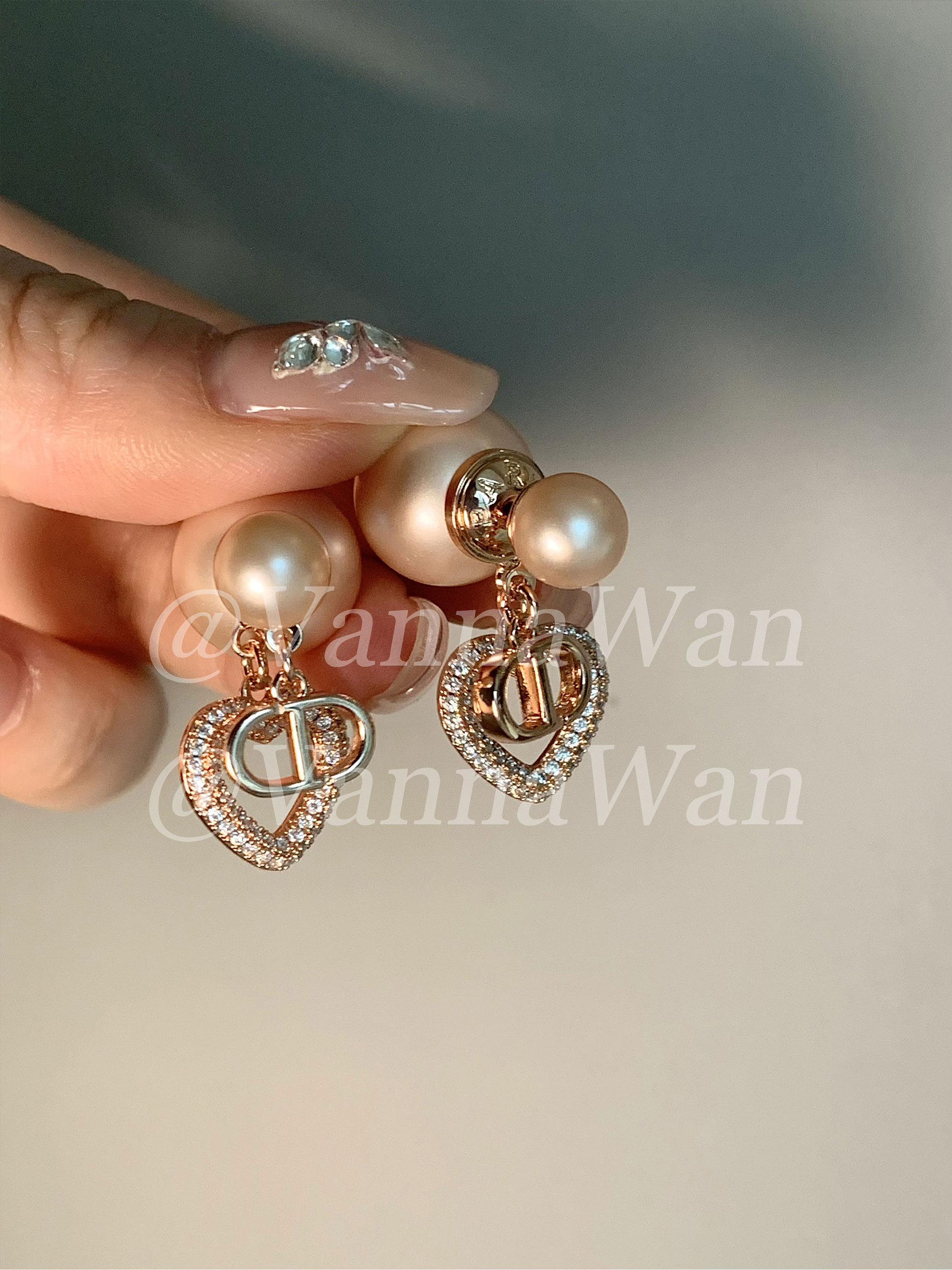 Vanwan Buyer Edition! D! Front and Back Pink Bead Earrings with Pig Nose Rhinestone Heart Pendant, High-End Cd Earrings