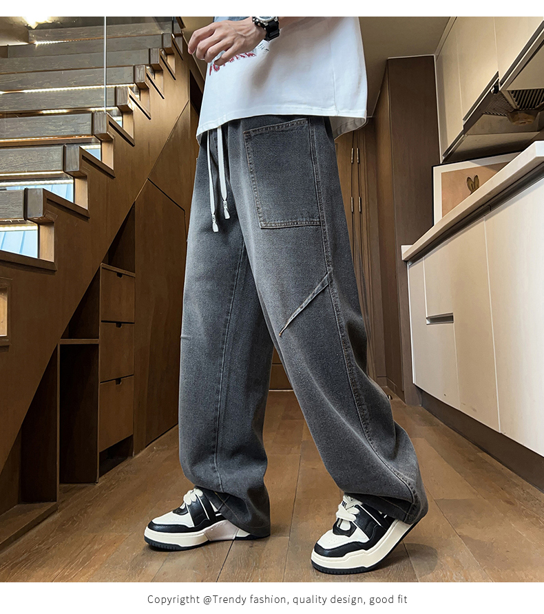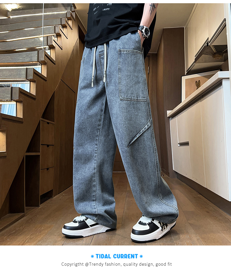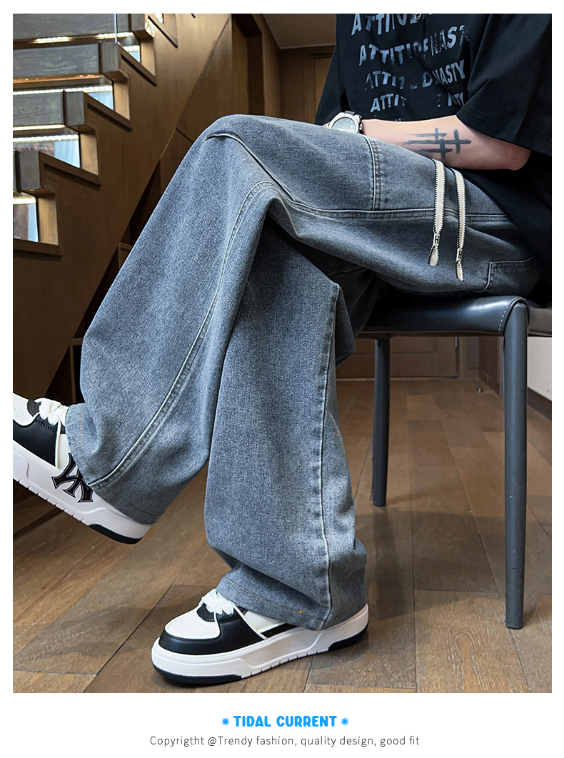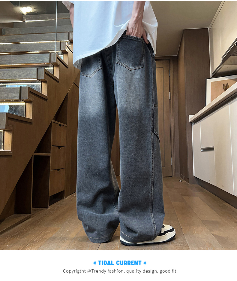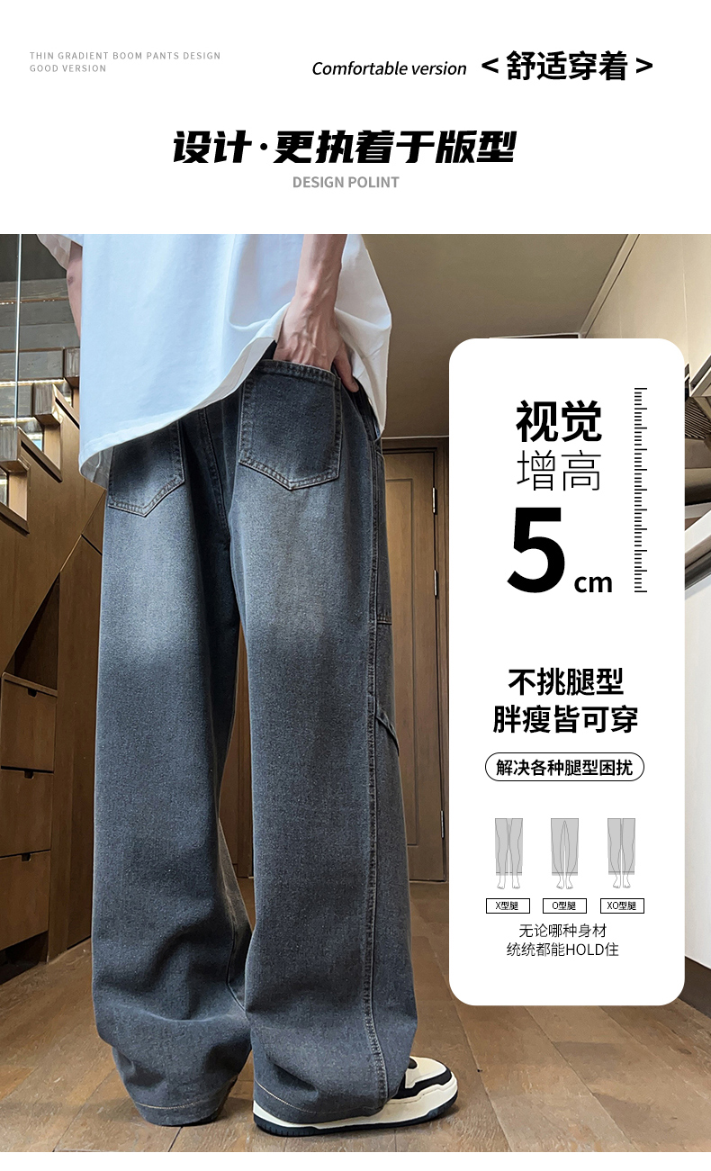American-Style Straight-Leg Jeans for Men, Summer Thin Style, Trendy Brand, Cool and Handsome, for Teenagers, Middle and High School Students, Casual Long Pants