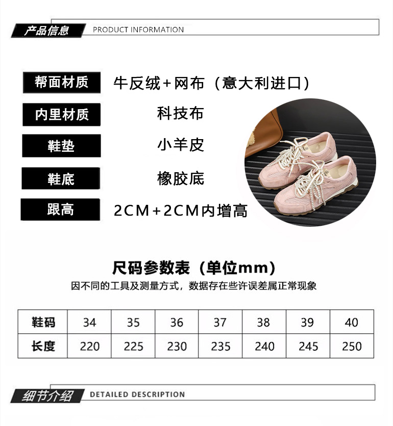 Hong Kong Mesh Breathable Thick-Soled Height-Increasing German Training Shoes for Women 2025 Spring and Summer New Casual Sports Comfortable Running Shoes