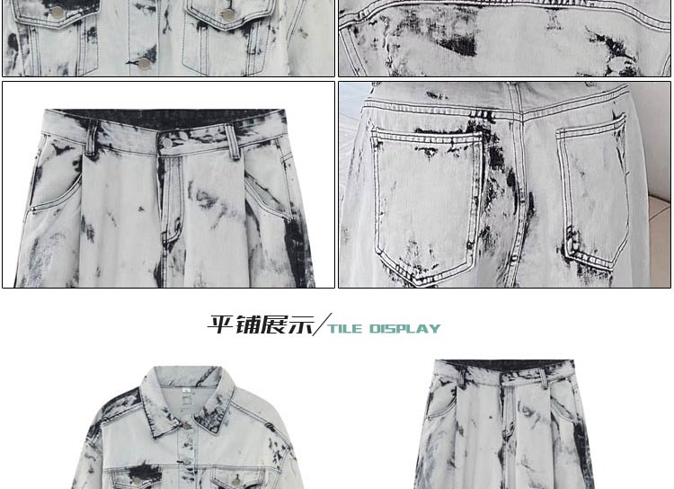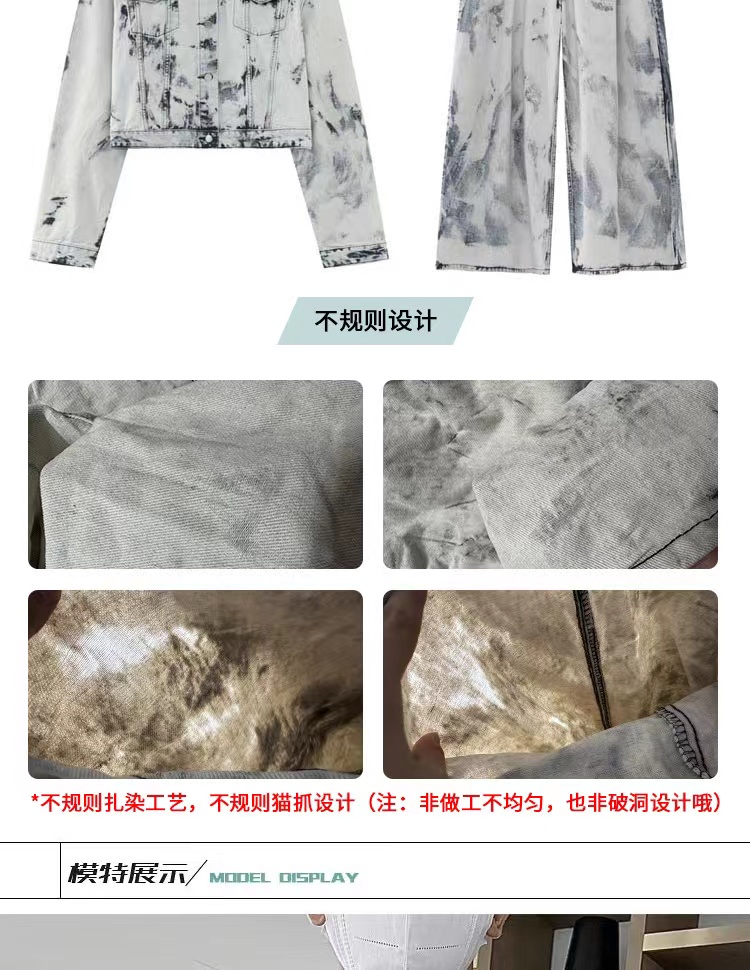Stylish Men's Retro Tie-Dye American Casual Suit, Loose and Cool Denim Jacket, Trendy Wide-Leg Denim Pants for Men