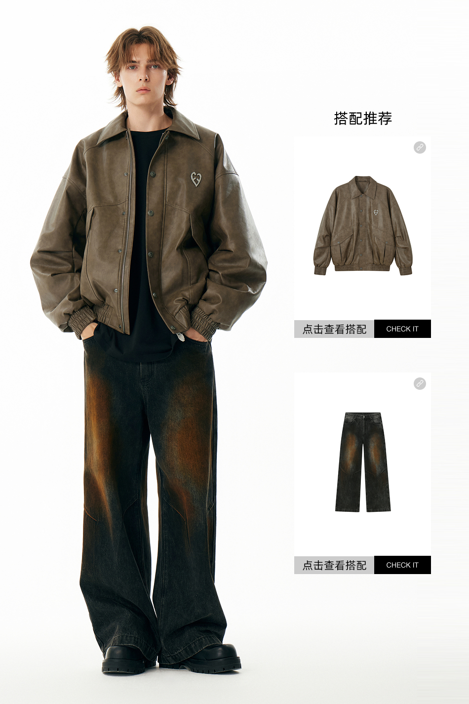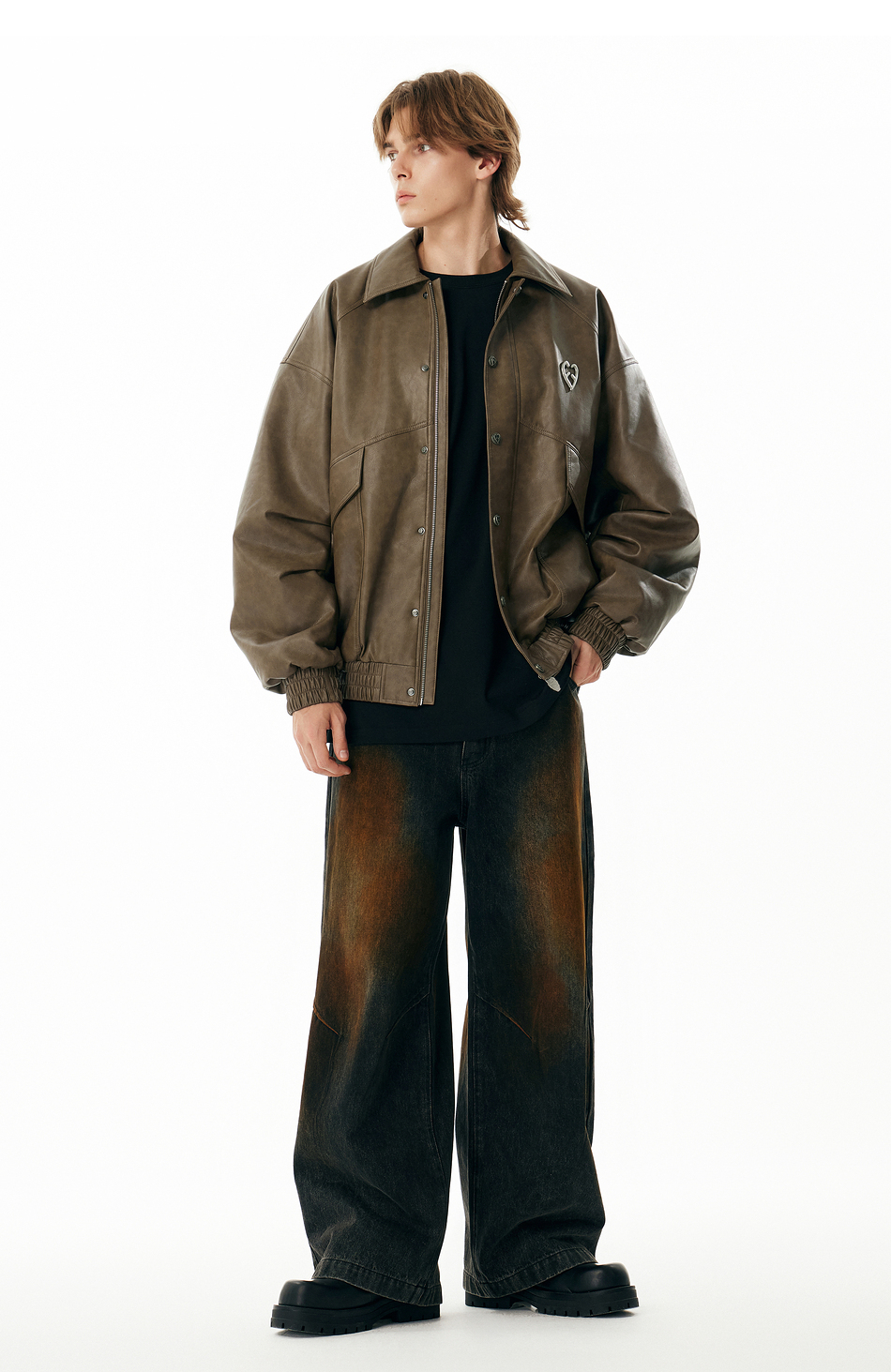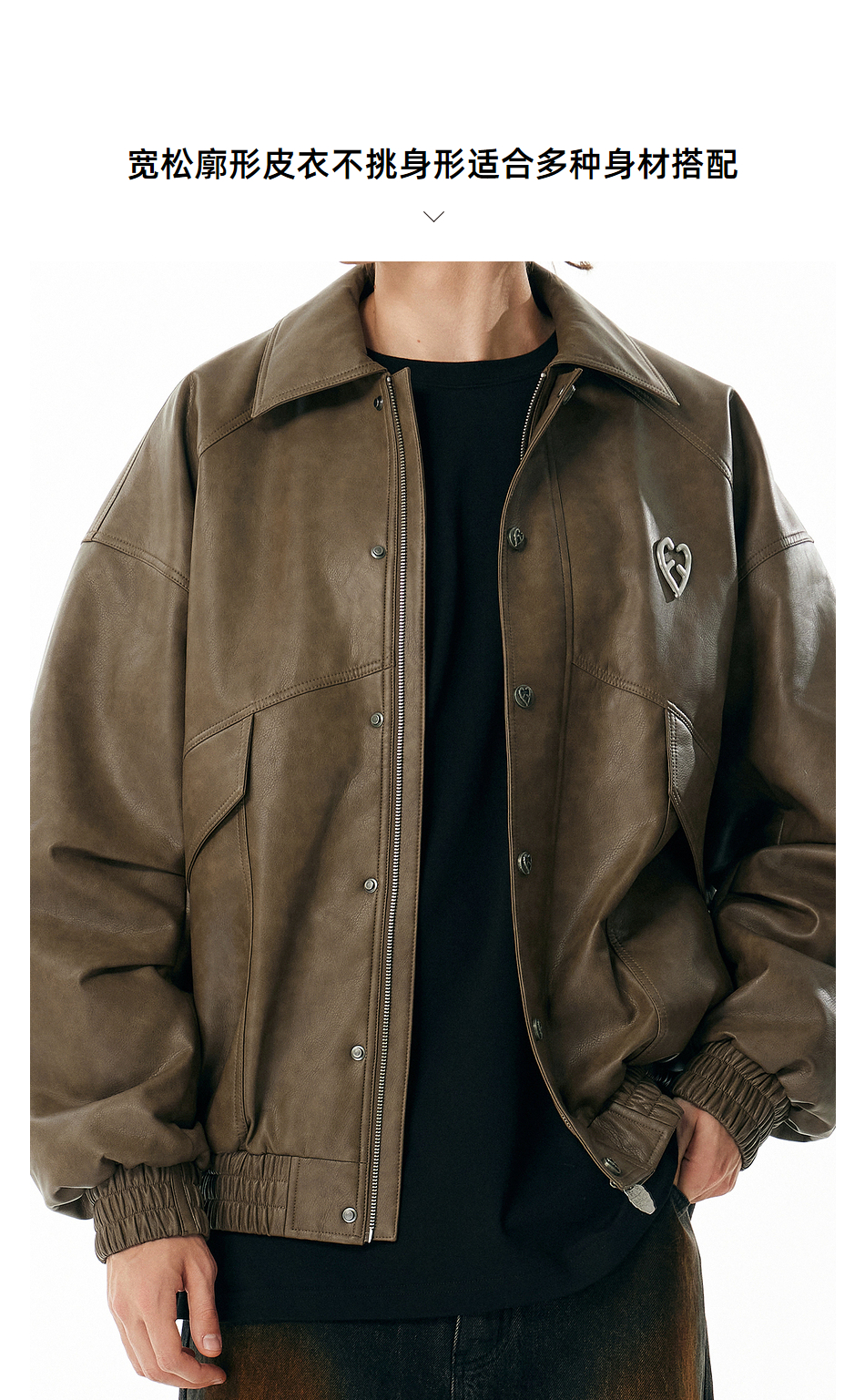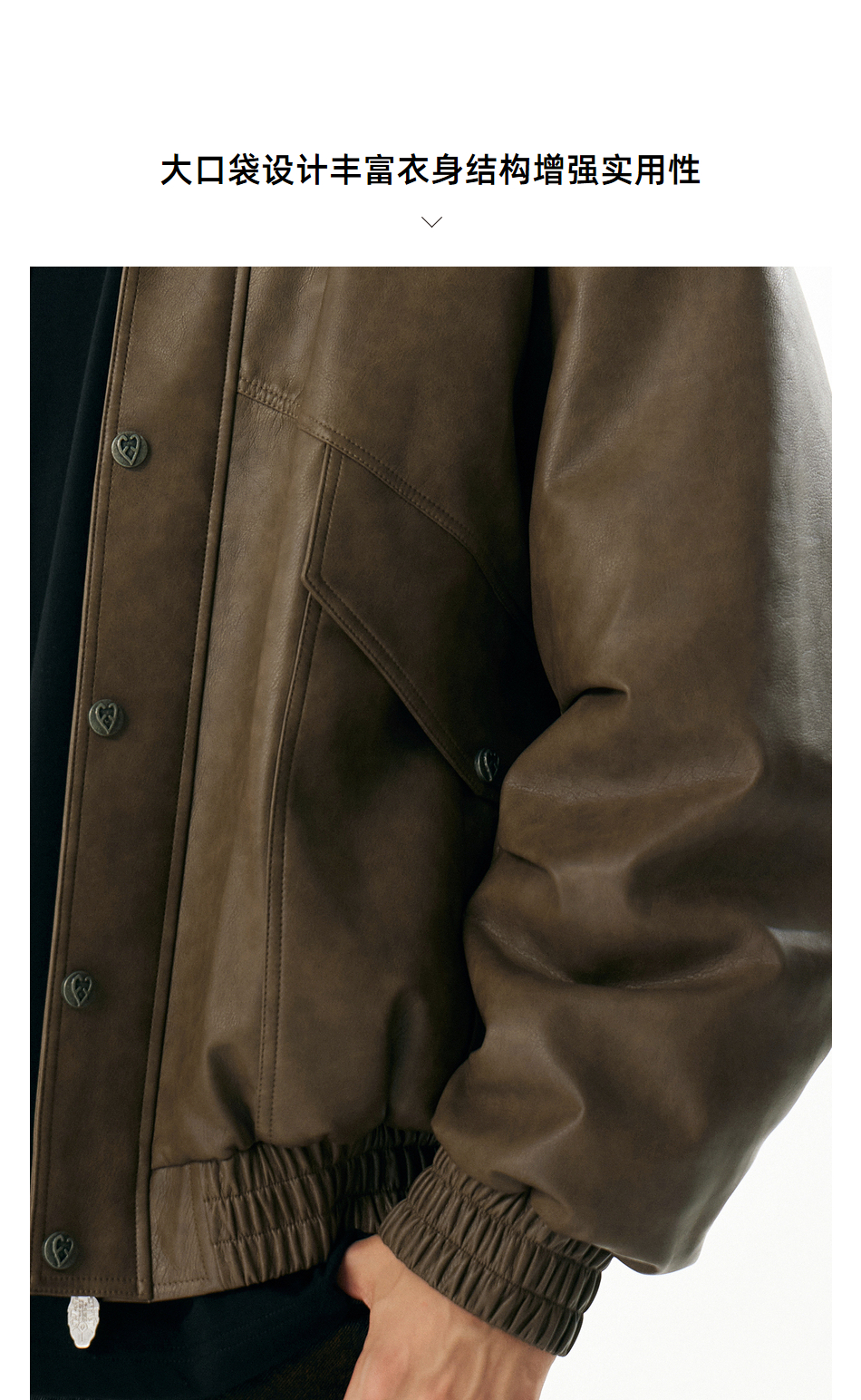 【Inxx】Apyd American Retro Large Pocket Silhouette Leather Jacket for Men, Distressed Loose Cotton Coat with Turn-Down Collar, Trendy Jacket