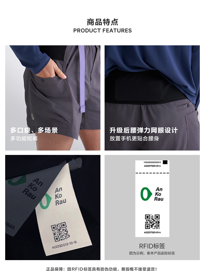 Women's New Summer Hiking and Running Lightweight Multi-Pocket Back Waist Pocket Shorts | Ankorau an Gao Ruo