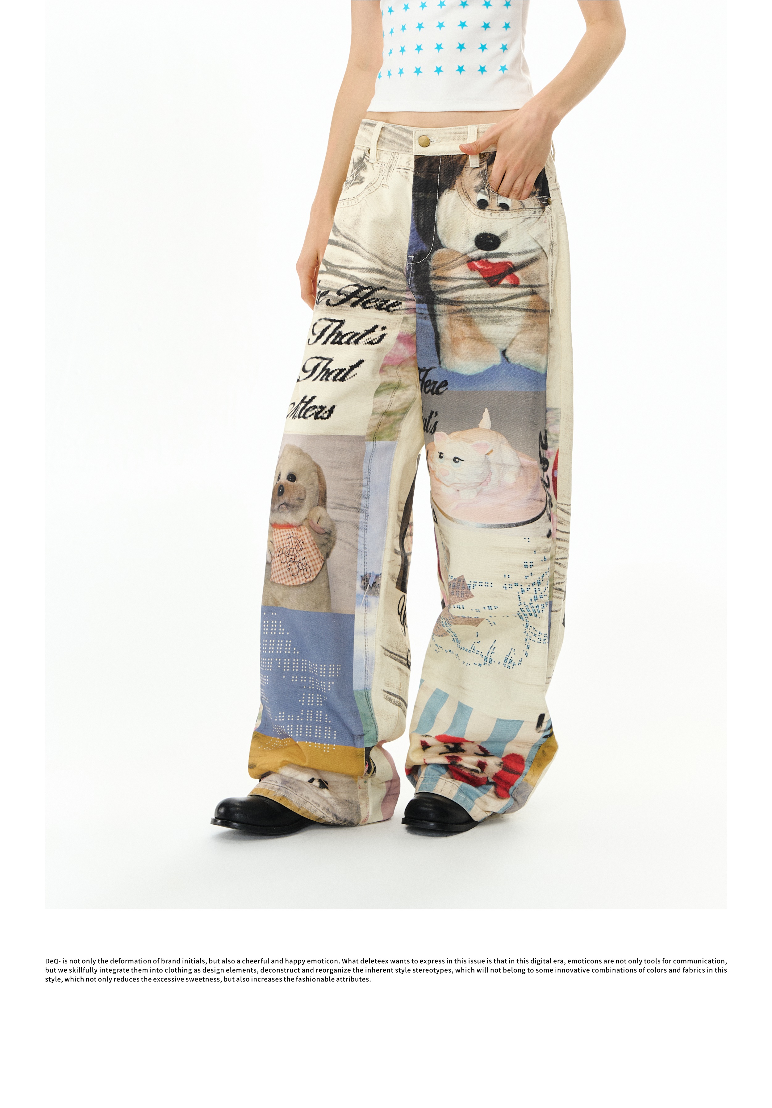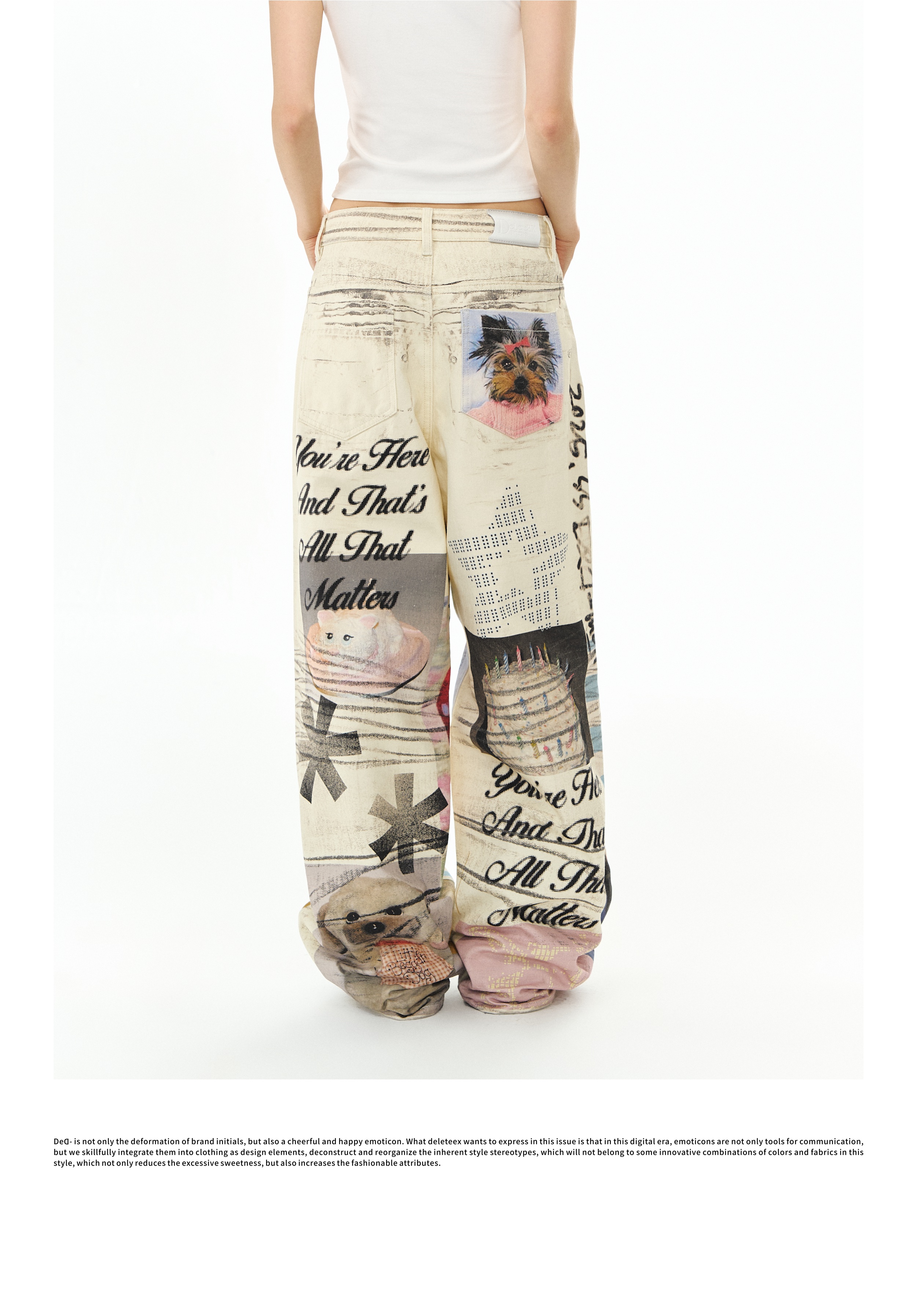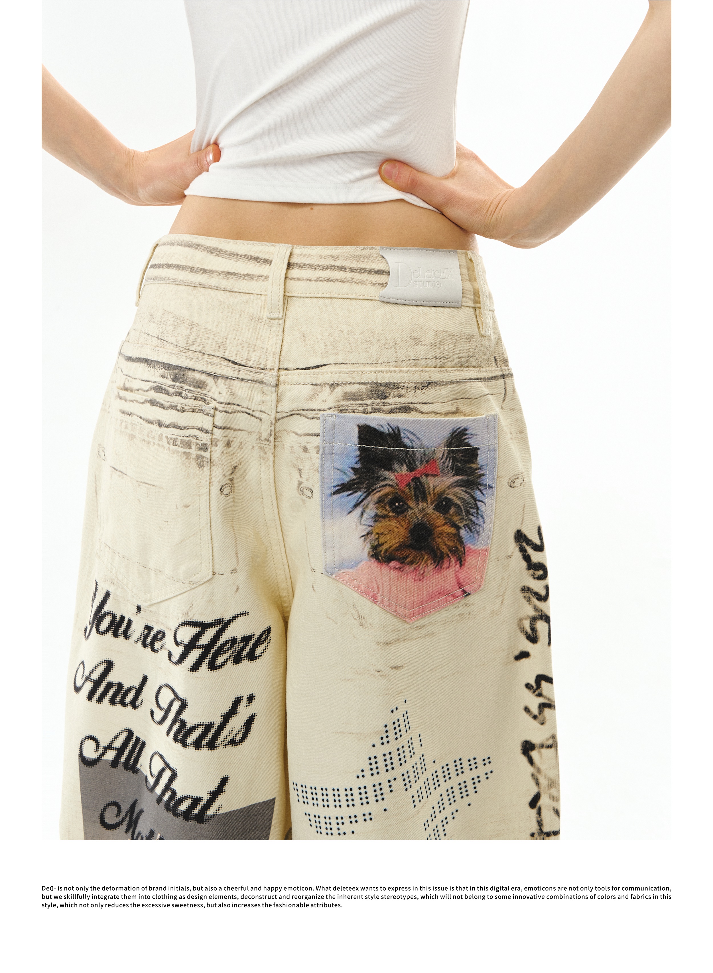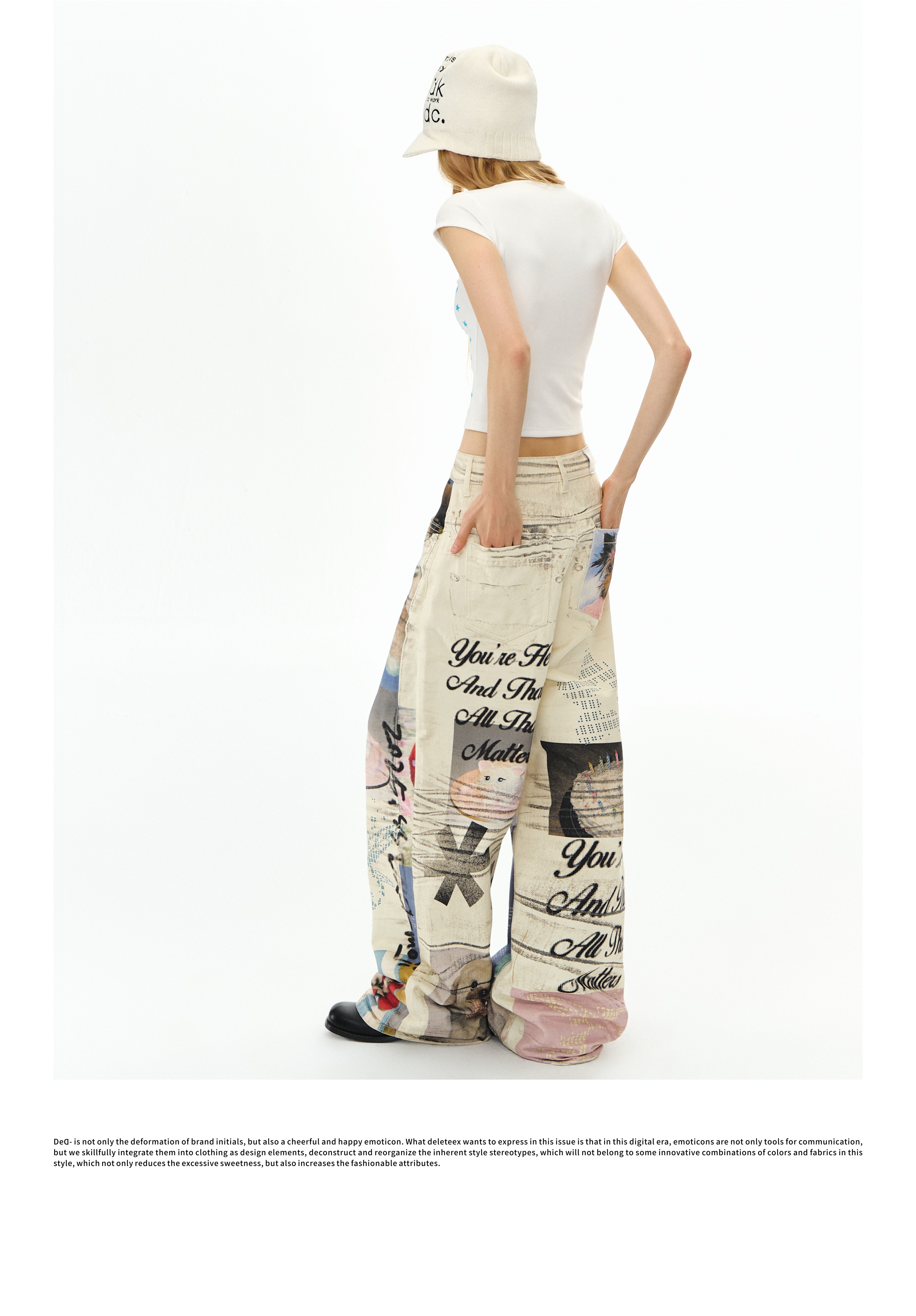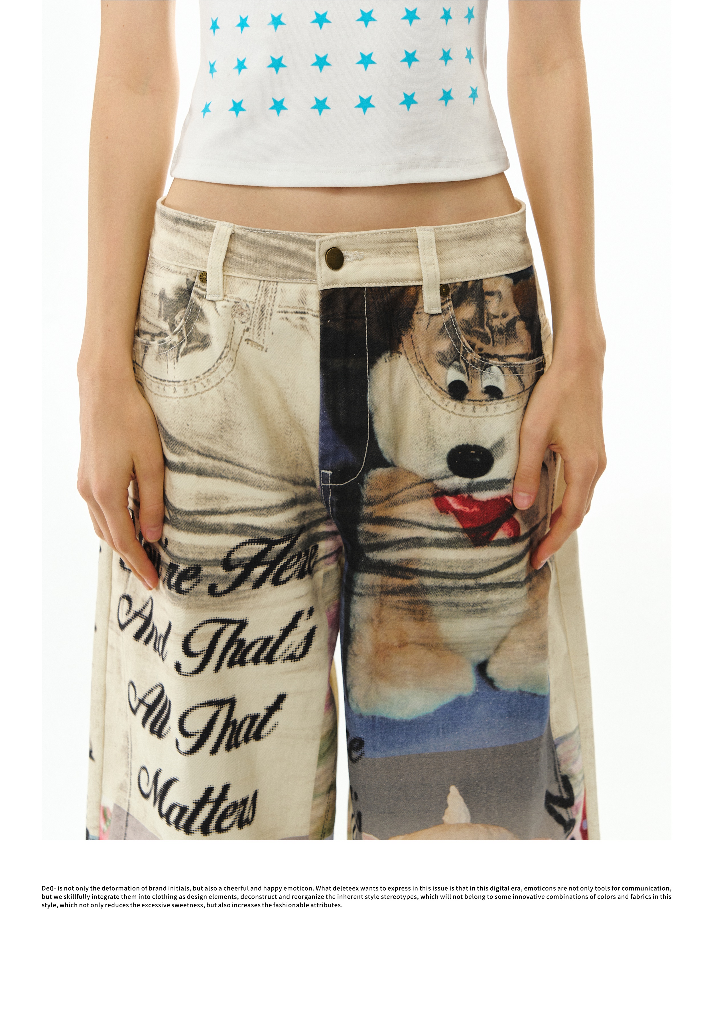 Deleteex Original Ded-Moji Series Module Image High-Definition Waterproof Washable Denim Print Wide-Leg Jeans