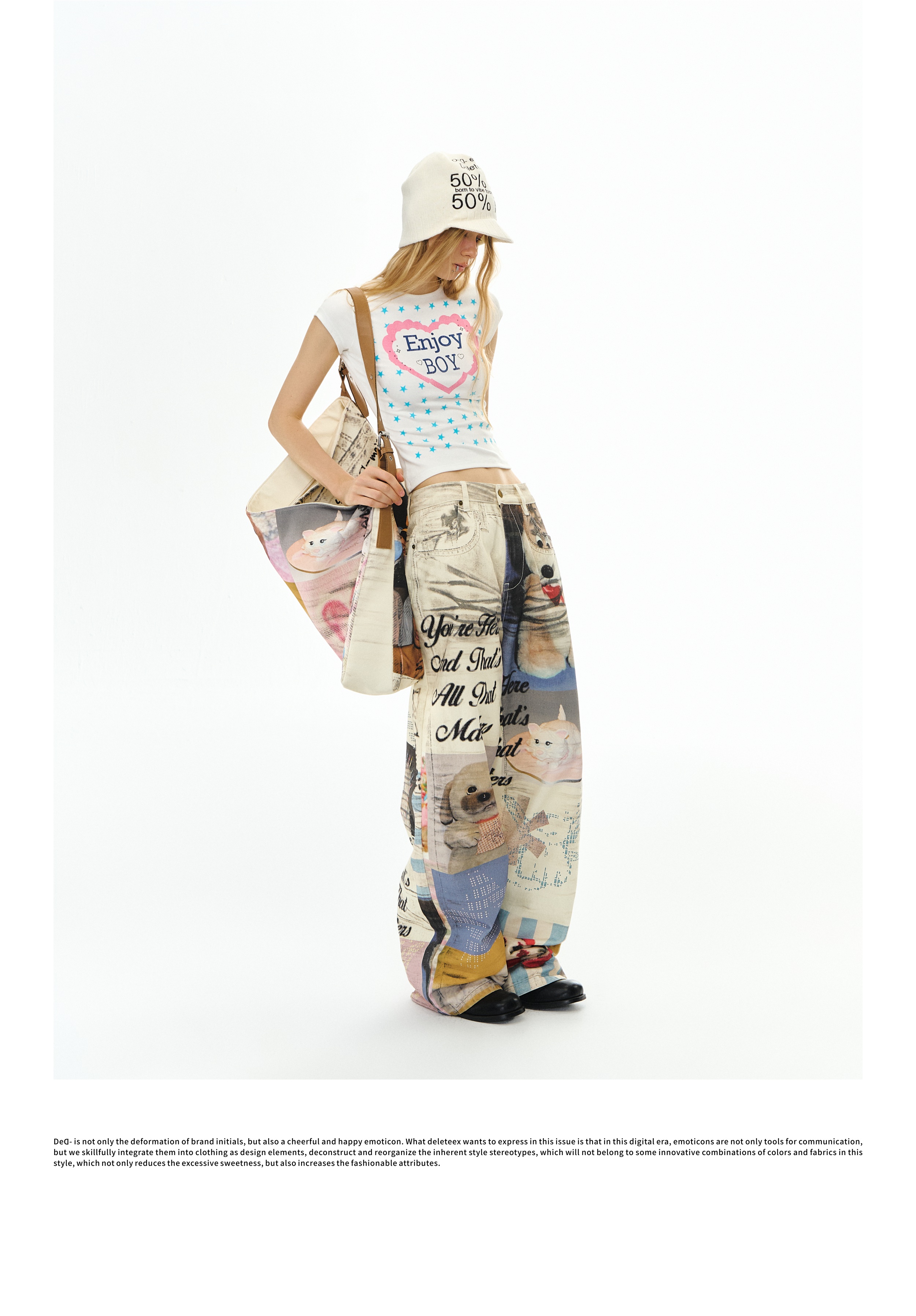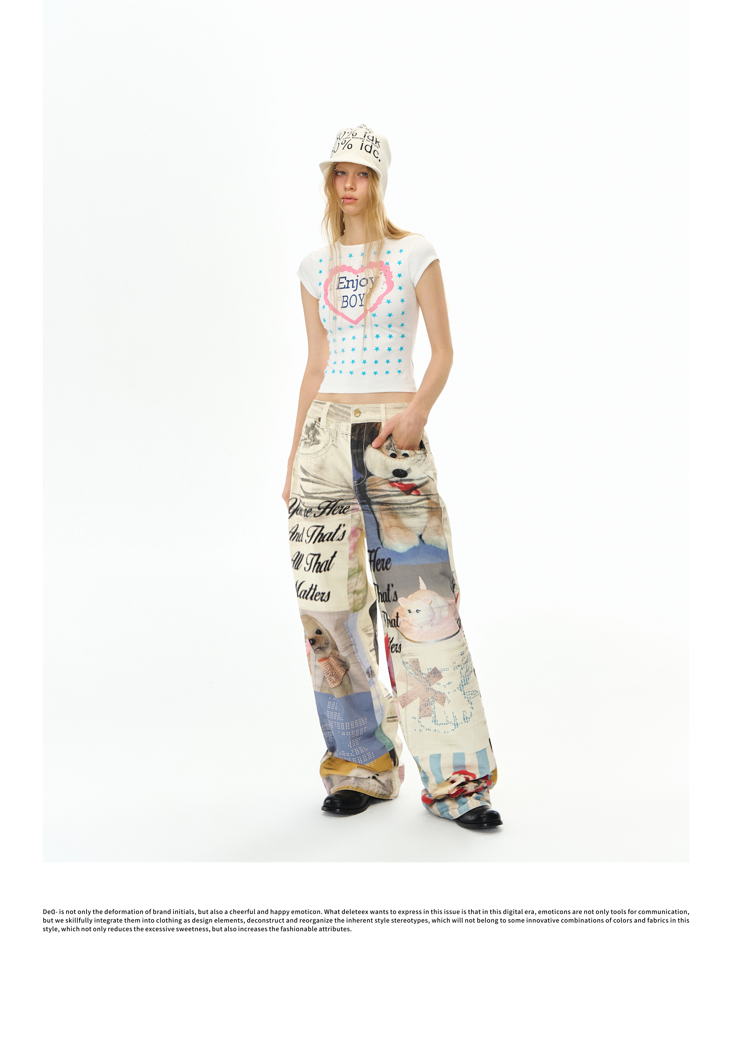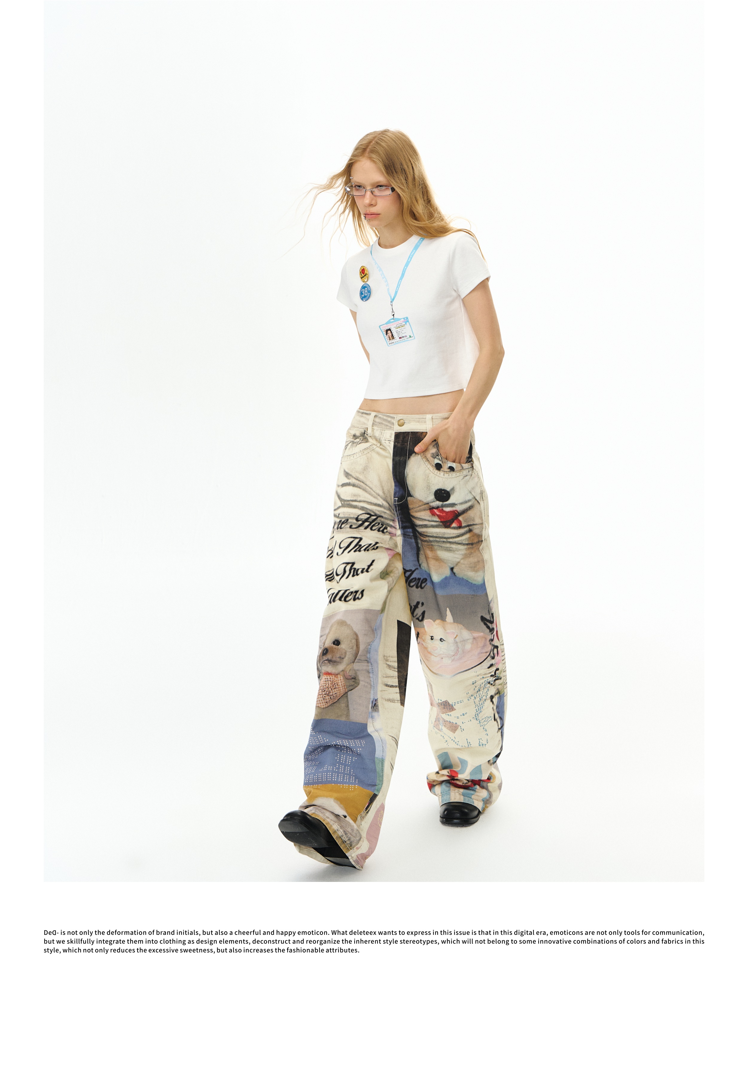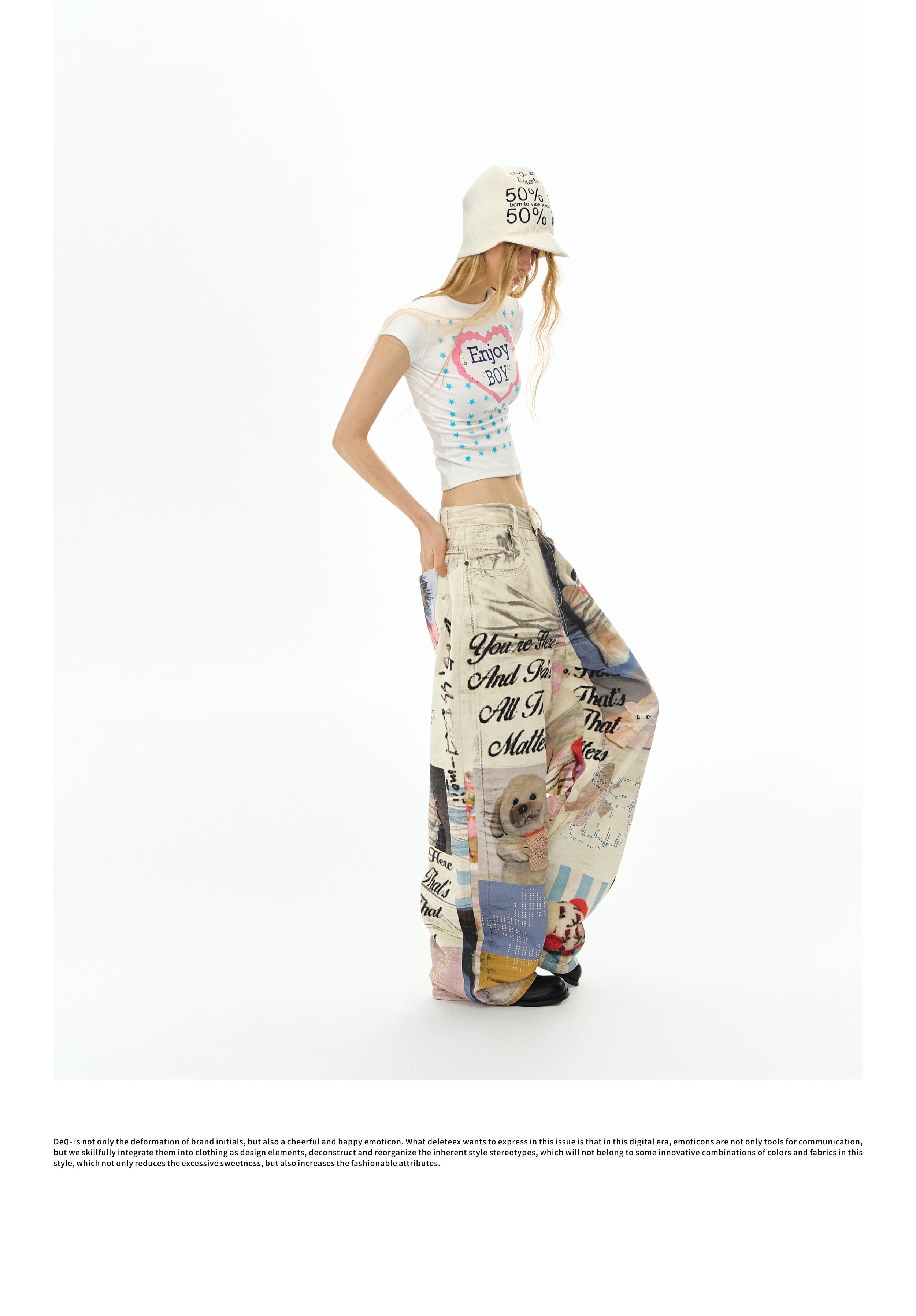Deleteex Original Ded-Moji Series Module Image High-Definition Waterproof Washable Denim Print Wide-Leg Jeans