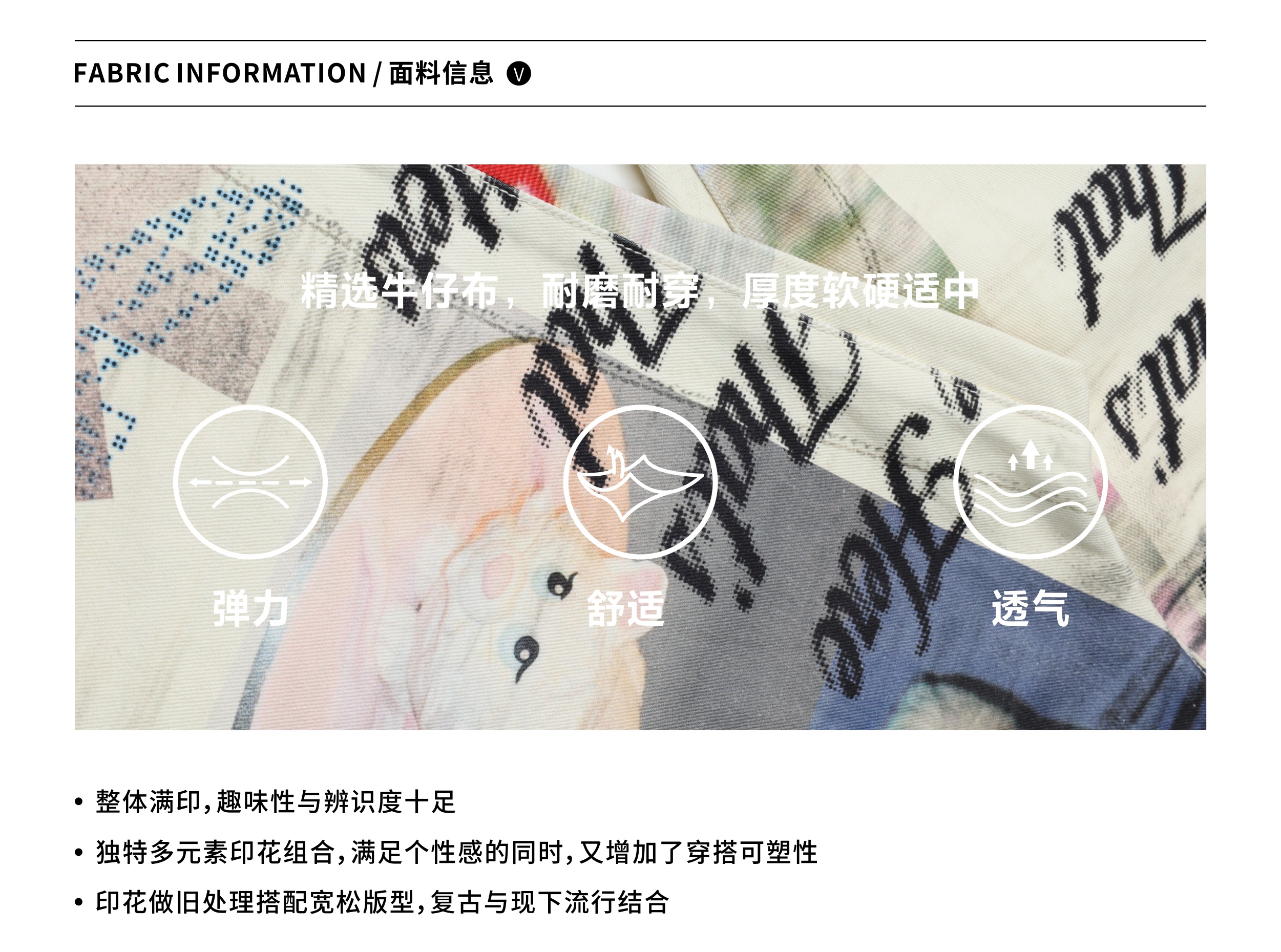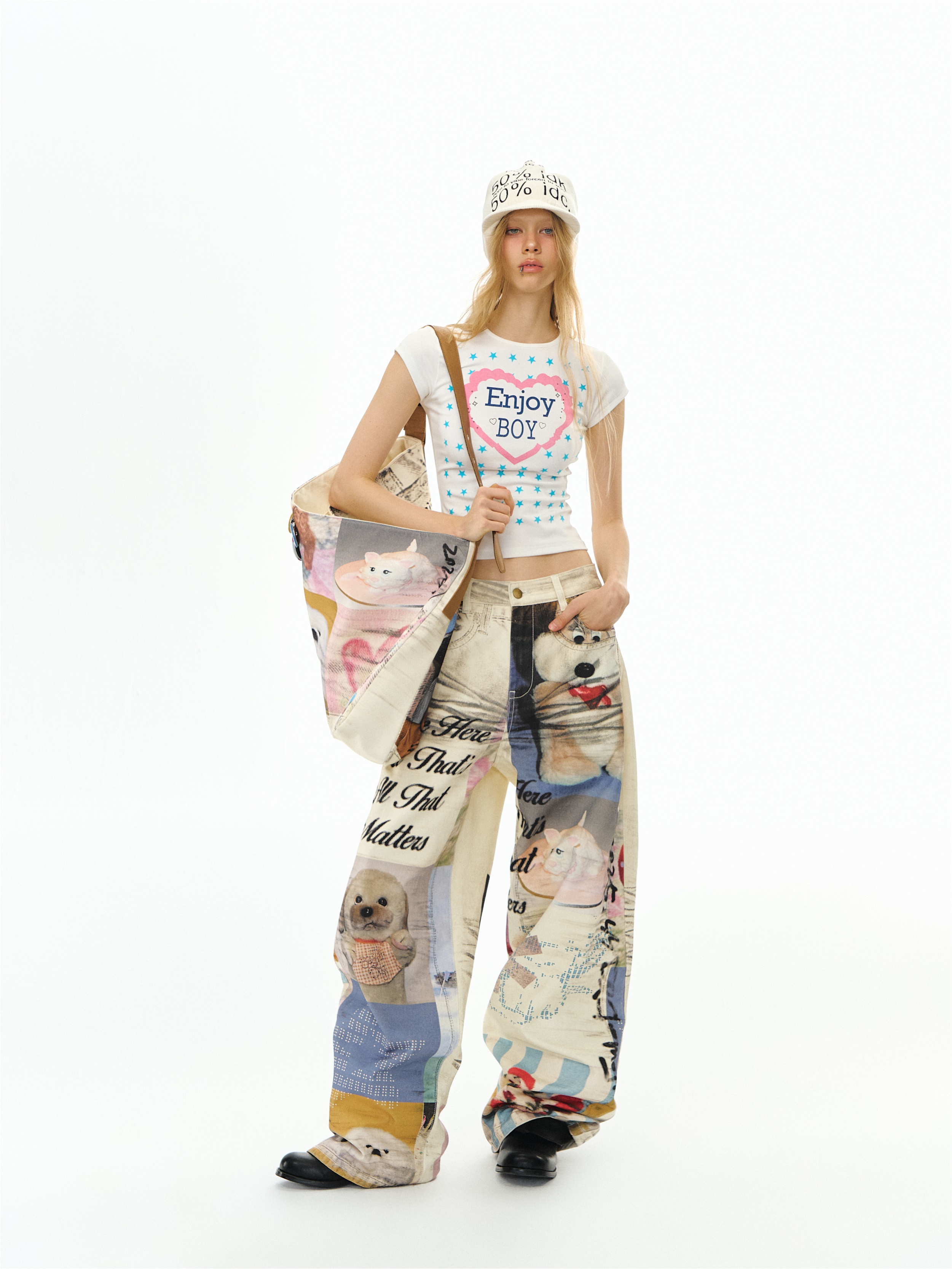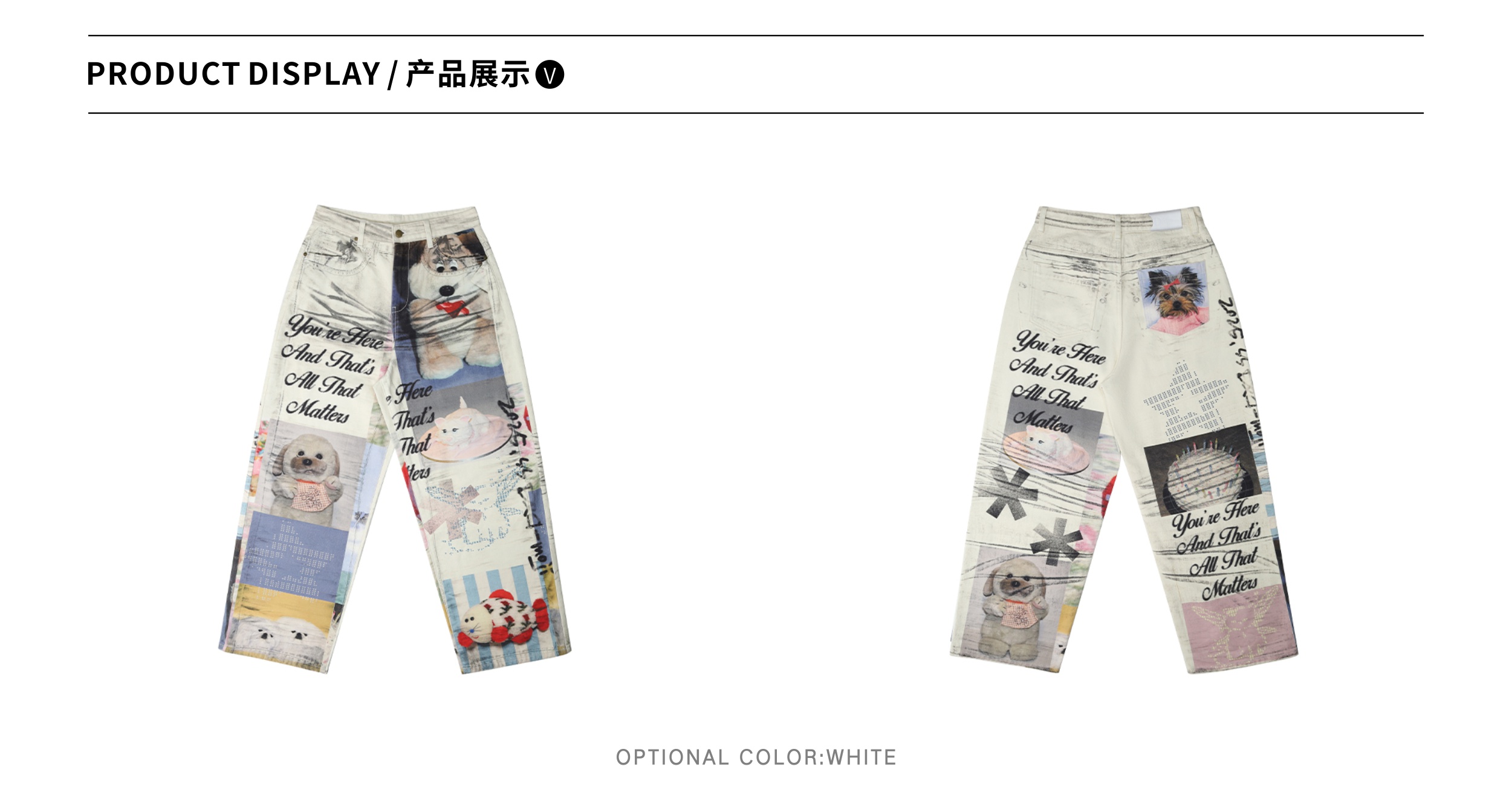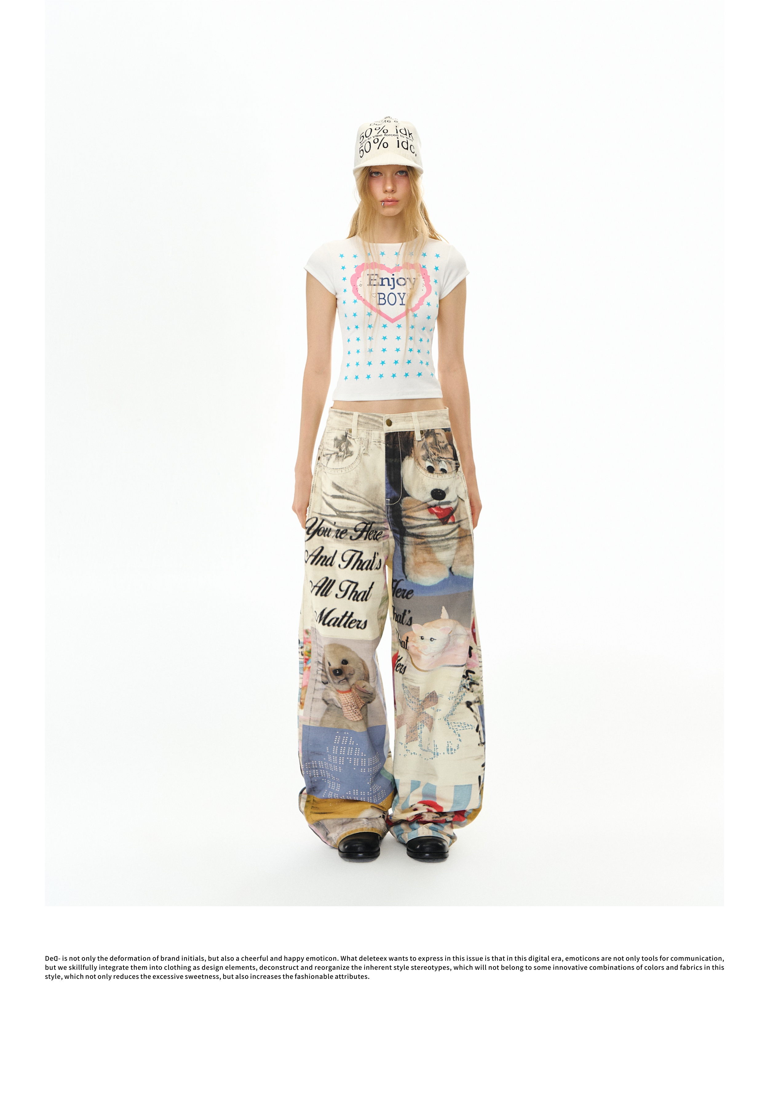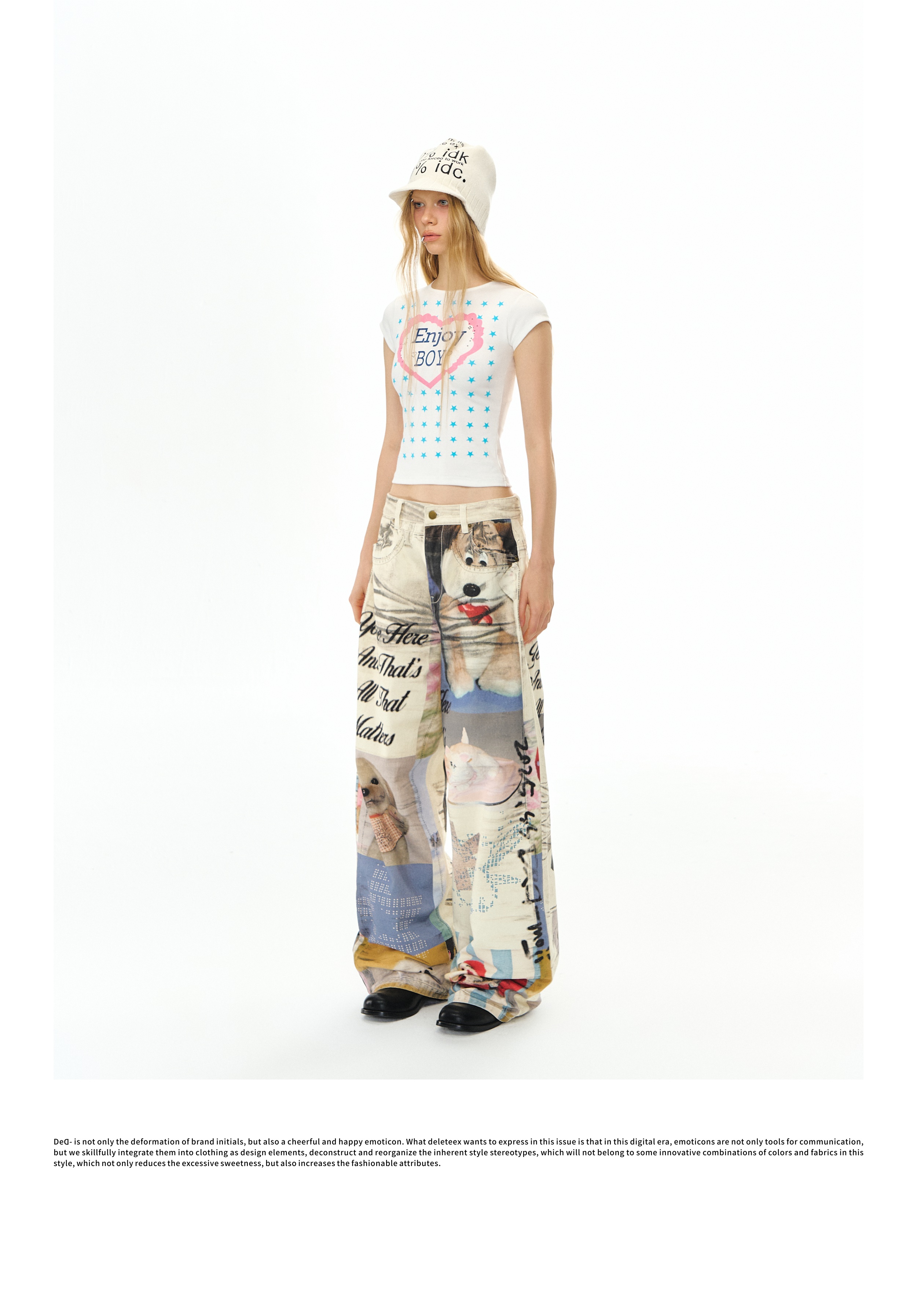 Deleteex Original Ded-Moji Series Module Image High-Definition Waterproof Washable Denim Print Wide-Leg Jeans