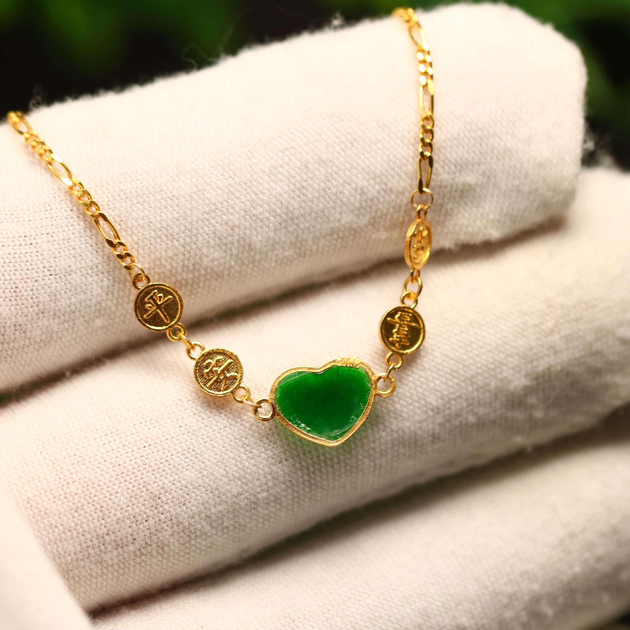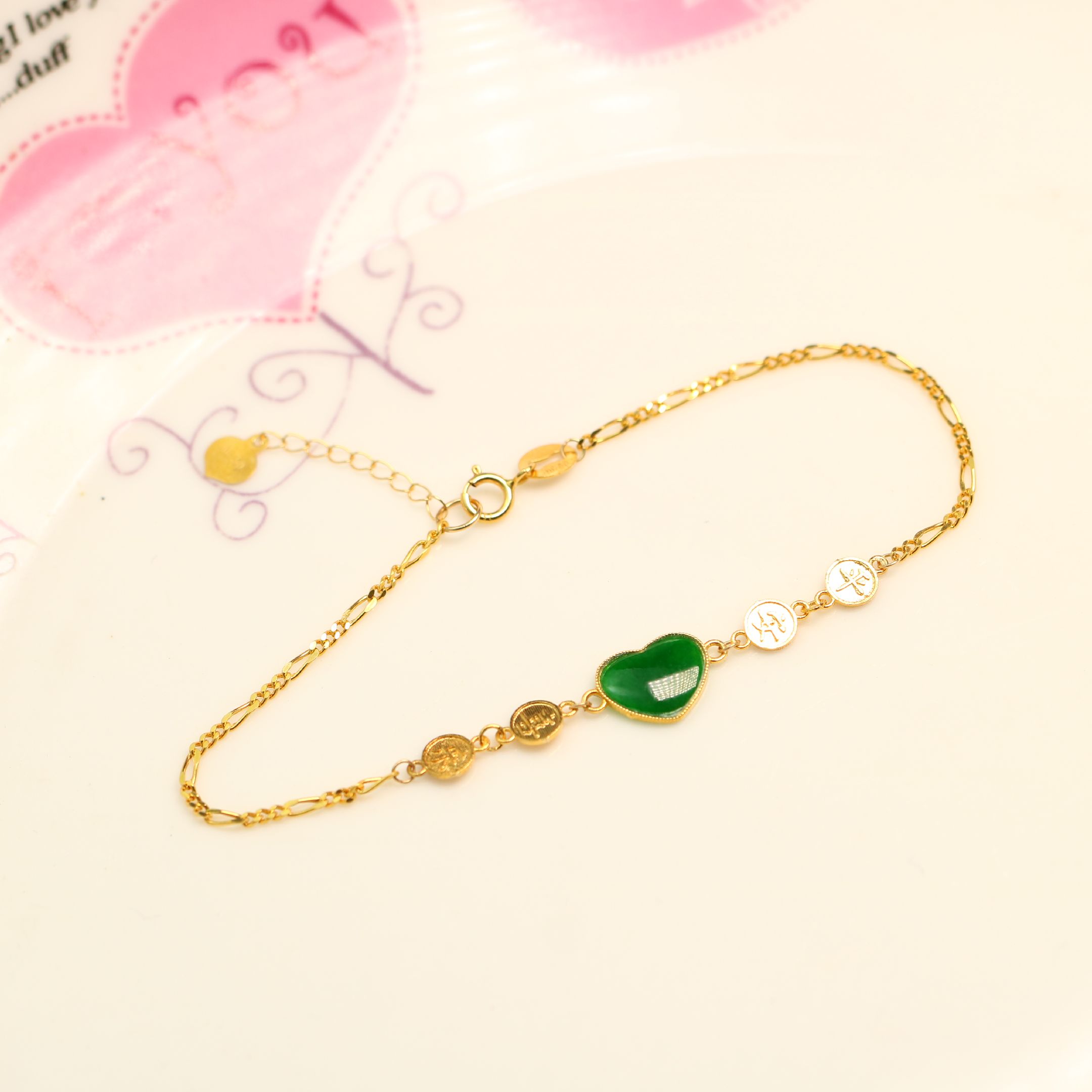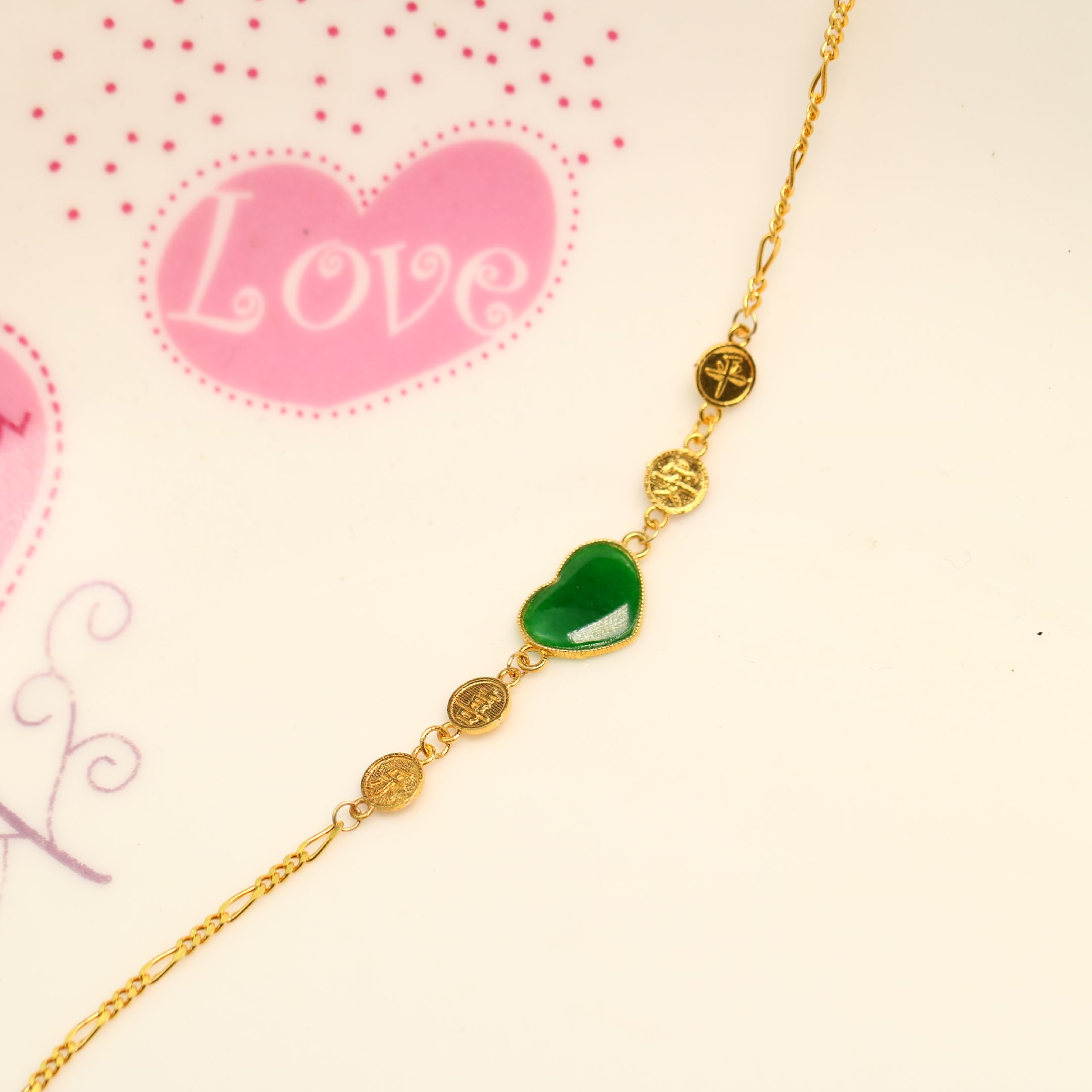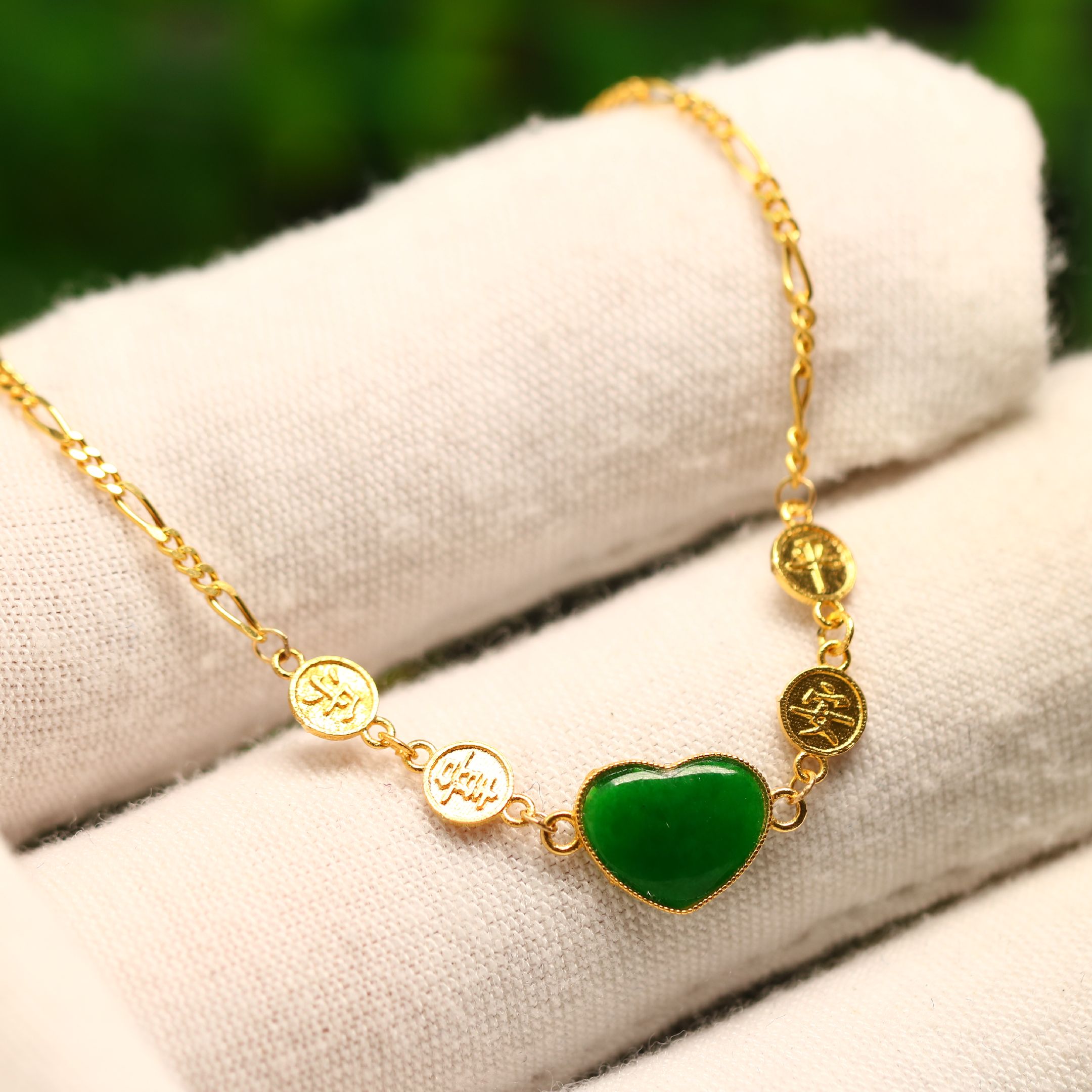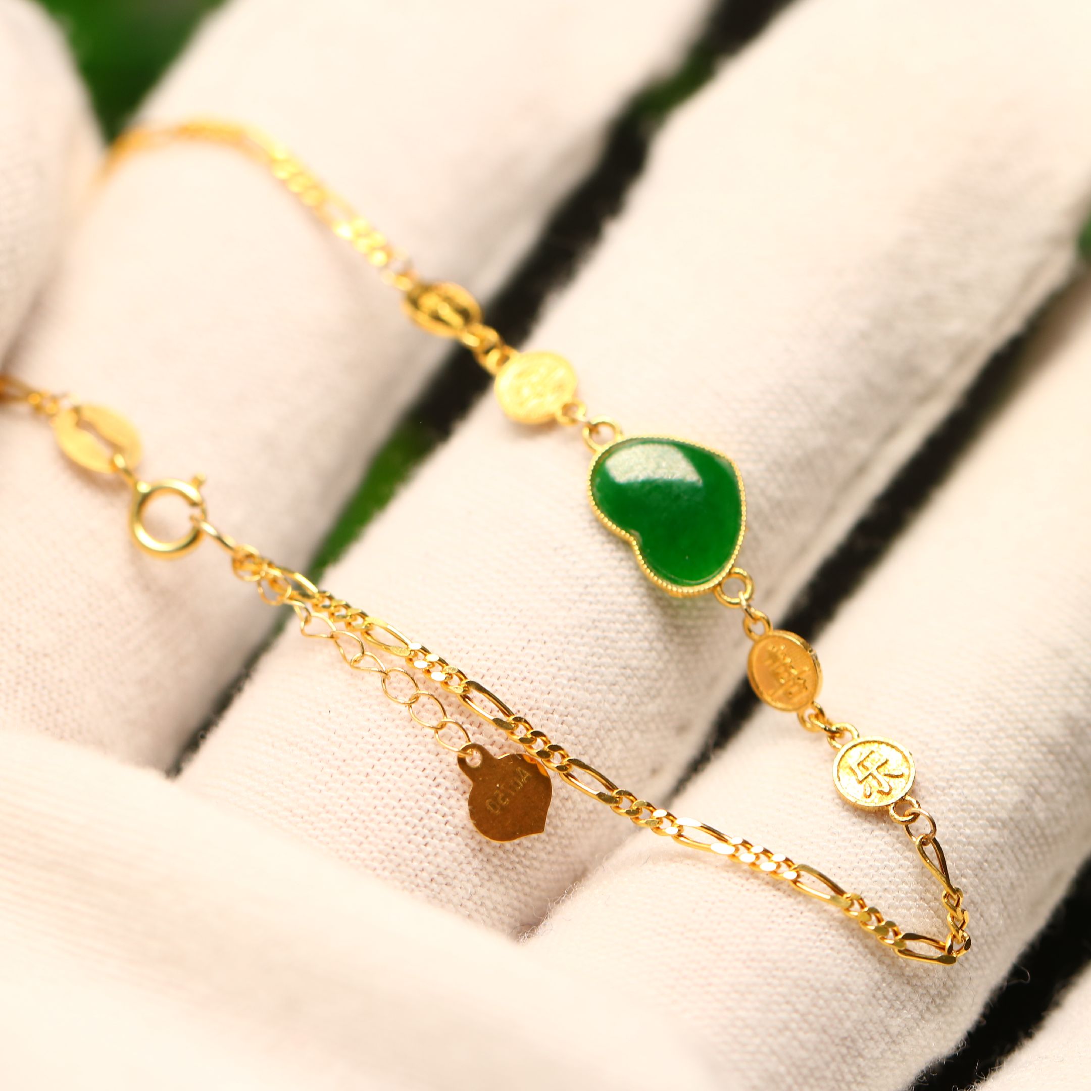#H250 18K金镶嵌满绿天然A货翡翠桃心形手链 ,种水好,颜色艳丽饱满,镶嵌工艺好,款式时尚,平安喜乐寓意好,佩戴效果很好,有延长链,长度可调。