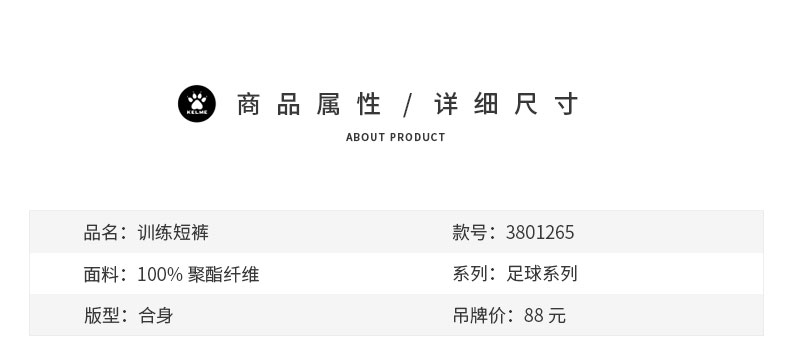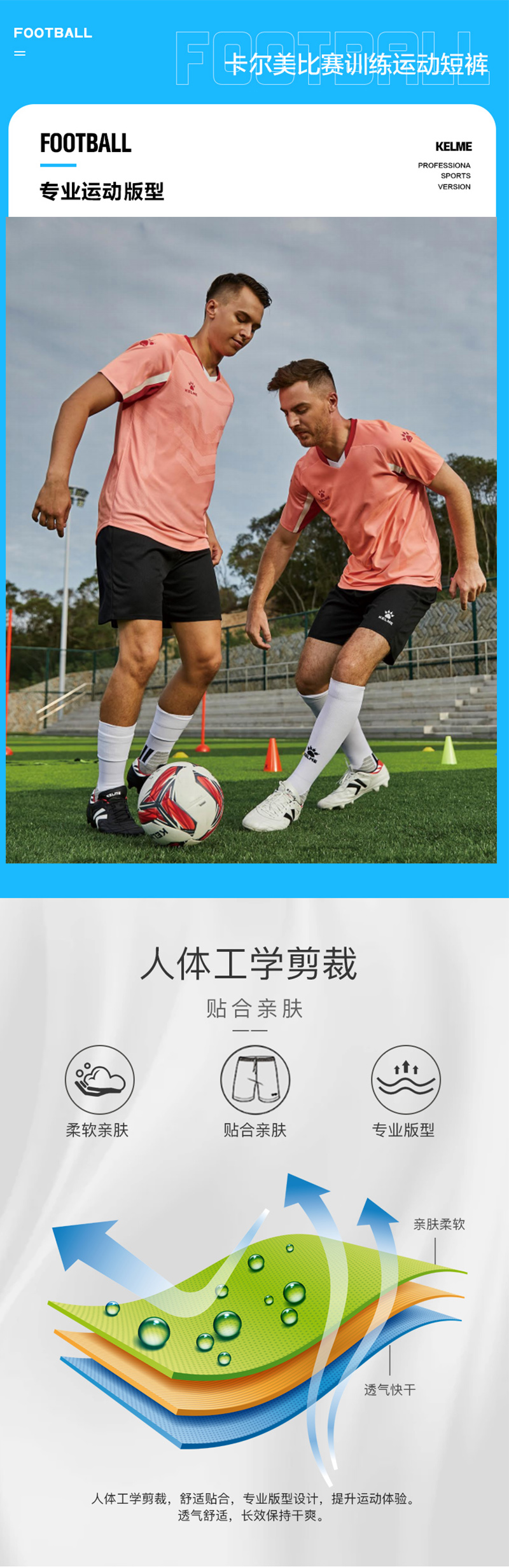 Kelme Football Sports Shorts Men's Summer Breathable Competition Training Running Shorts Quick-Drying Pants