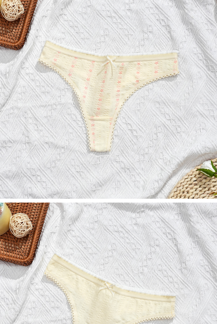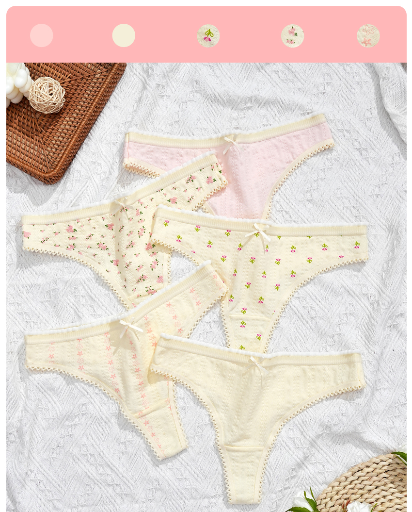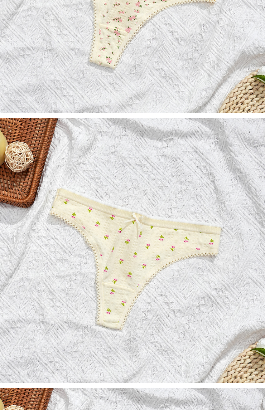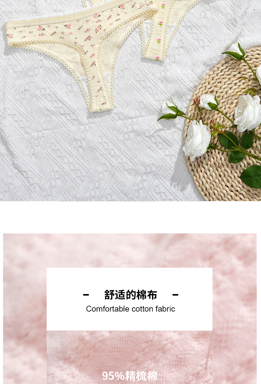 Cinvik Sweet and Sexy Sports Fitness Thong Pure Cotton Crotch Small Floral Women's Underwear Cotton Moisture-Wicking