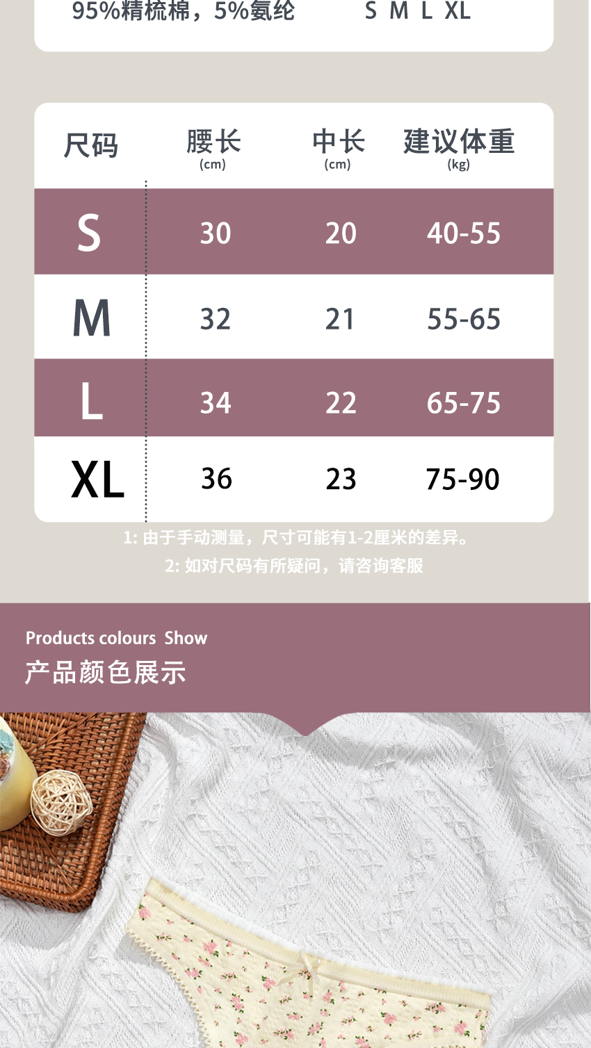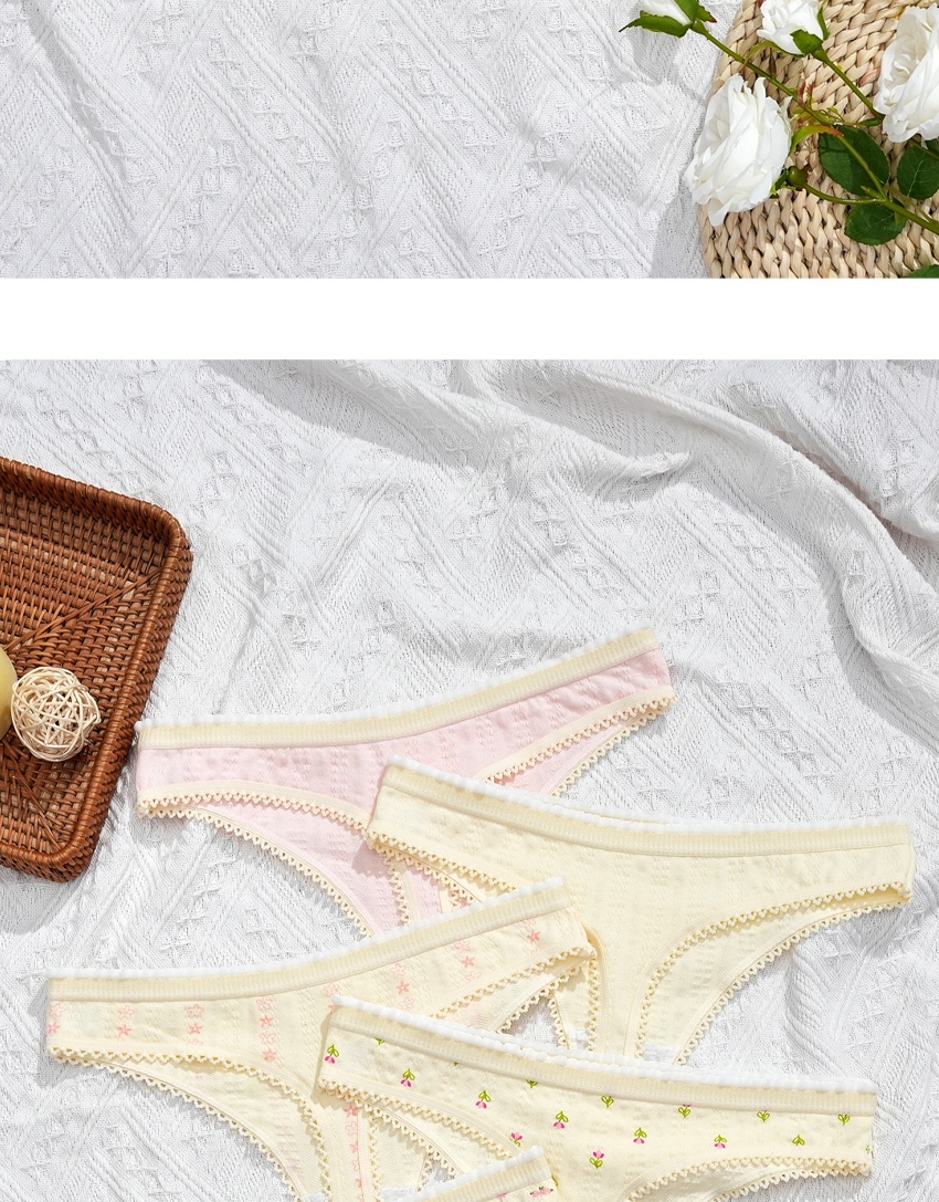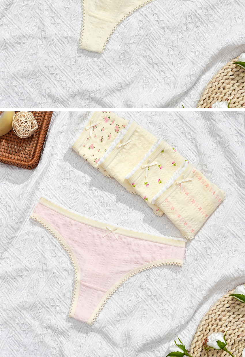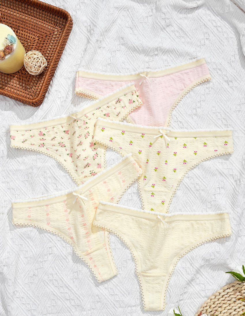 Cinvik Sweet and Sexy Sports Fitness Thong Pure Cotton Crotch Small Floral Women's Underwear Cotton Moisture-Wicking