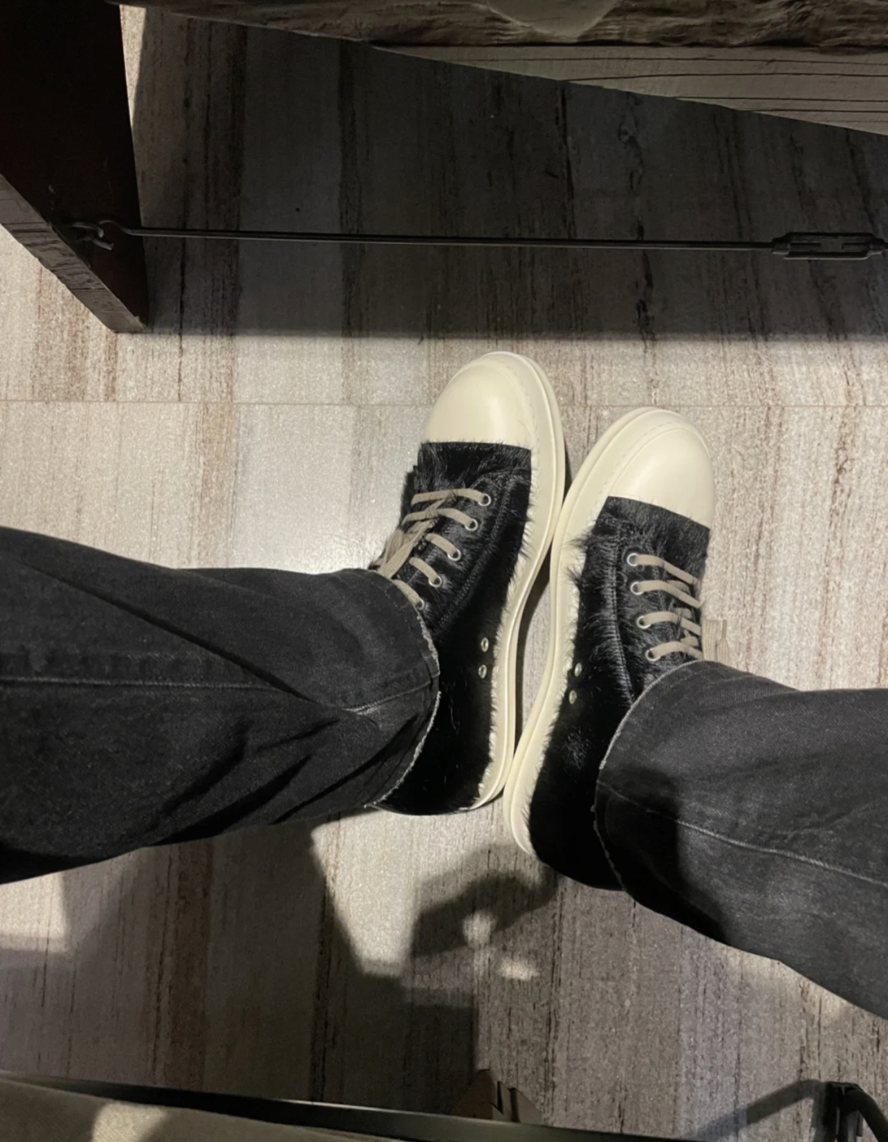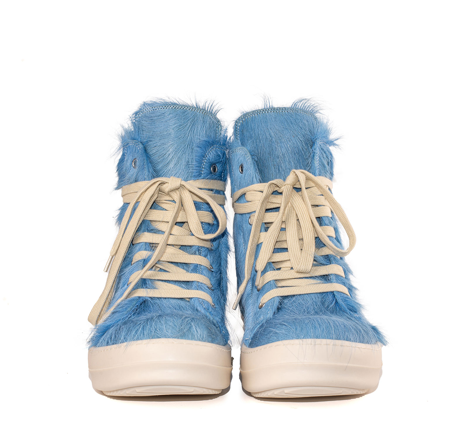 Rog Ro Horsehair High-Top and Low-Top Shoes 21Fw Main Line Low-Top Blue Green Horsehair Ramones Unisex
