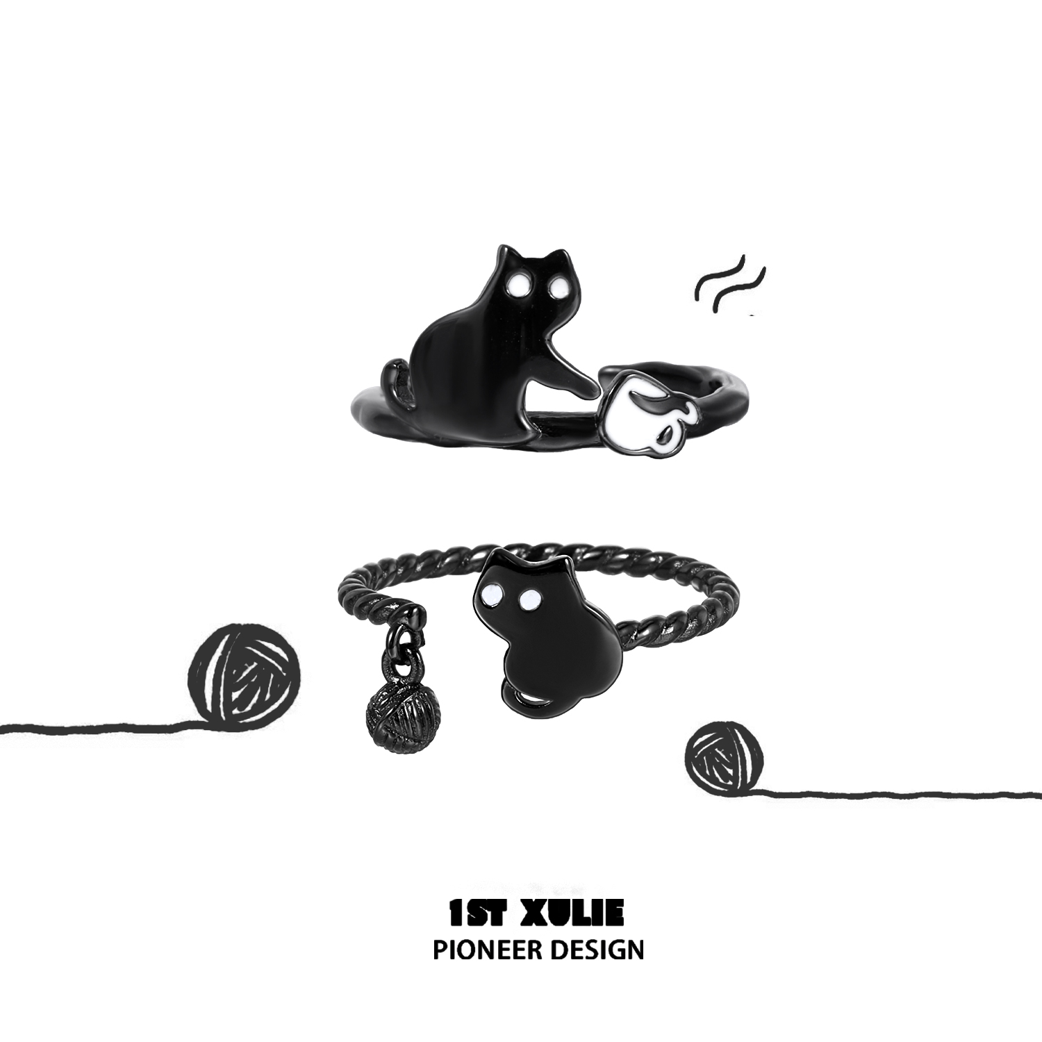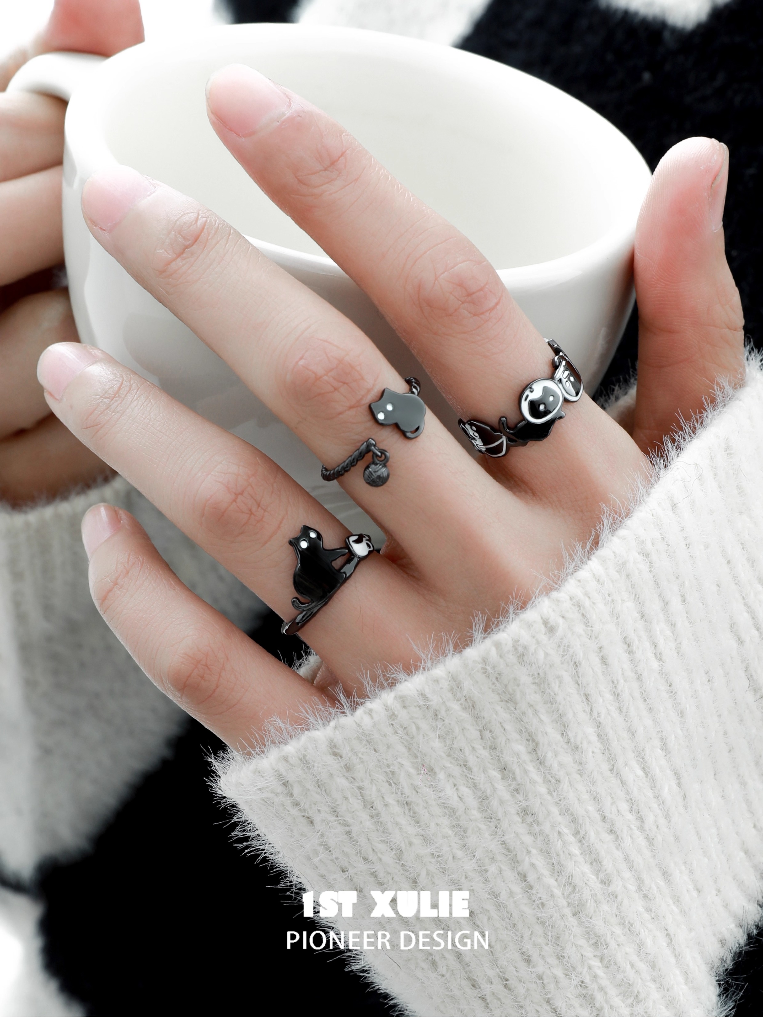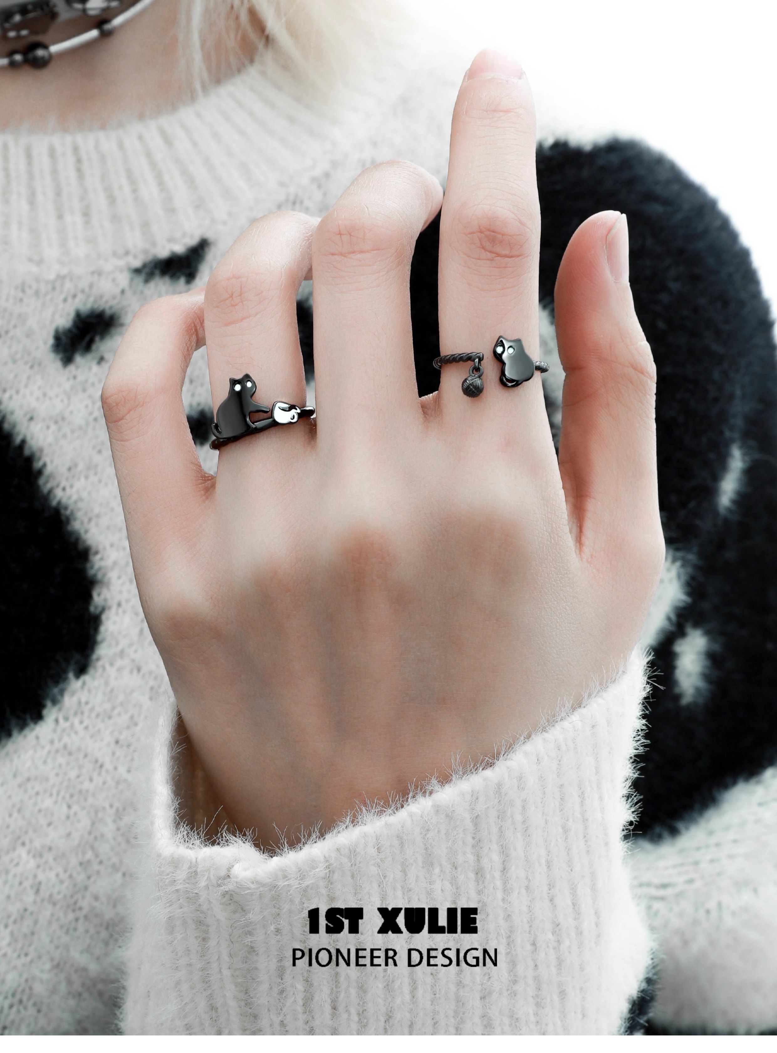 1Stxulie Night Owl Couple Rings Pure Silver Original Niche Design High-End Open Ring 2025 New Model