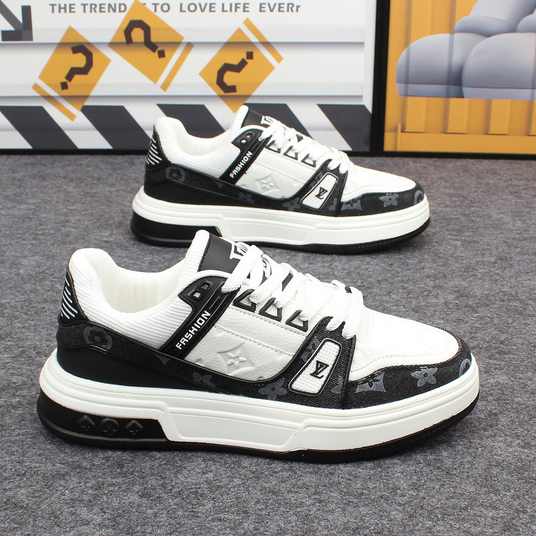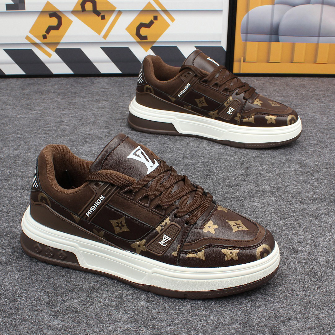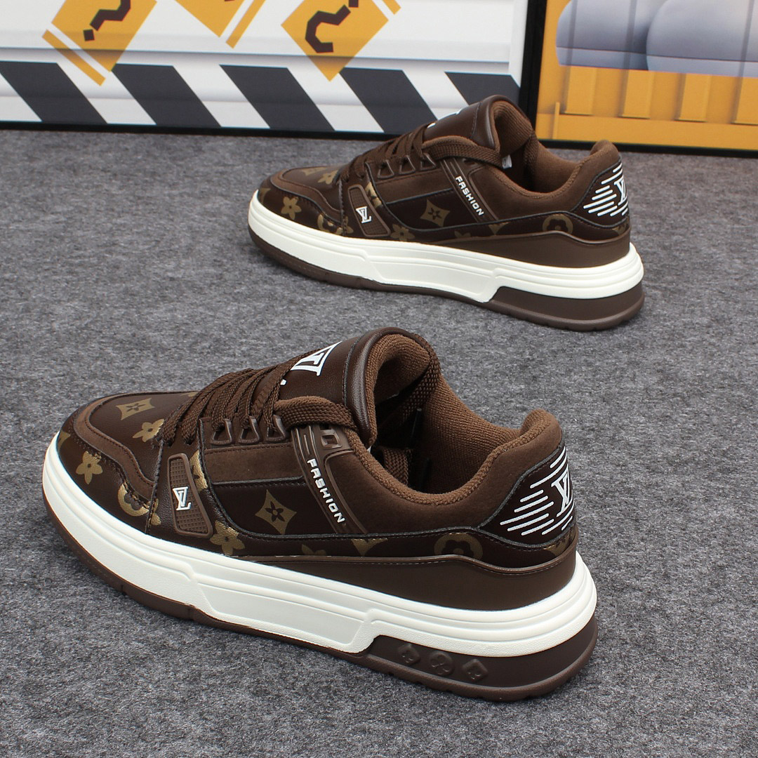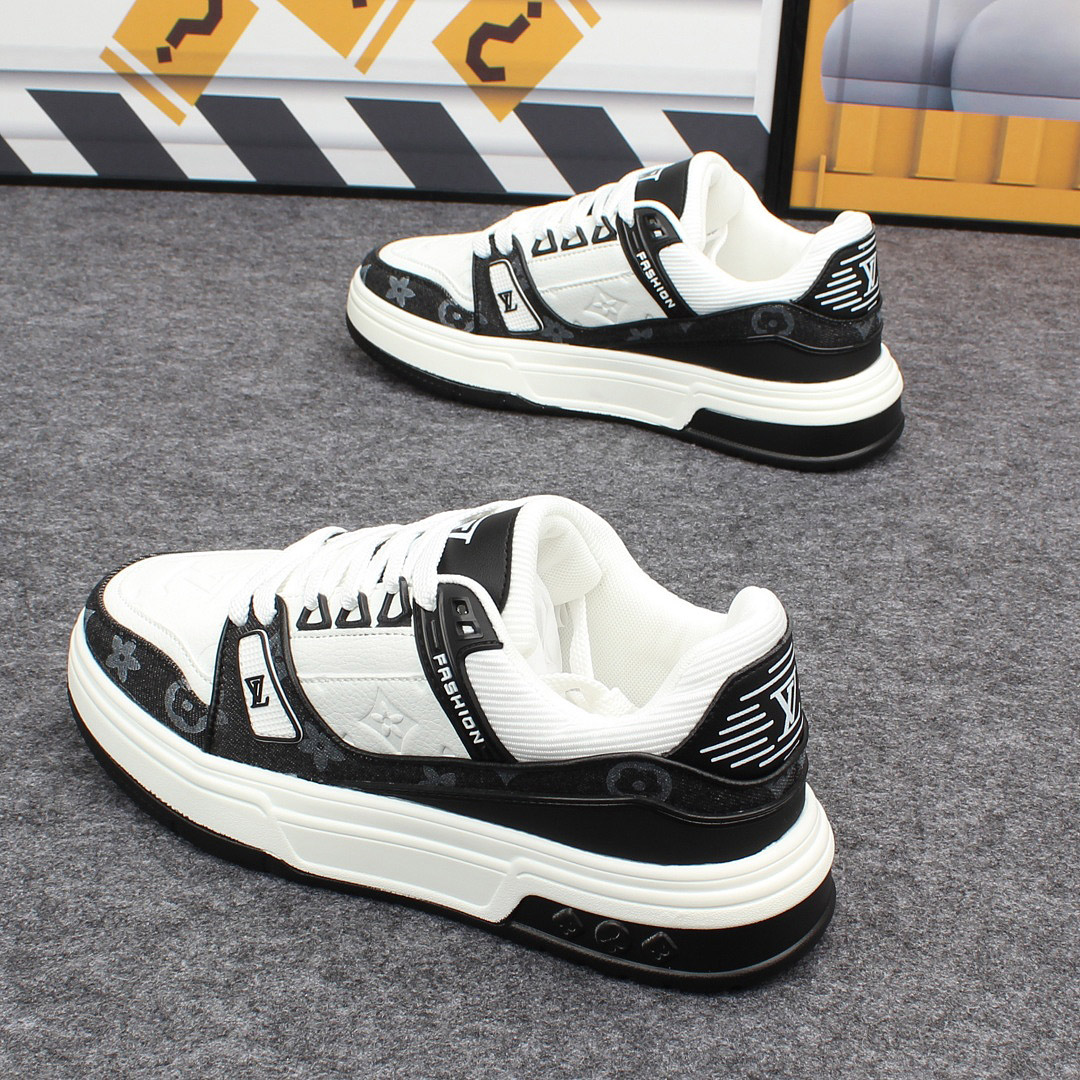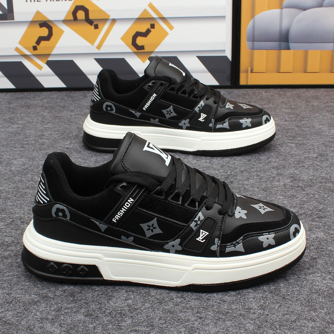Printed Fashionable Couple Sneakers for Men and Women, Versatile Trendy Thick-Soled Low-Top White Shoes, Waterproof Leather Sports Casual Shoes