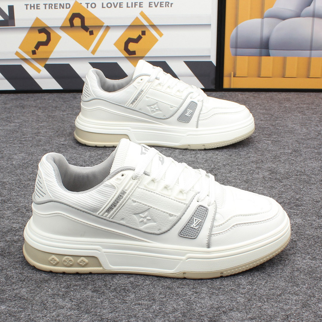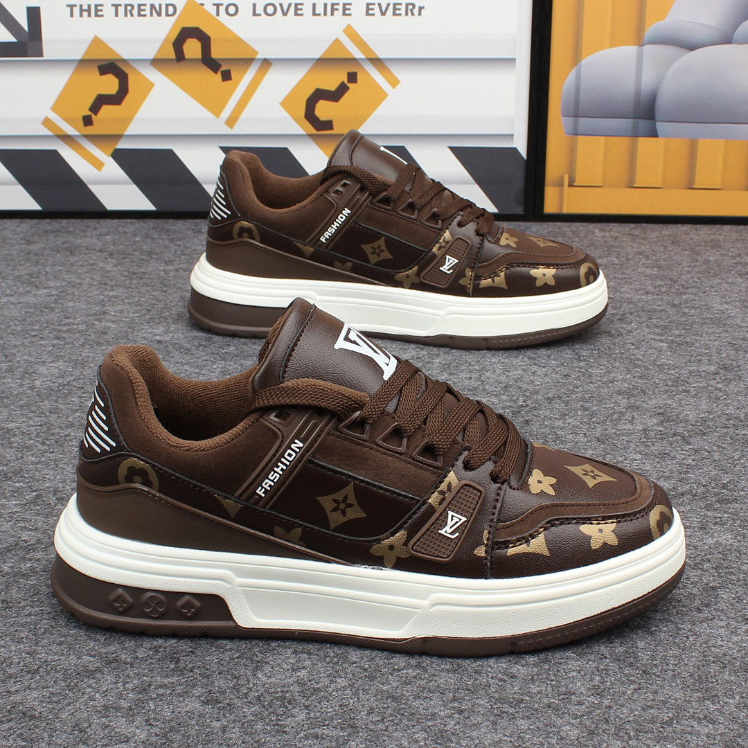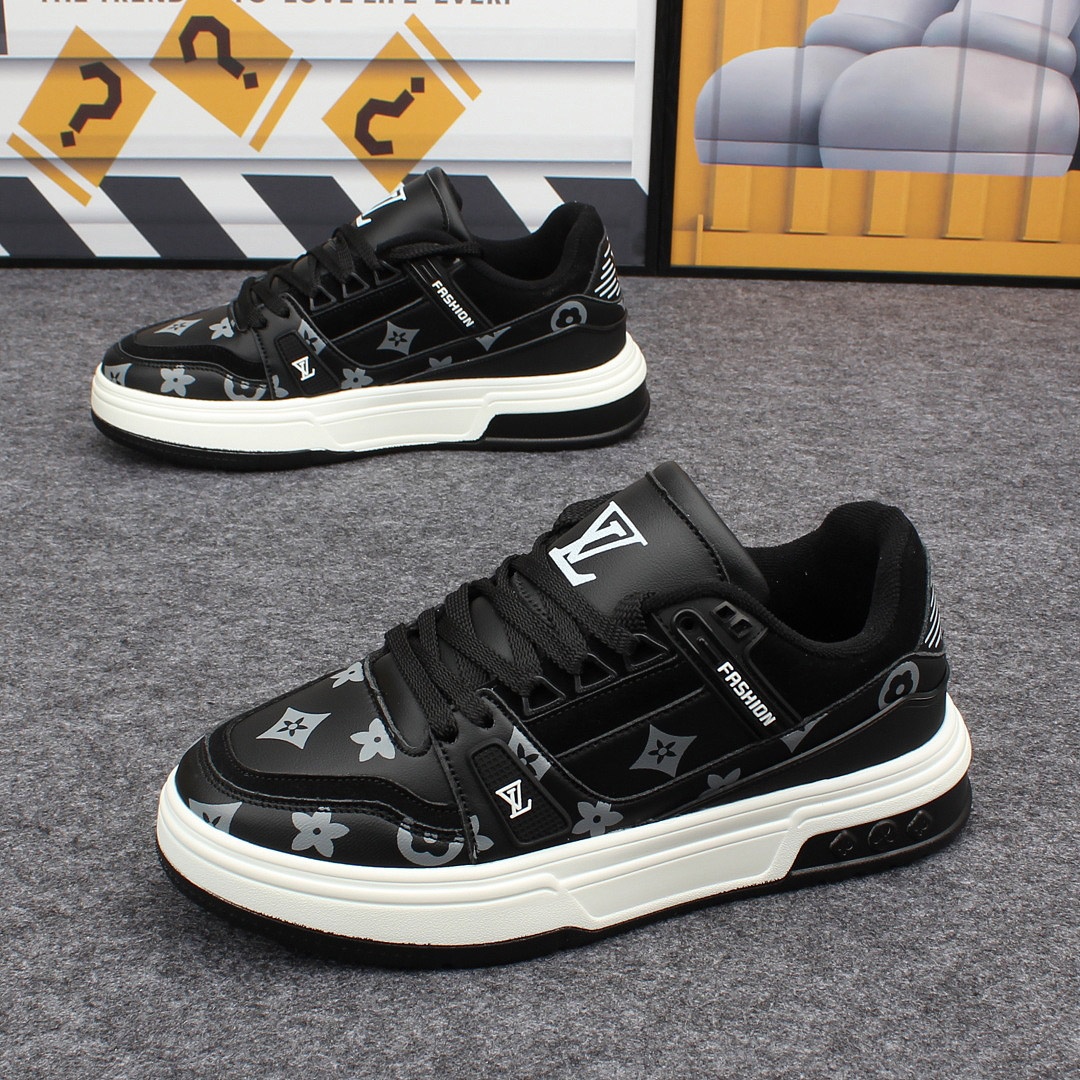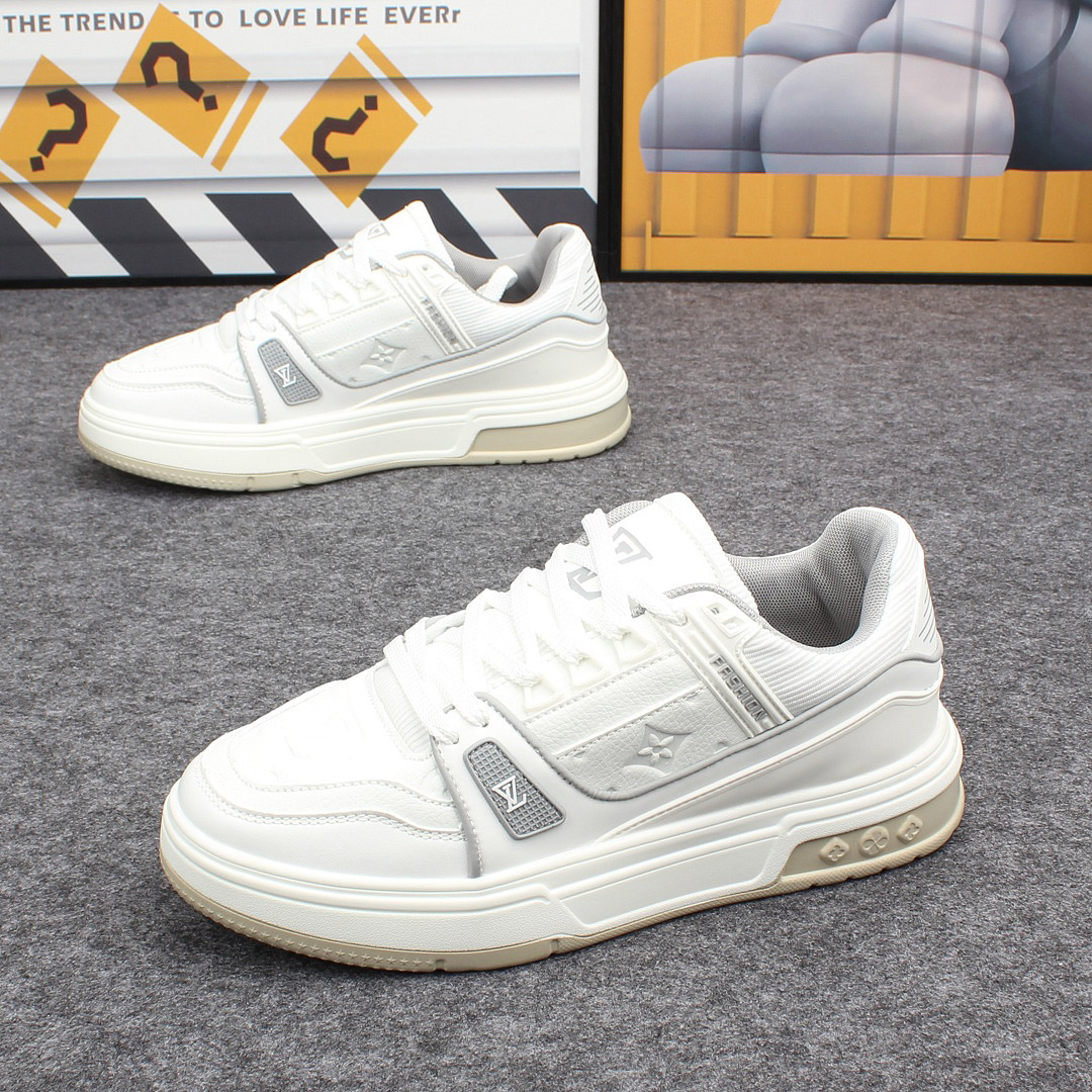 Printed Fashionable Couple Sneakers for Men and Women, Versatile Trendy Thick-Soled Low-Top White Shoes, Waterproof Leather Sports Casual Shoes