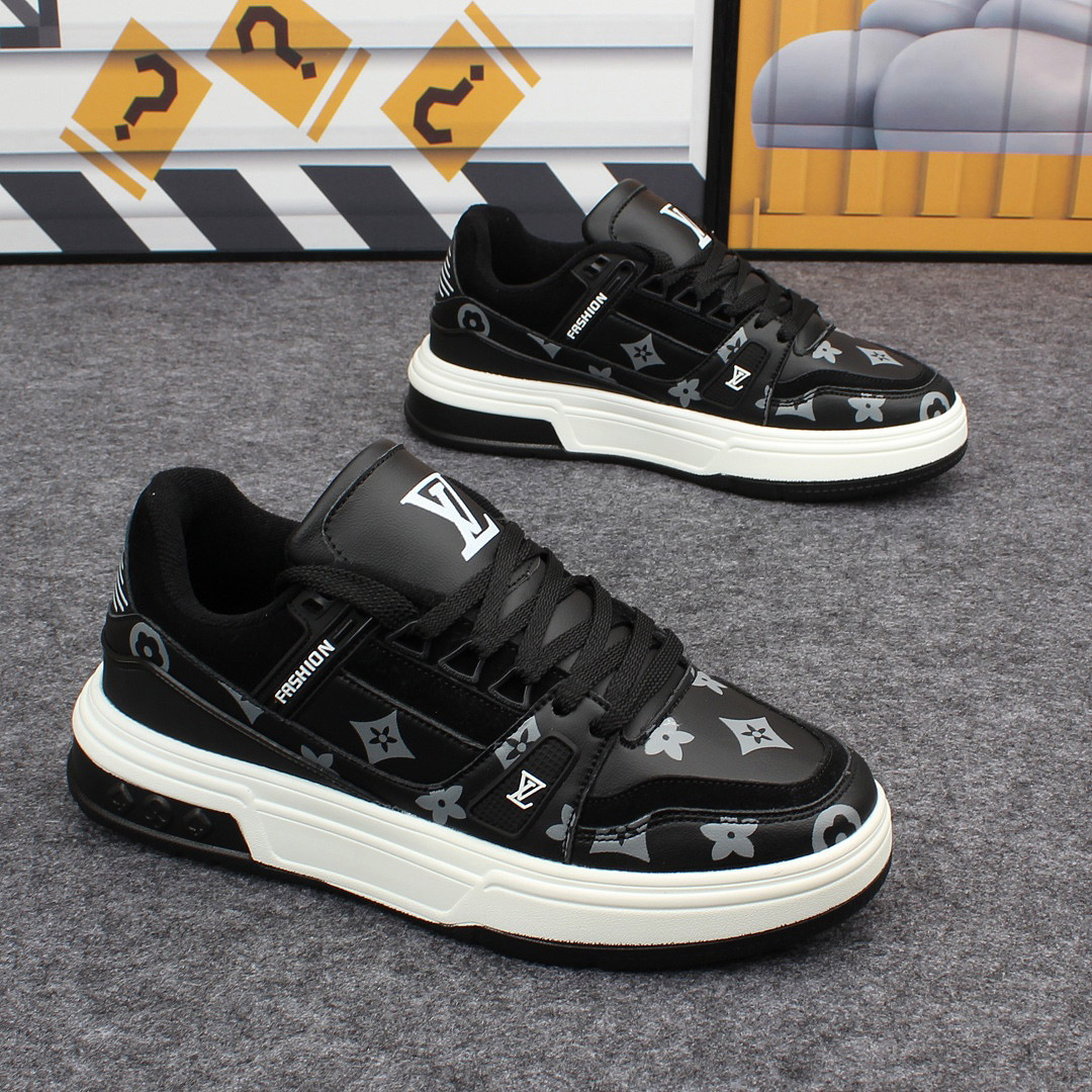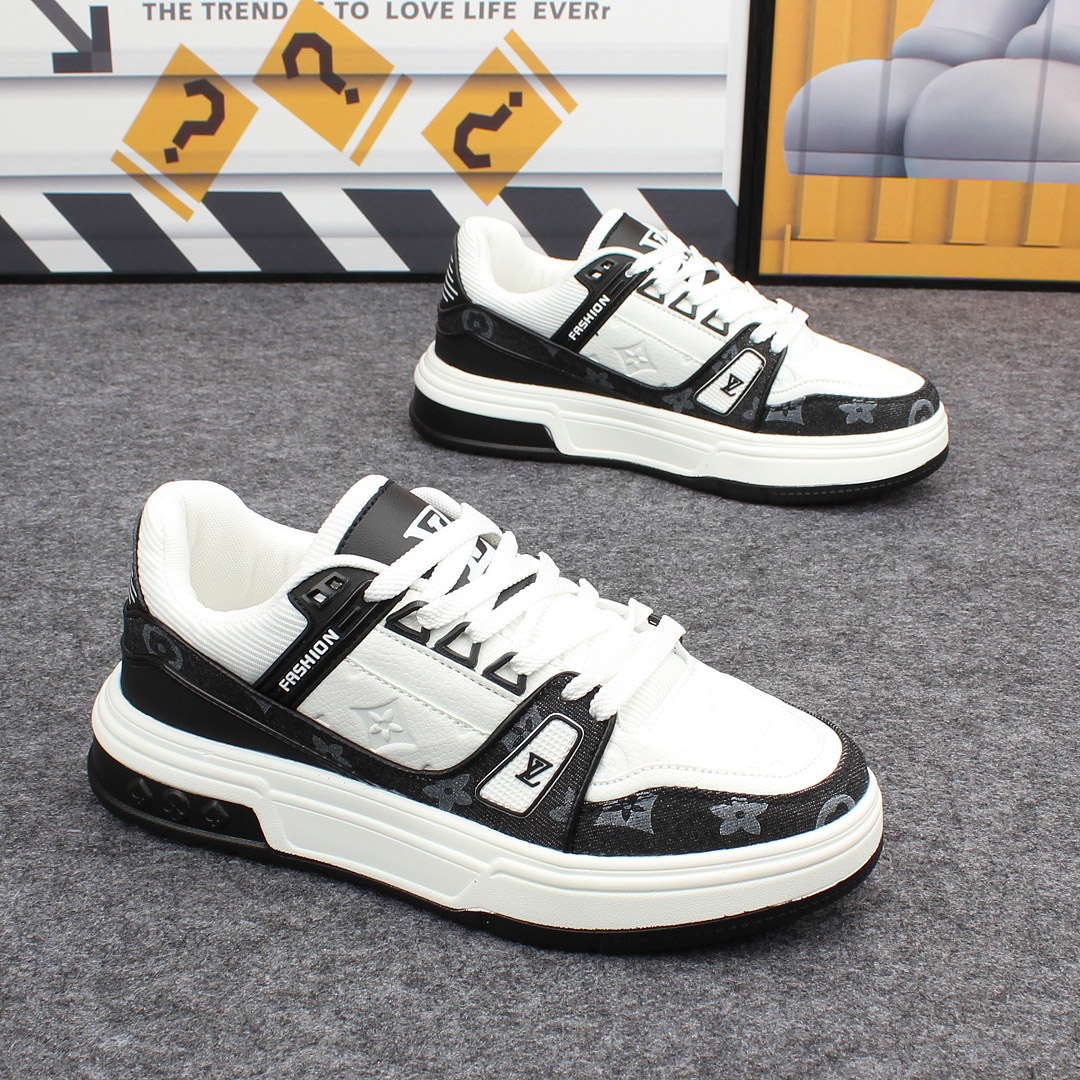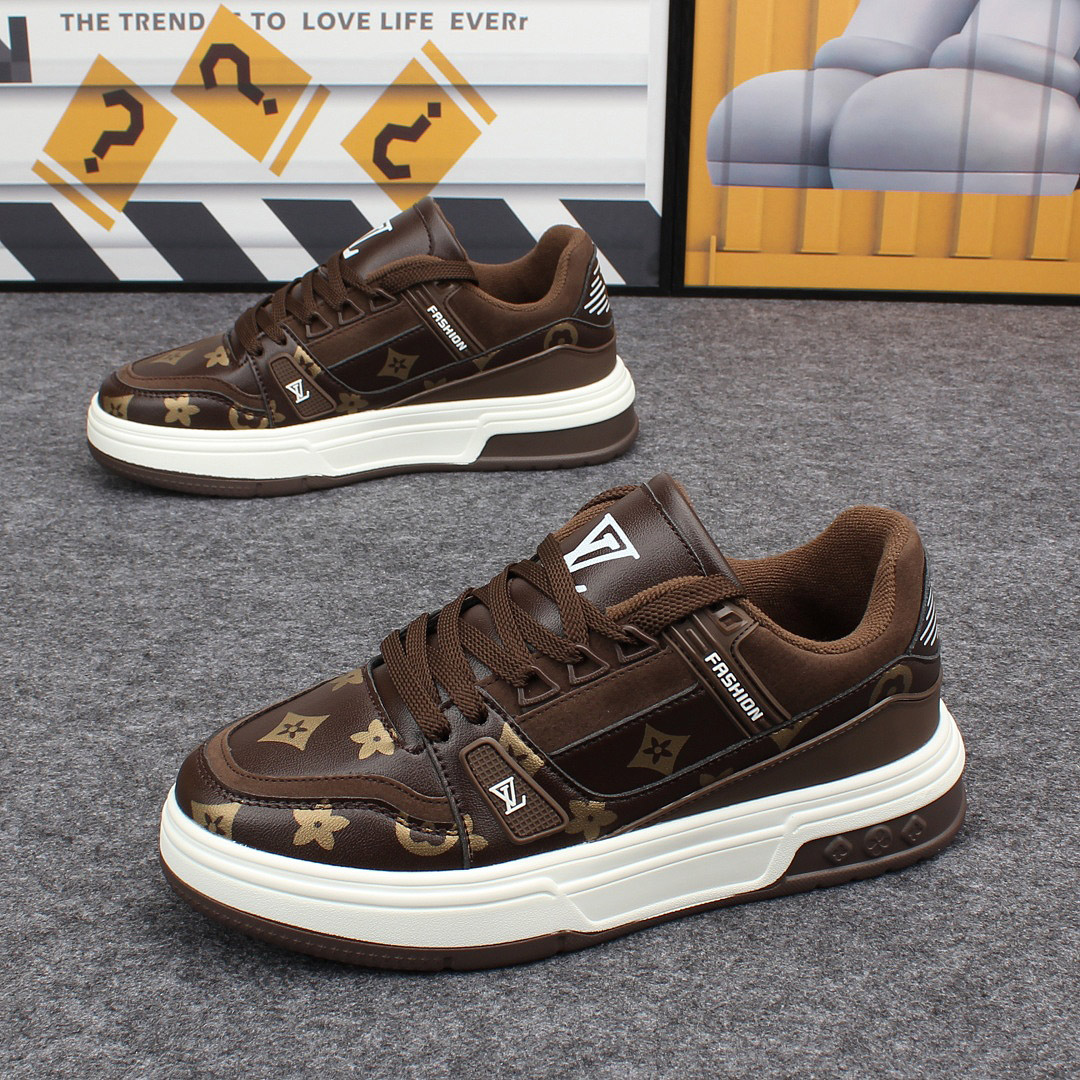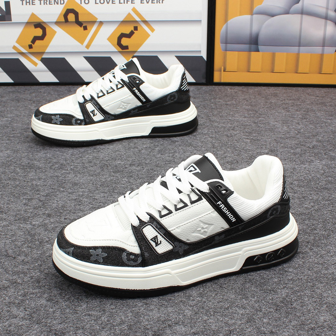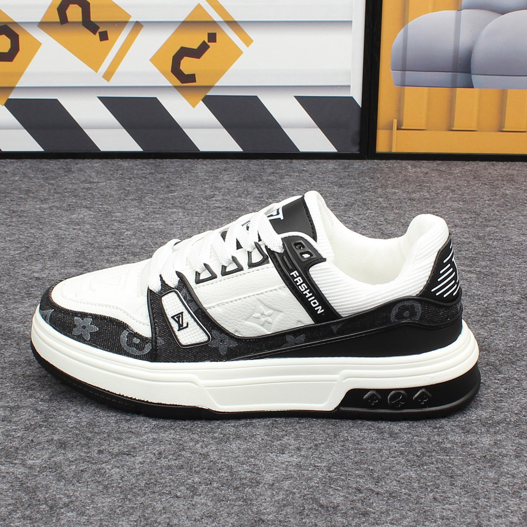 Printed Fashionable Couple Sneakers for Men and Women, Versatile Trendy Thick-Soled Low-Top White Shoes, Waterproof Leather Sports Casual Shoes