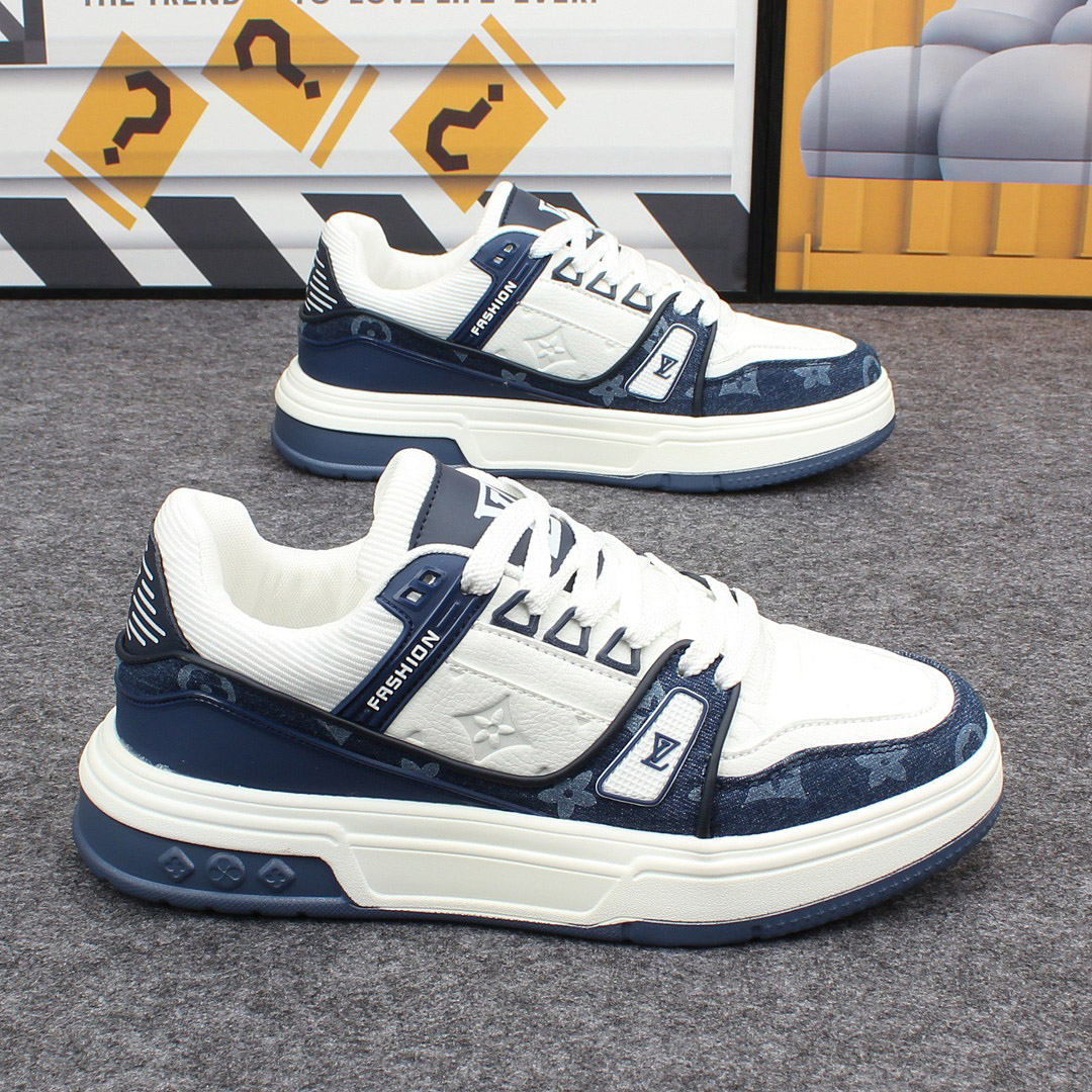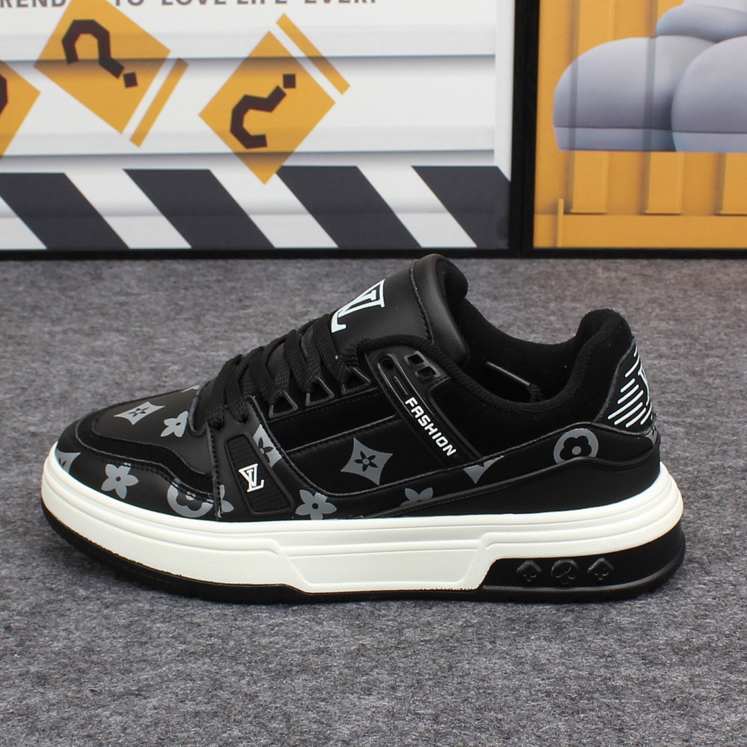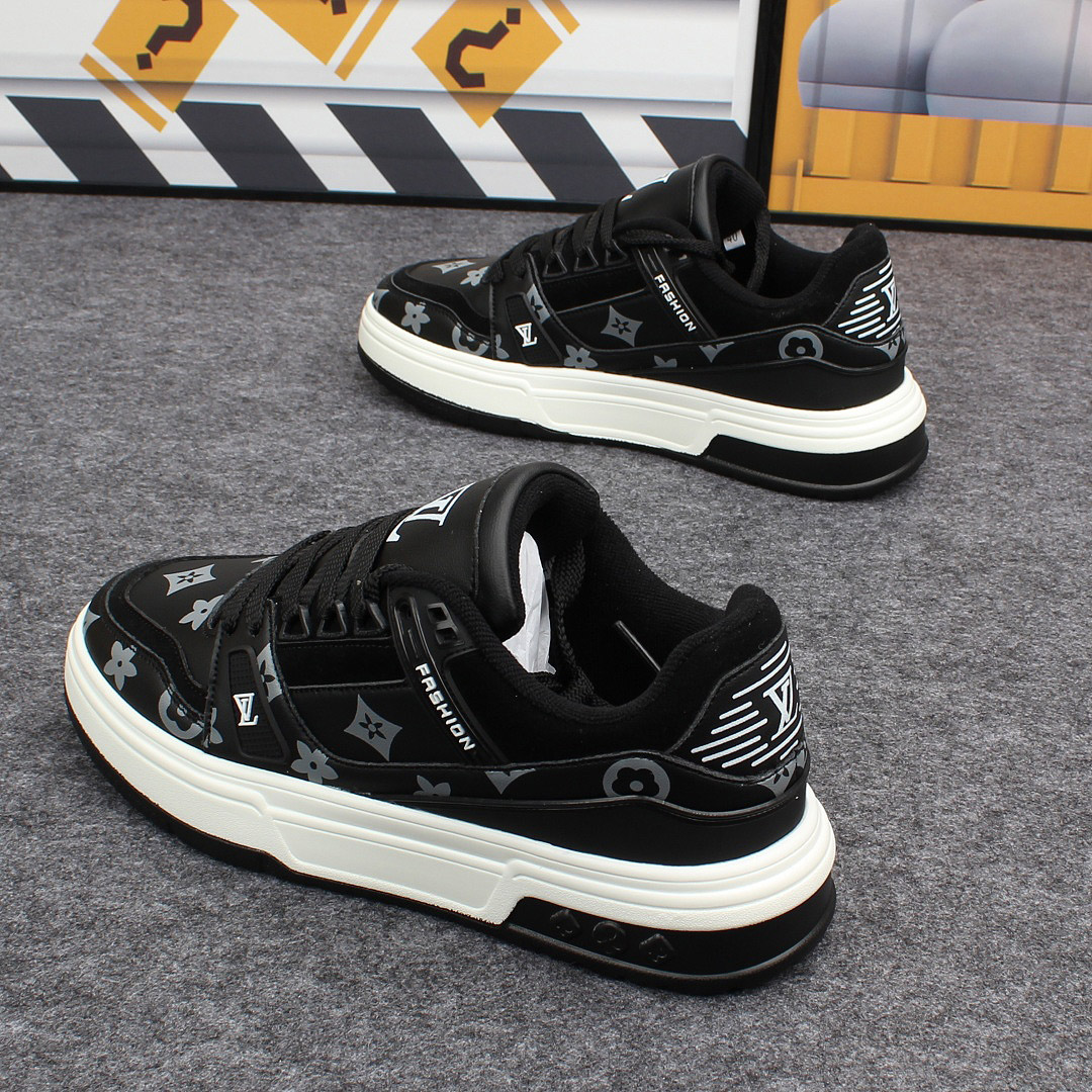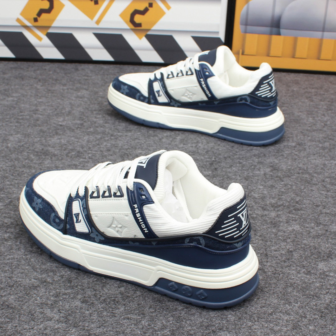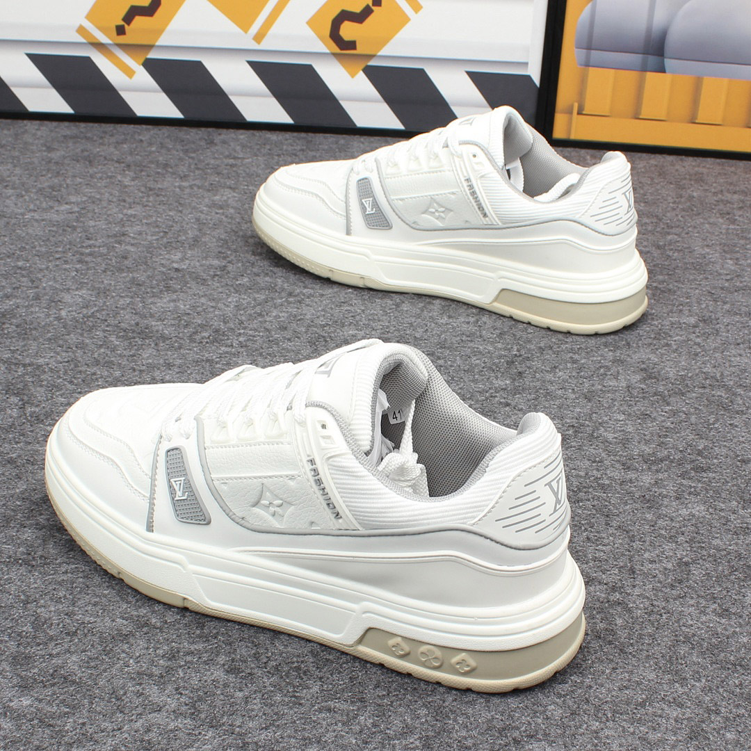 Printed Fashionable Couple Sneakers for Men and Women, Versatile Trendy Thick-Soled Low-Top White Shoes, Waterproof Leather Sports Casual Shoes