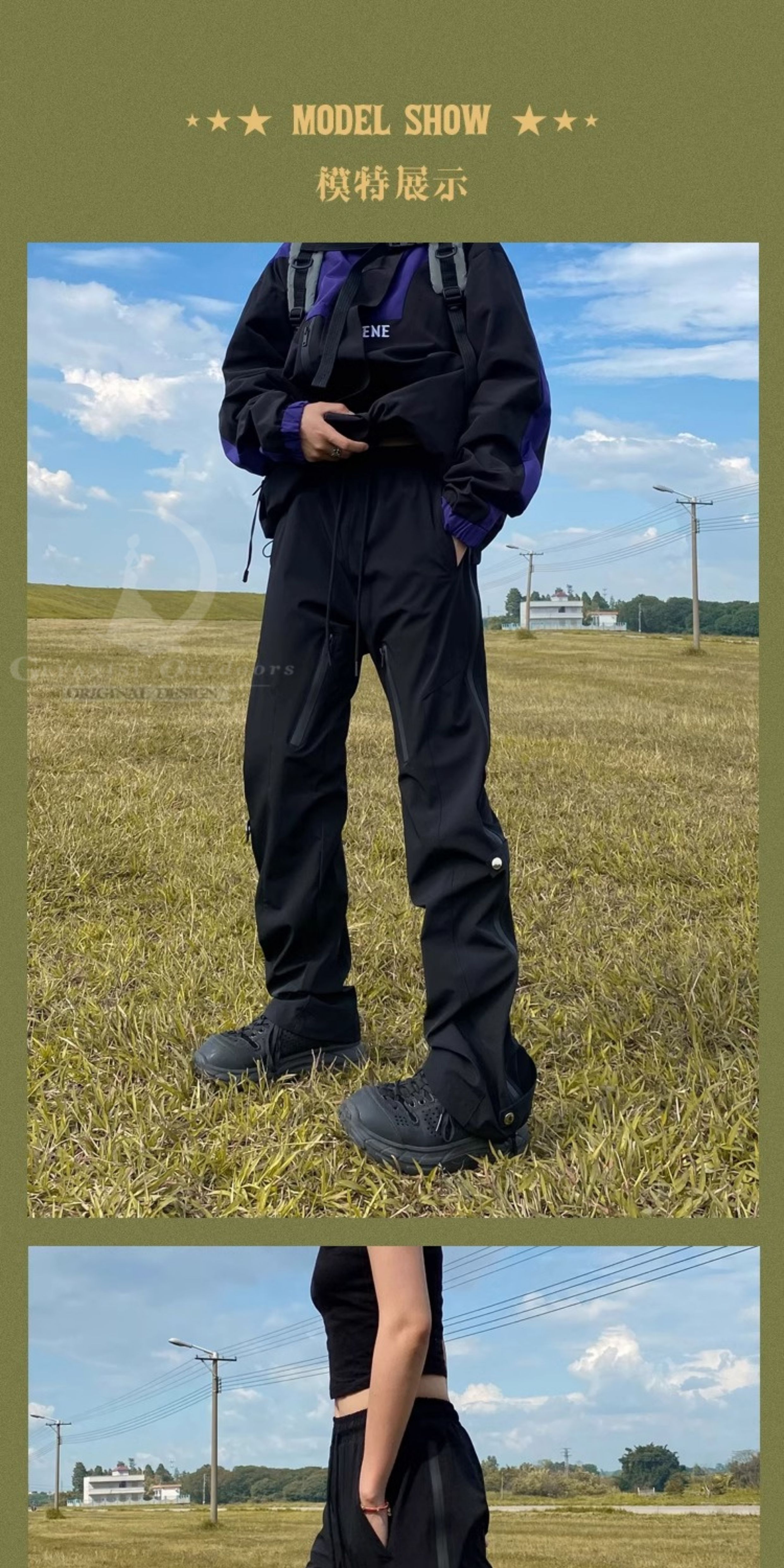 German Gfs Black Outdoor Pants for Women, Windproof, Waterproof, Flared Zipper Functional Pants, Straight-Leg Pants ins