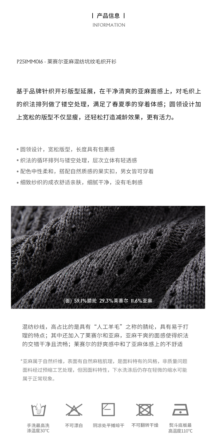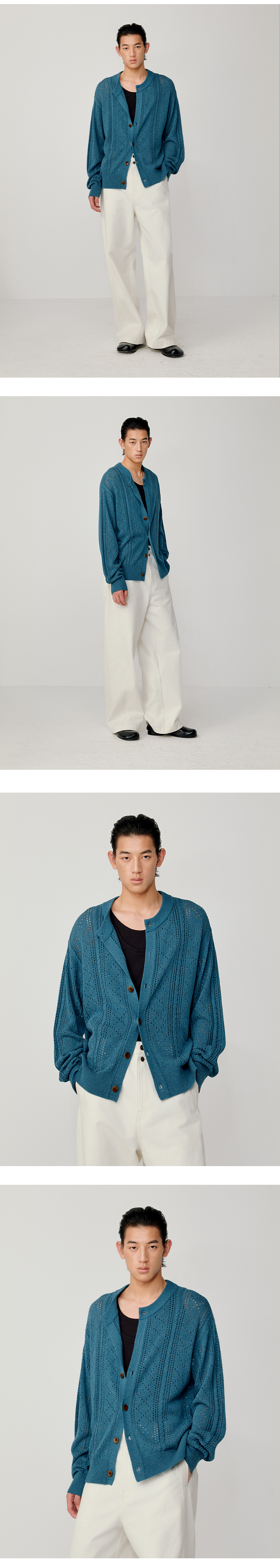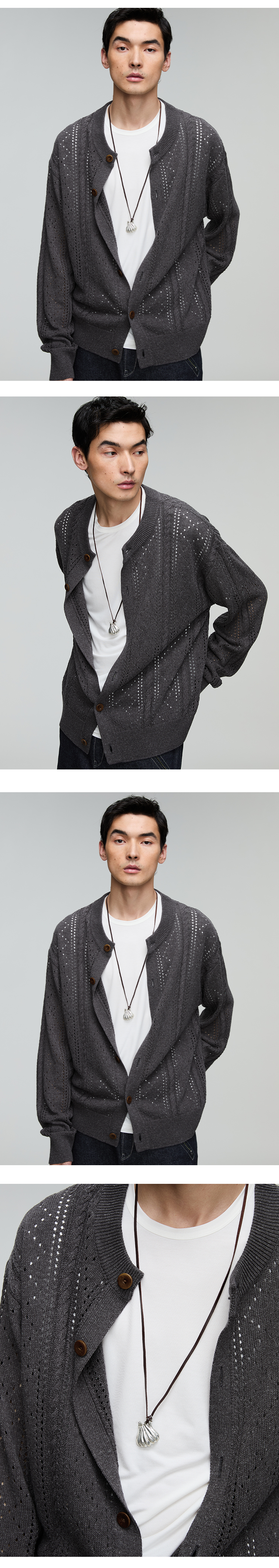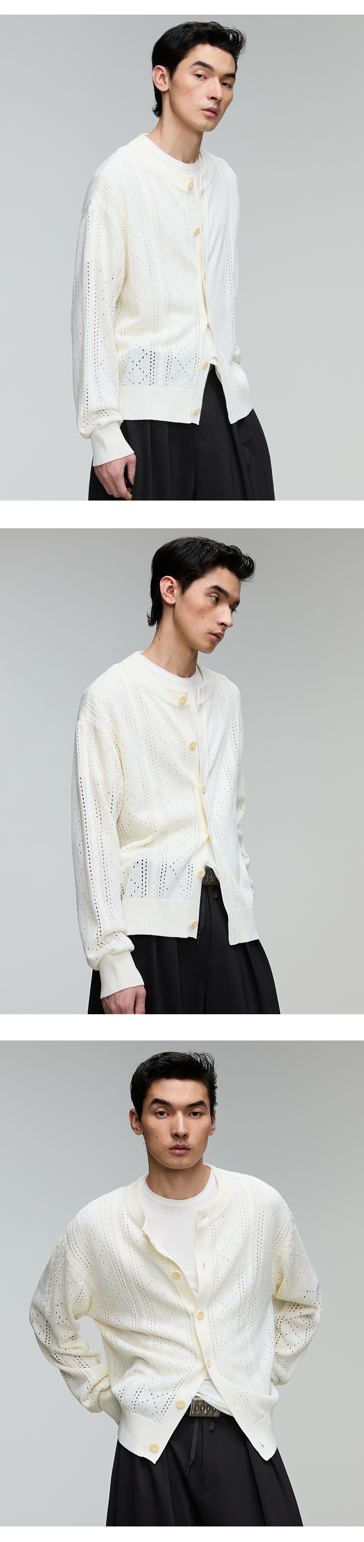 Opicloth/Opic Lyocell Linen Blend Round Neck Pit-Pattern Loose Hollow Knit Cardigan Jacket for Men and Women